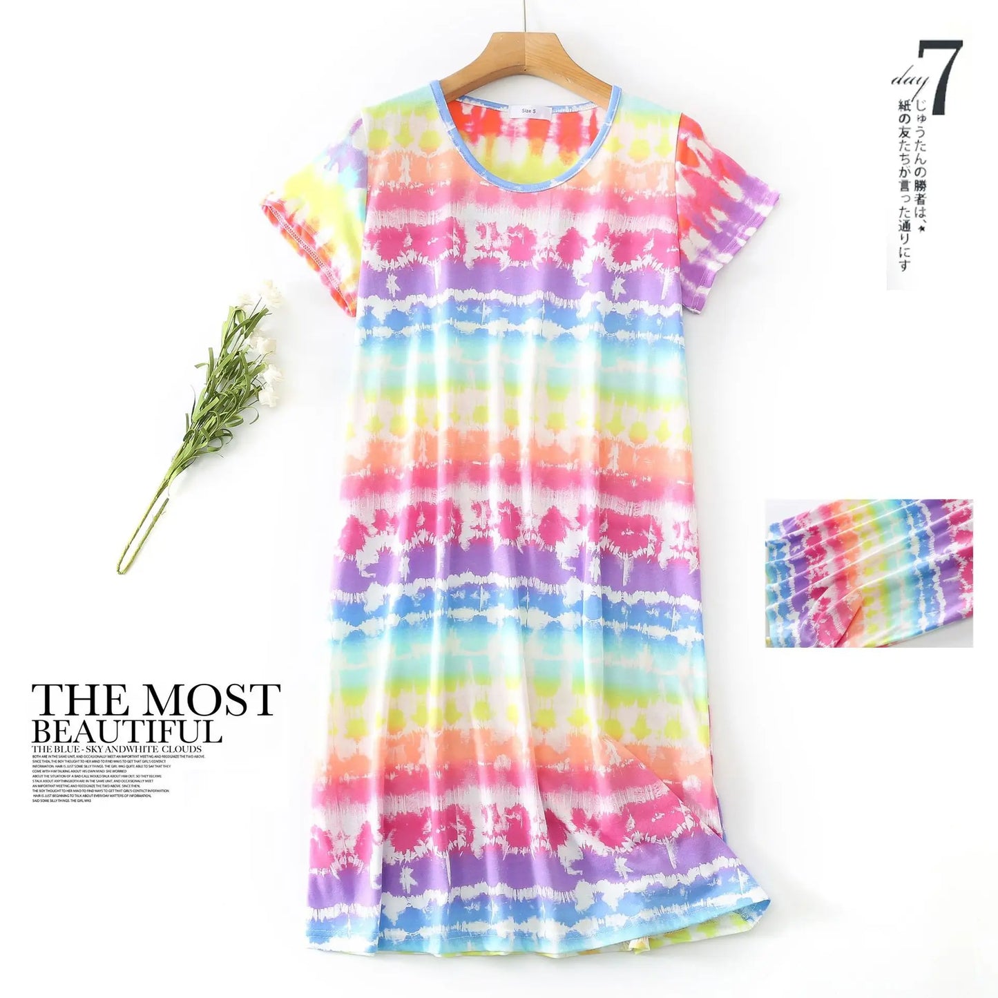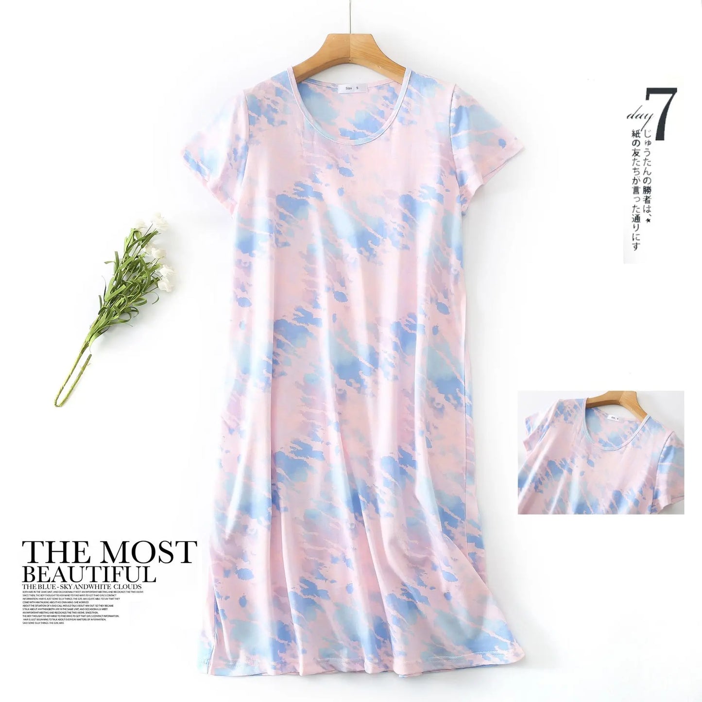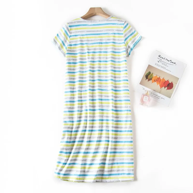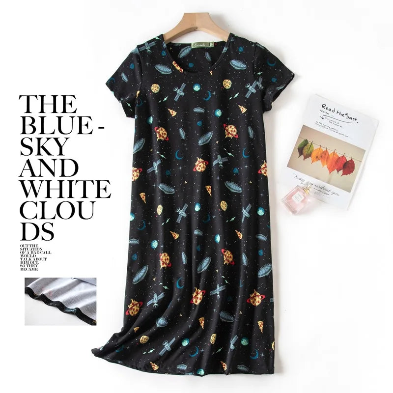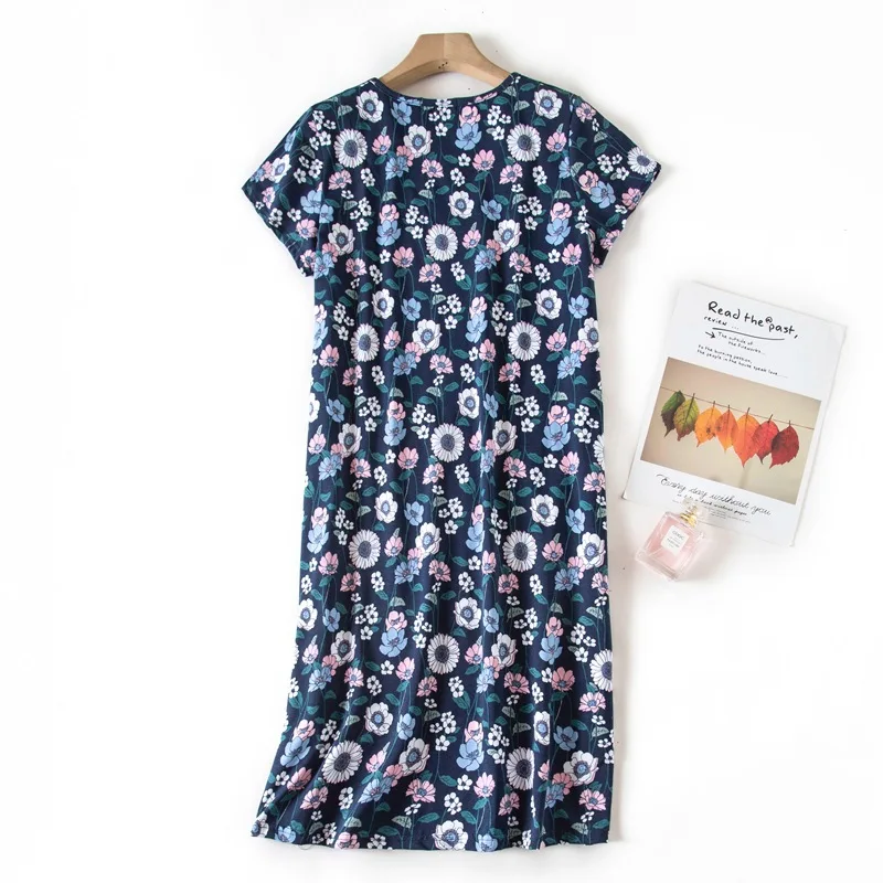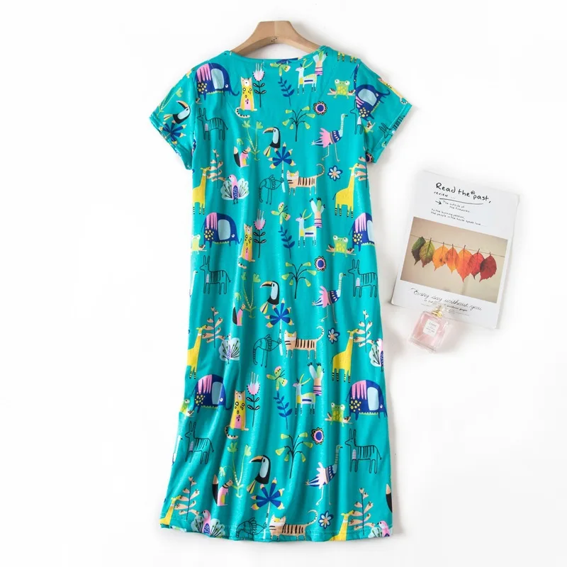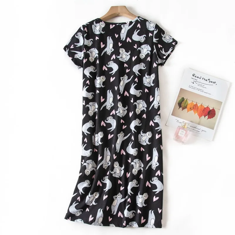 Wholesale Knitted Cotton Nightdress Women's Plus Size Cute Cartoon Print Home Clothes Sweet Short-sleeved Round Neck Night Gown
