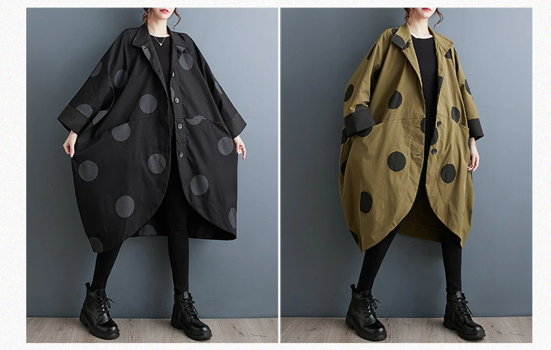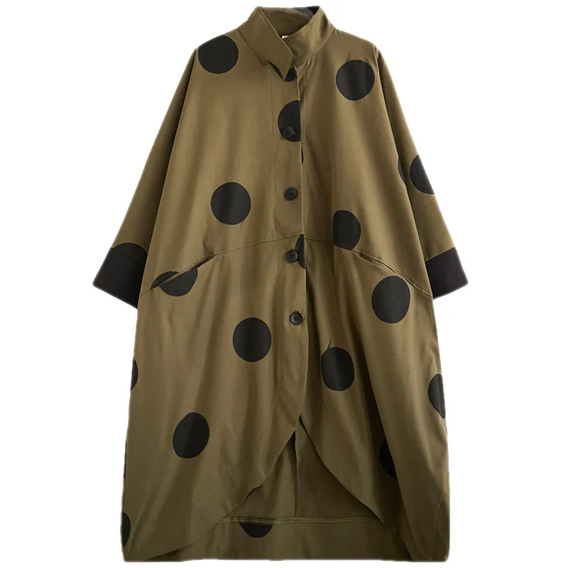 Wholesale Ladies Casual Windbreaker Jacket Loose Polka Dot Print Irregular Bat Sleeve Women's Trench Coat