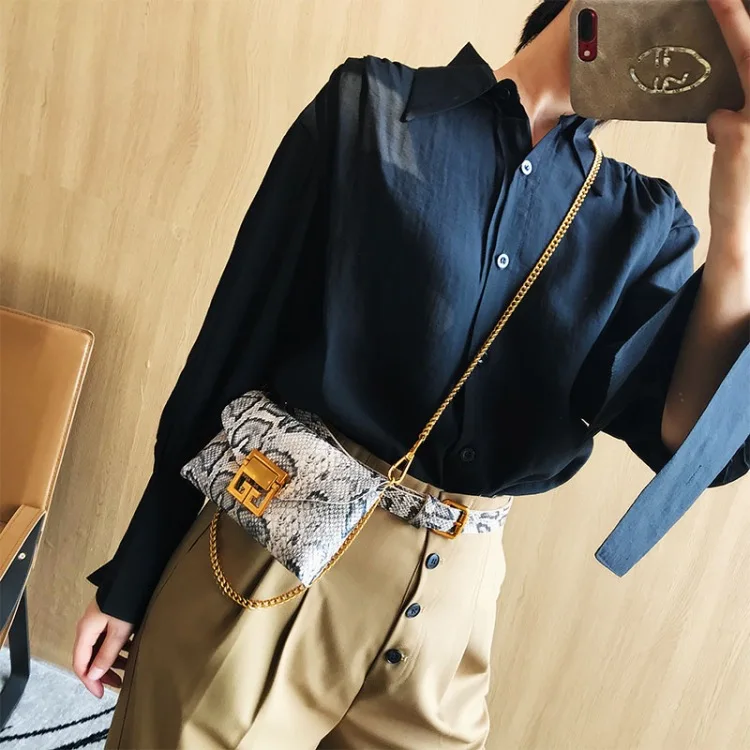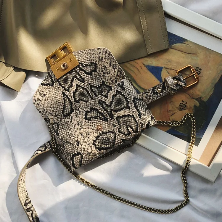 Wholesale Ladies Waist Bag Chain Shoulder Handbags Snake Pattern Women Crossbody Bag Pu Leather Purse and Handbags