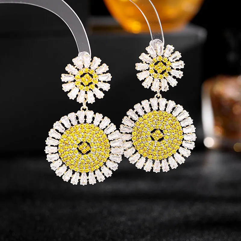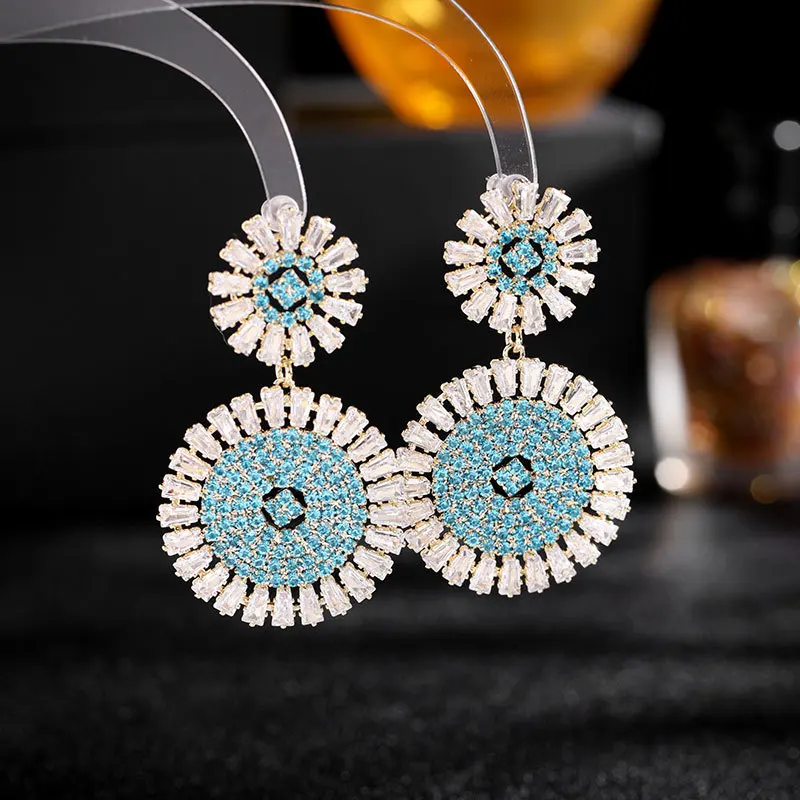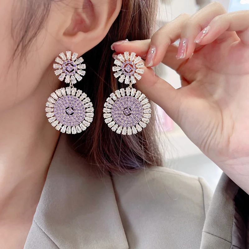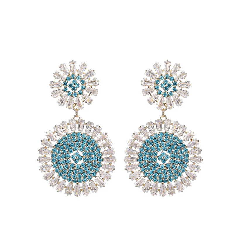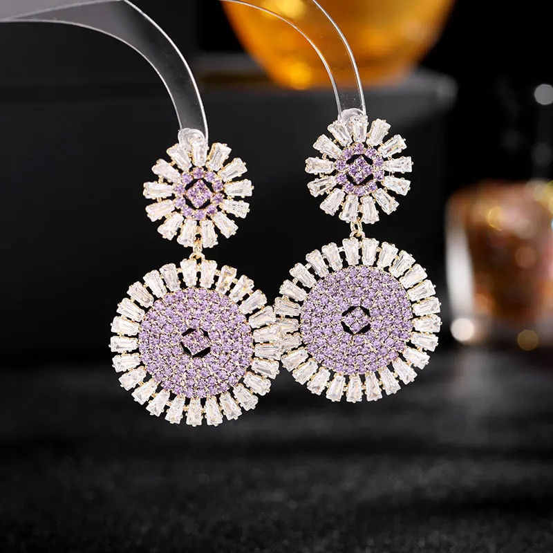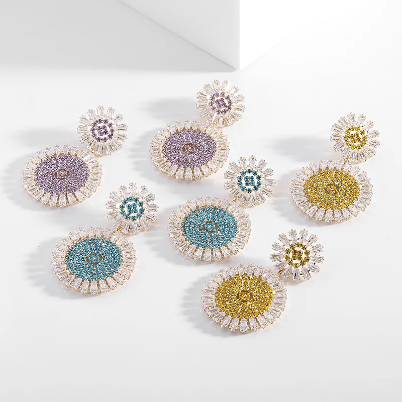 Wholesale Luxury Geometric Round Drop Earrings for Women Girls Engagement S925 Silver Needle Colorful Zircon Fashion Jewelry