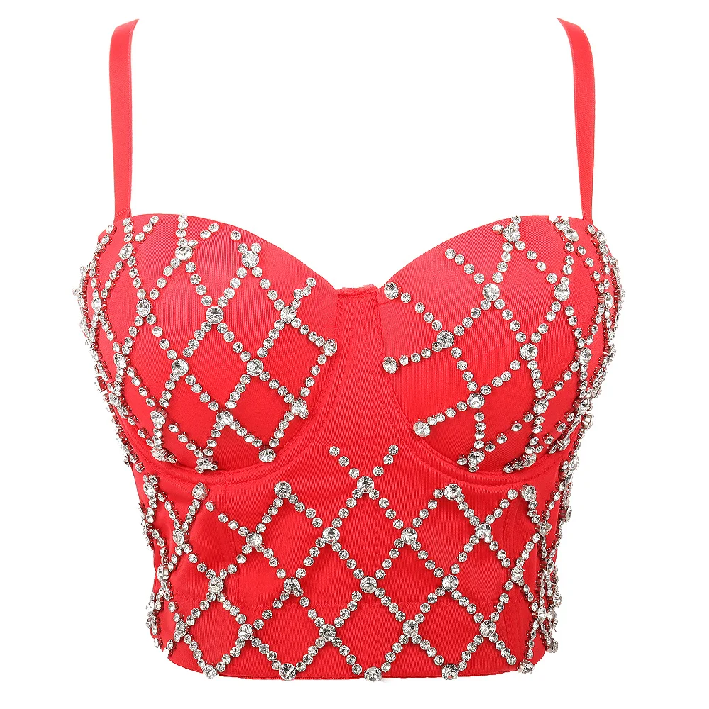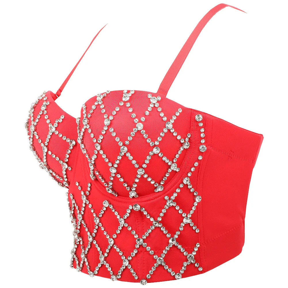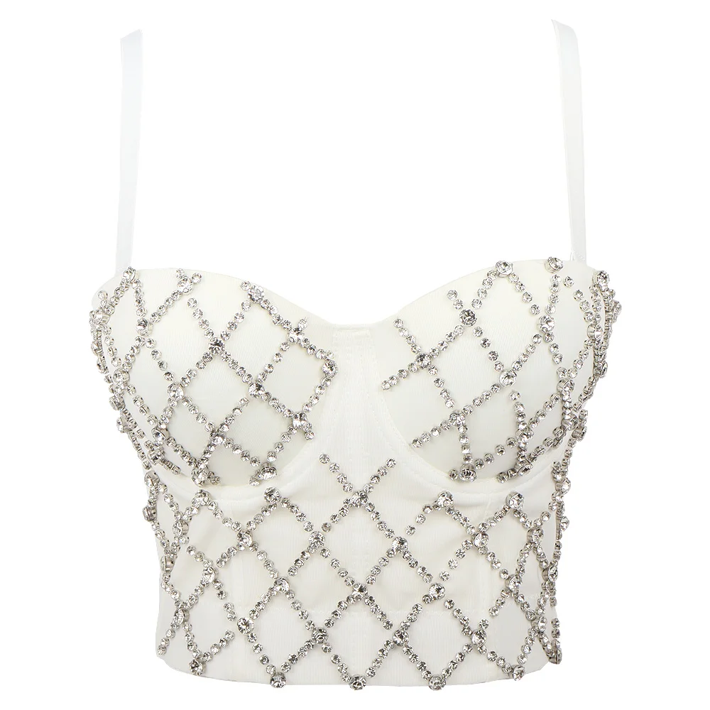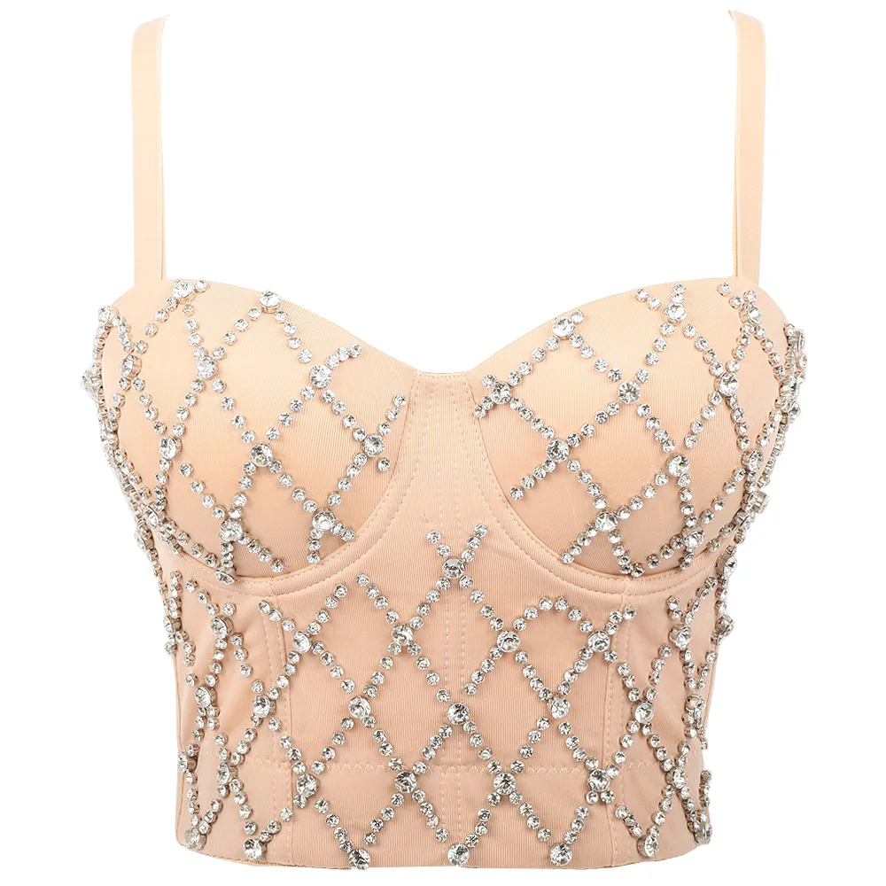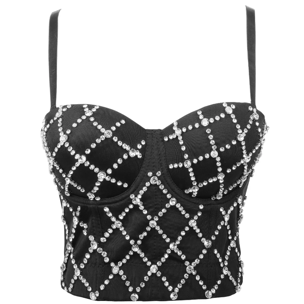 Wholesale mesh corset tops with diamonds Custom Sexy Back Snap Sling corsets tops for women