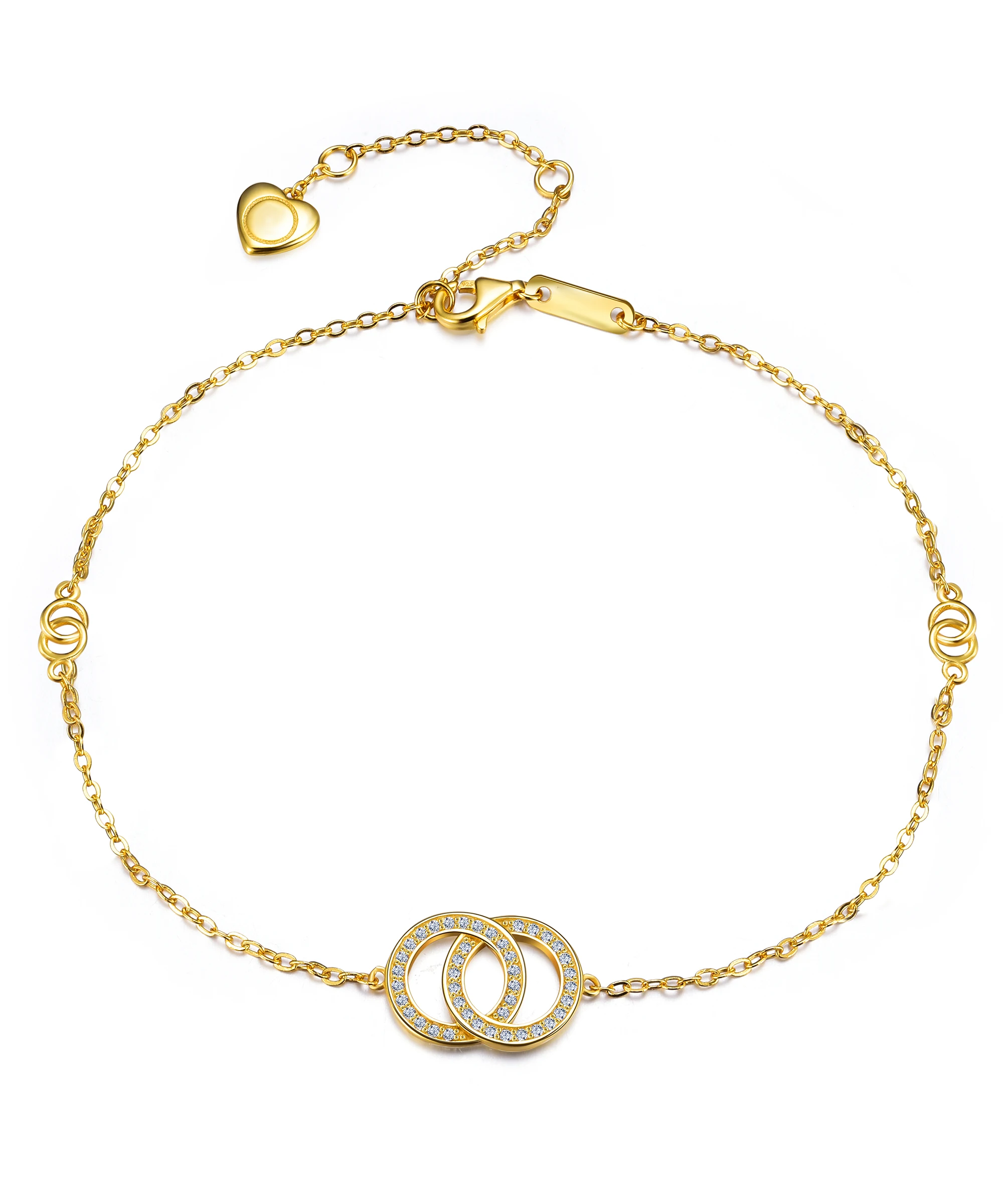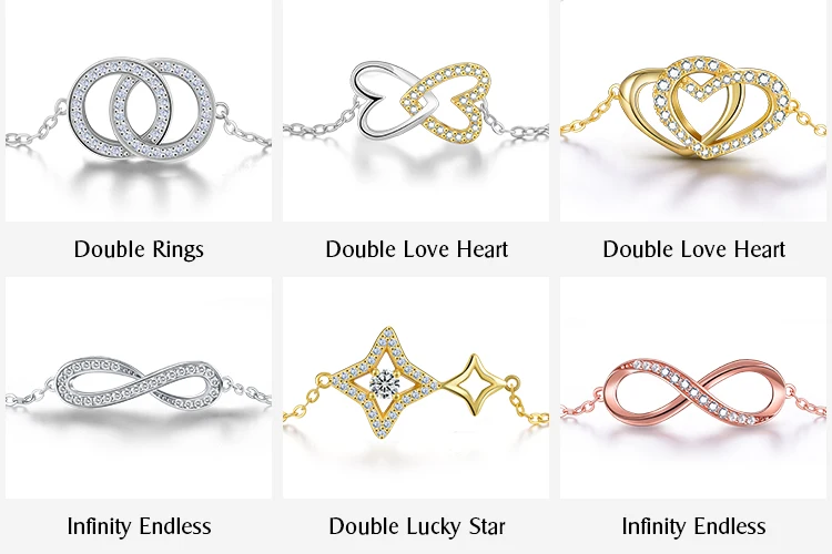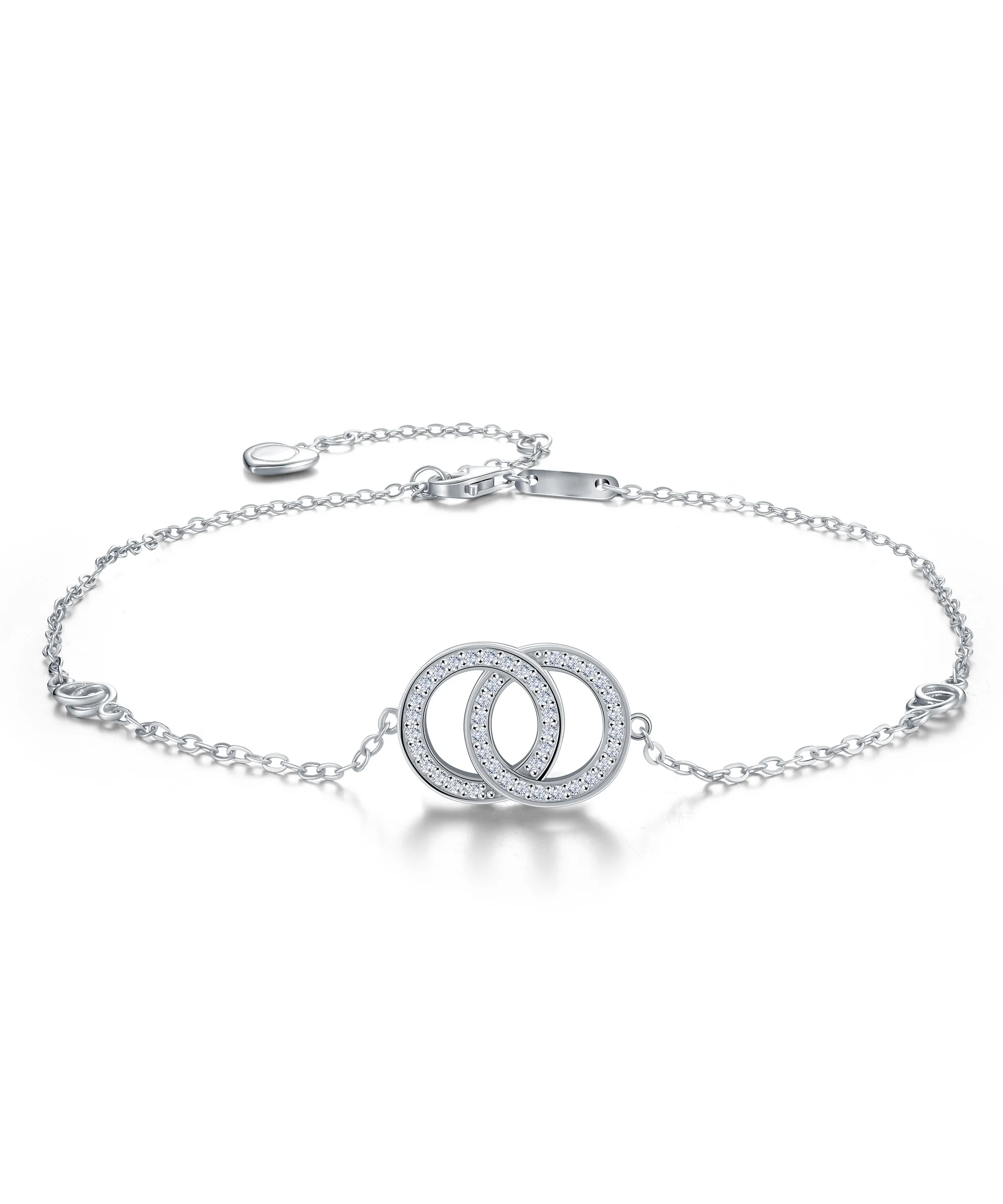 wholesale new design Double Rings Cubic Zirconia Adjustable 925 Sterling Silver Bracelet for Women