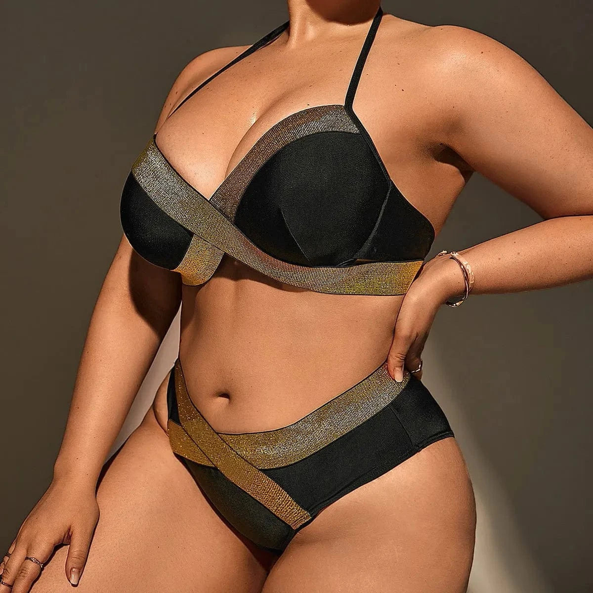 Wholesale New Plus Size Swimwear Sexy Bikini Women's 2023 New Gold Ribbon Swimwear Swimwear for Fat Women