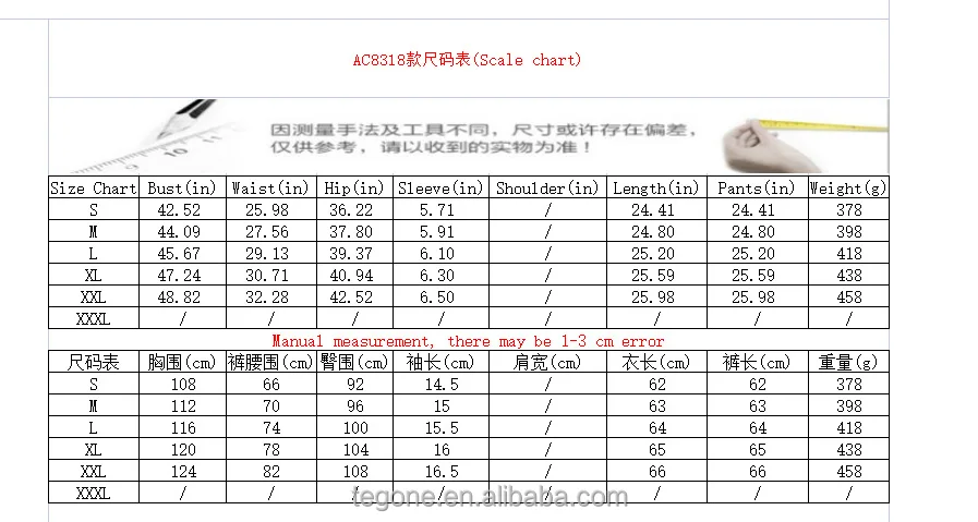 Product size chart