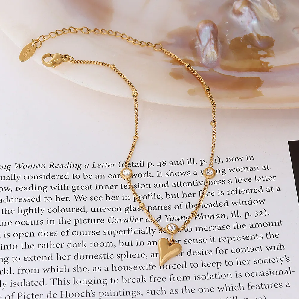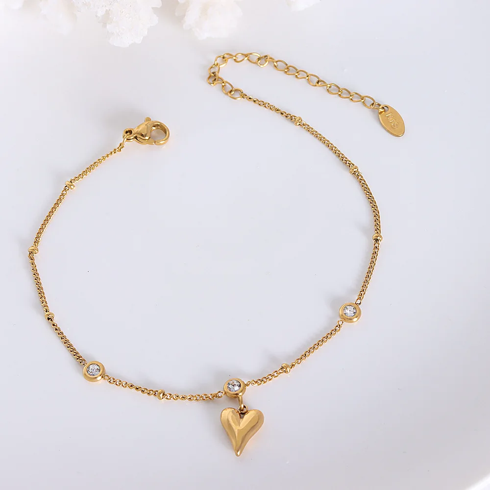 Wholesale New Zircon Three-dimensional Love Heart Pendant 18K Gold Plated Ankle Chain Foot Jewelry Anklets