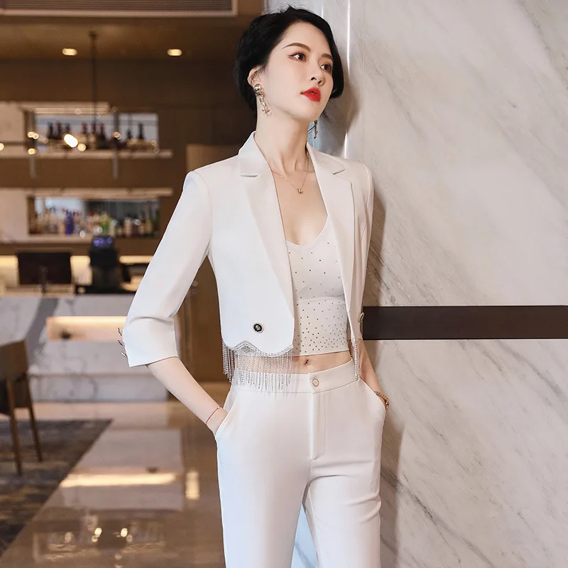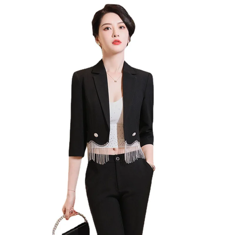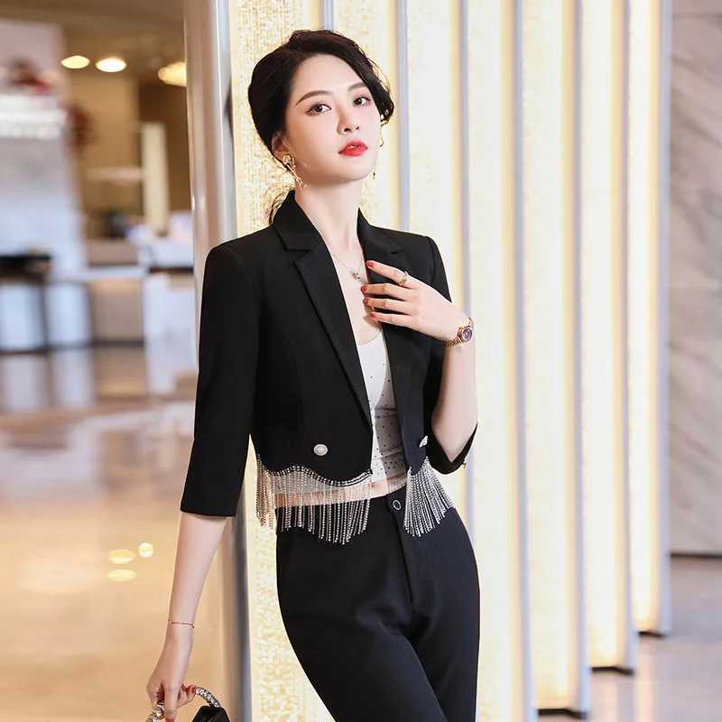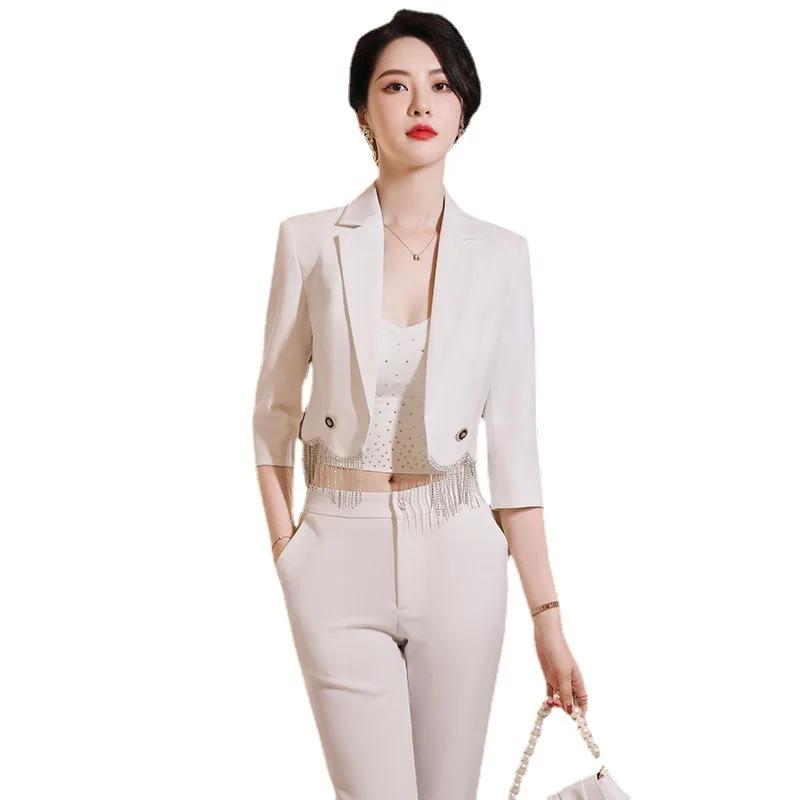 Wholesale OEM Half-sleeve 2 Pieces Business Suits Office Lady Short Slim Blazer And Trouser Interview Work Wear Sets