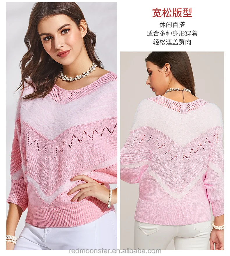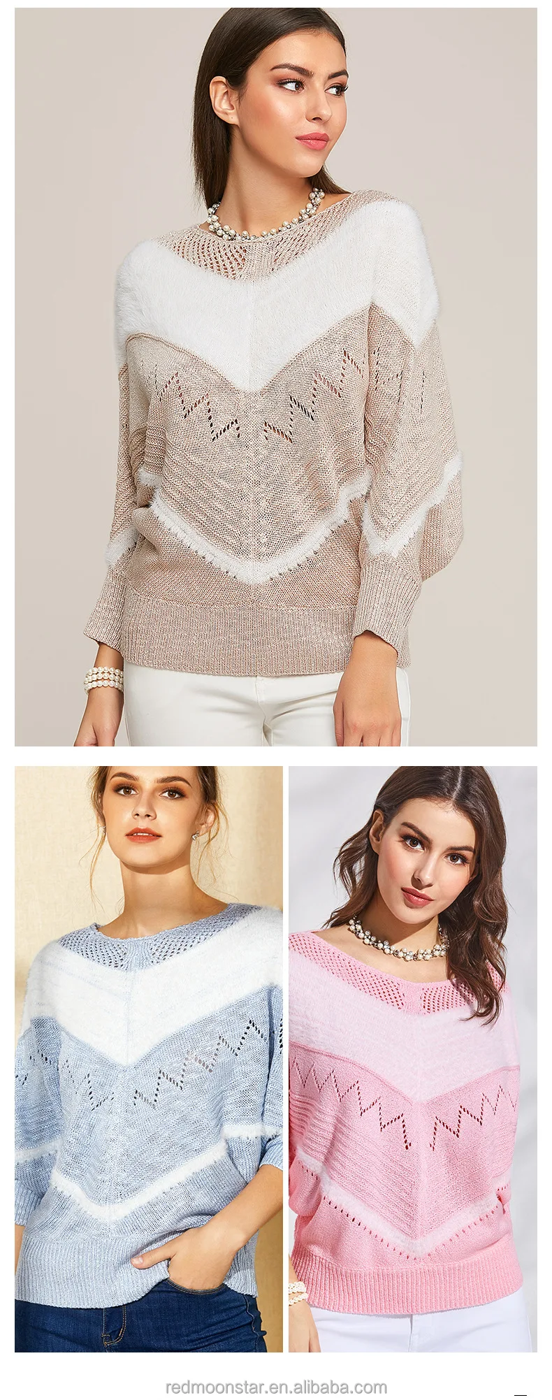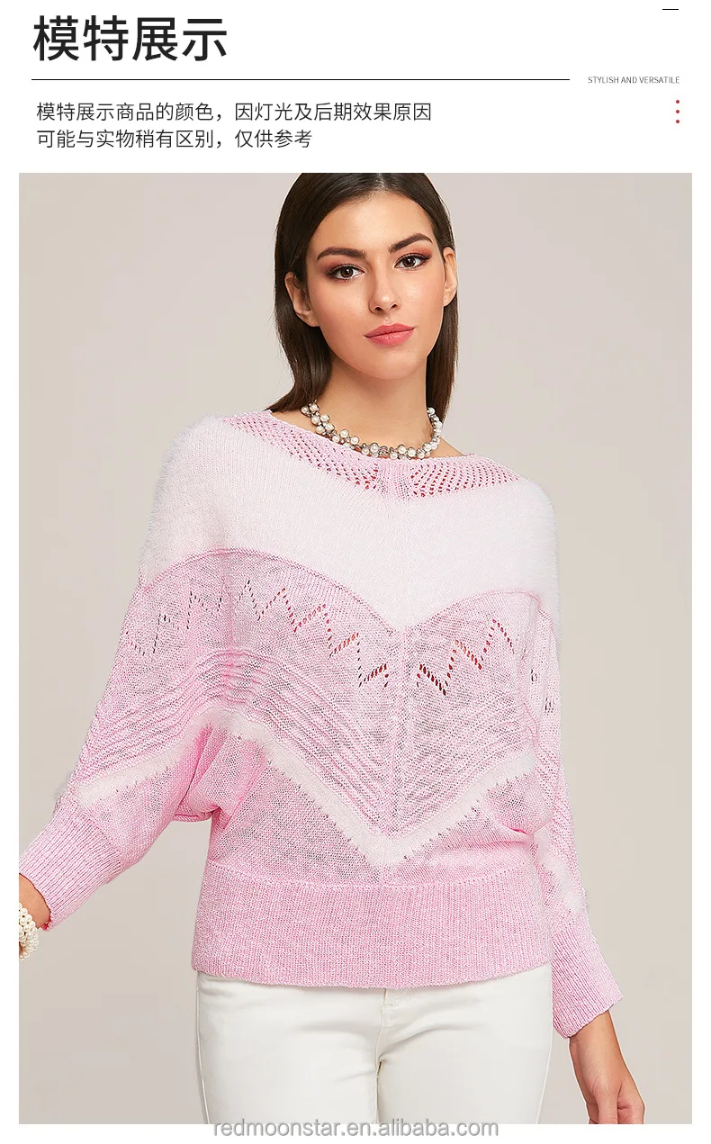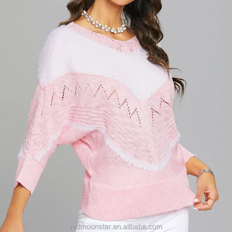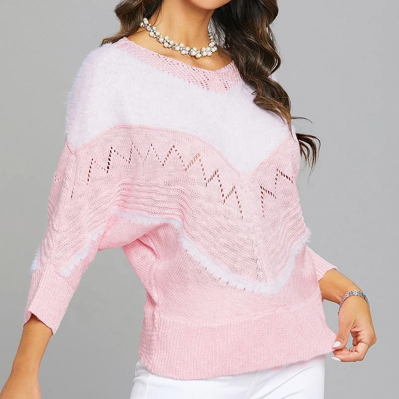 Wholesale OEM&ODM Women's Pullover Sweater Crew Neck hollowed out striped Long Knitted Solid bottoming shirt Women's sweater