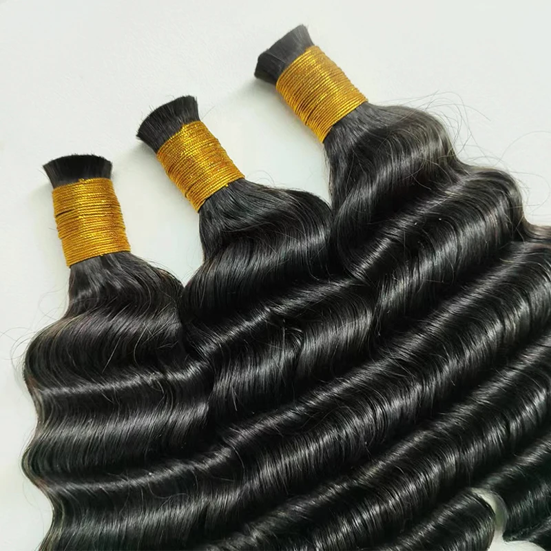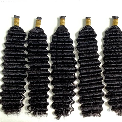Top quality raw hair deep wave bulk hair extensions