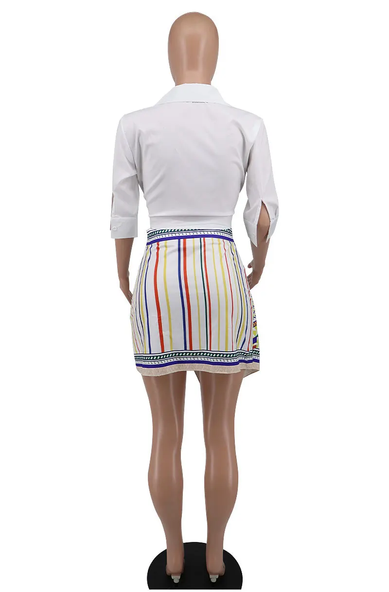 Wholesale Price High Quality Printed Long Sleeve Crop Top Slim Casual Sexy Two Piece Skirt Set