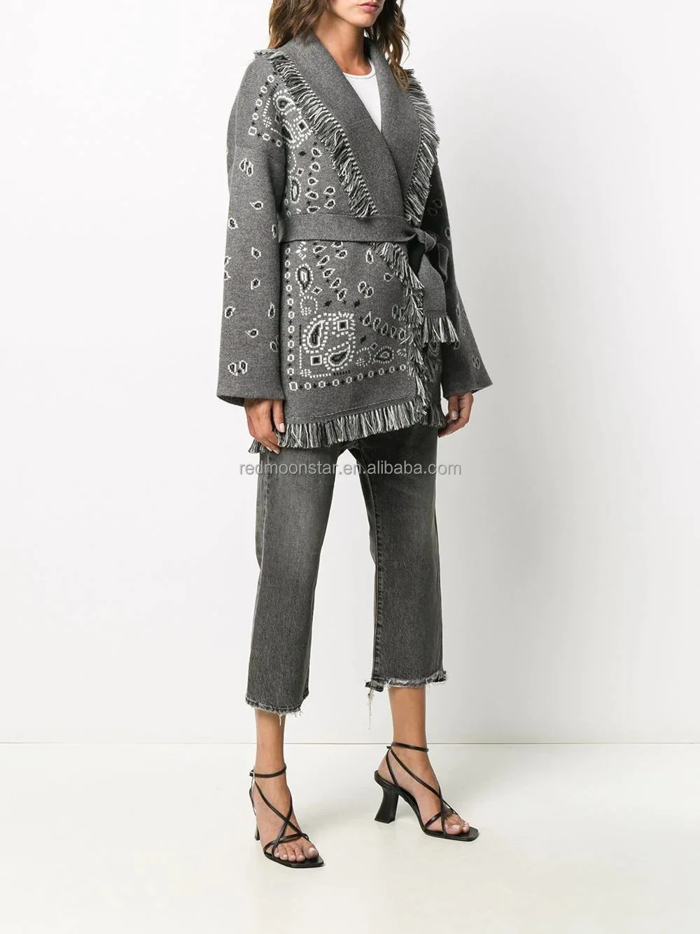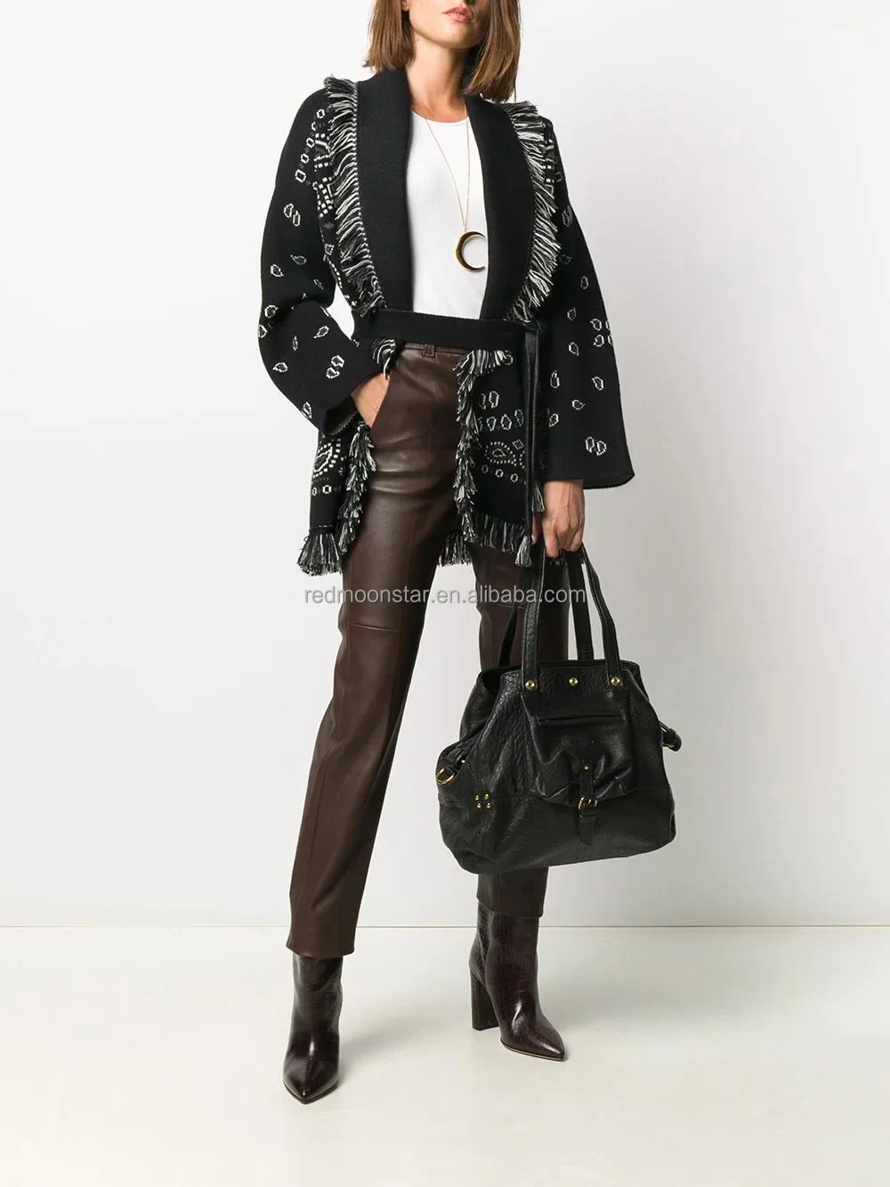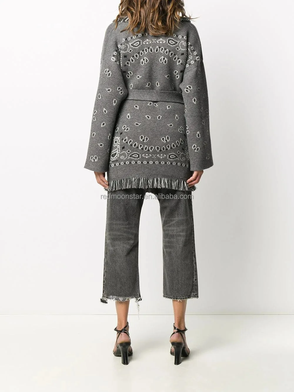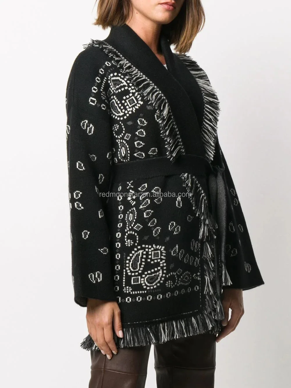 Wholesale Ready To Ship Bohemia Design Long Sleeve Plus Size Wool Soft Wool Coat With Tassel Women Vintage Knit Sweater Cardigan