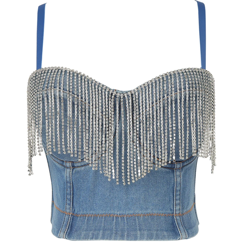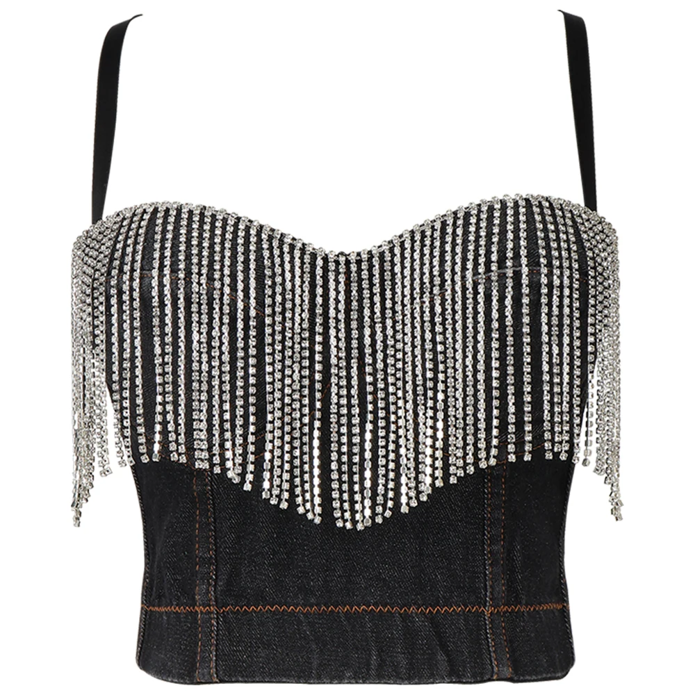Wholesale rhinestone Fringe top bustier women Vest corset bustier top