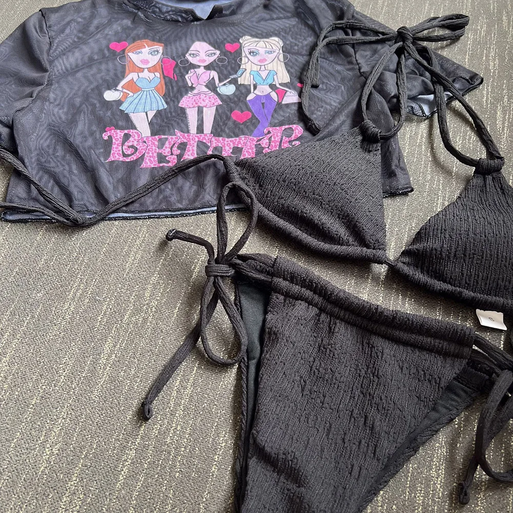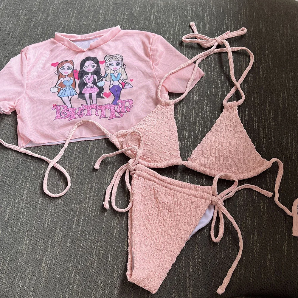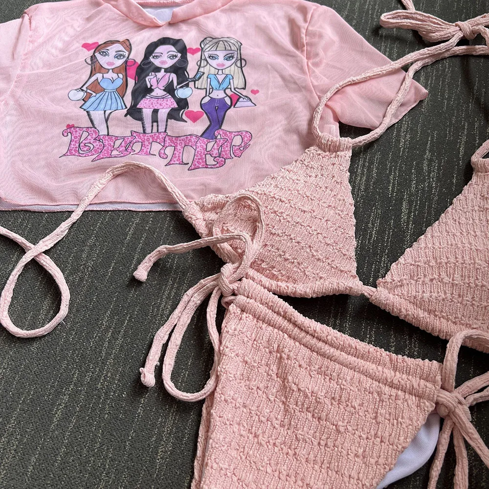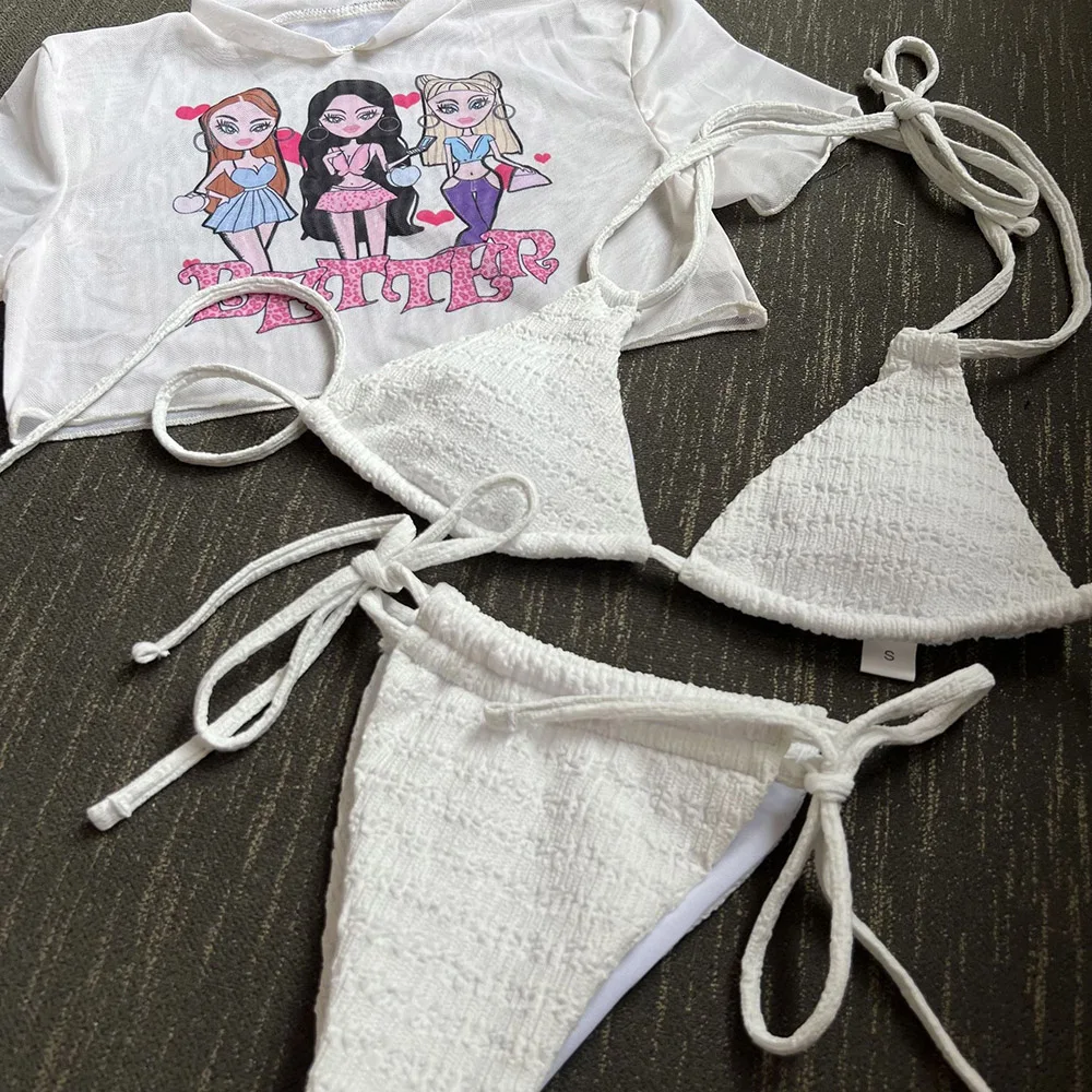 Wholesale Sexy Vest Style Bikini Set 3 Pieces Swimsuit Brazilian Lattice Short Sleeve Swimwear 2024 Beachwear Bathing Suit