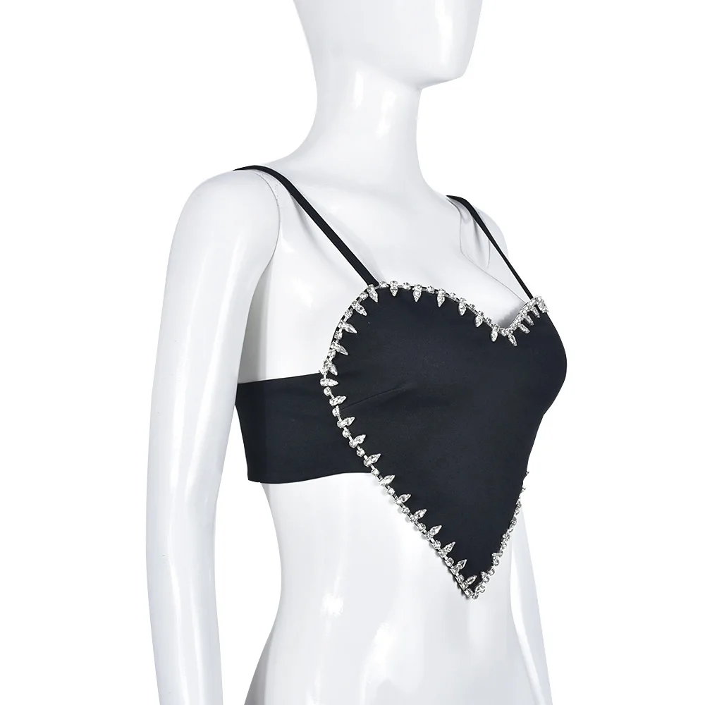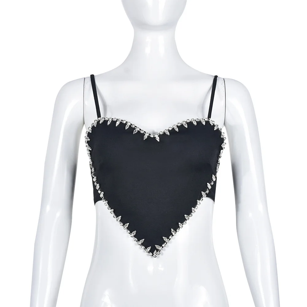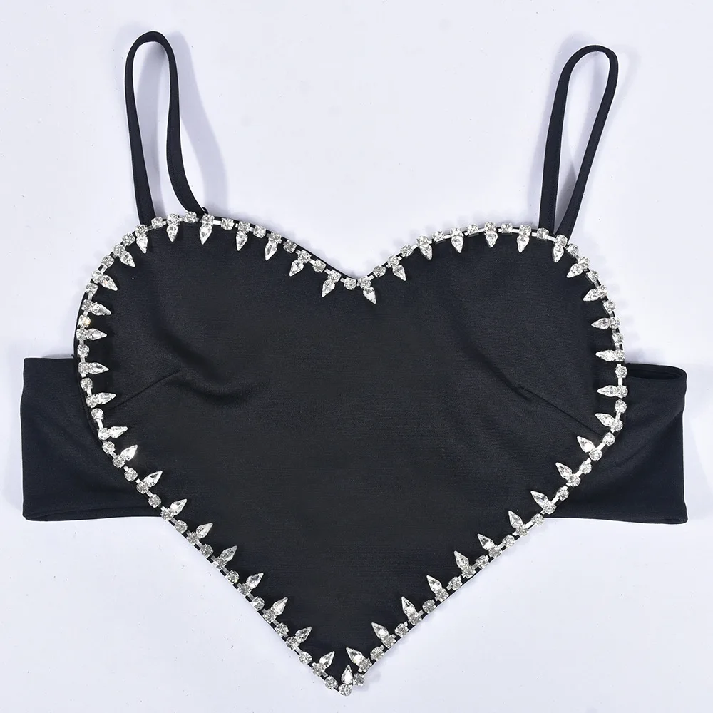 Wholesale summer fashion hot rhinestone sleeveless crop tops for ladies women sexy heart shaped crop top mujer