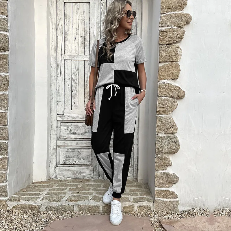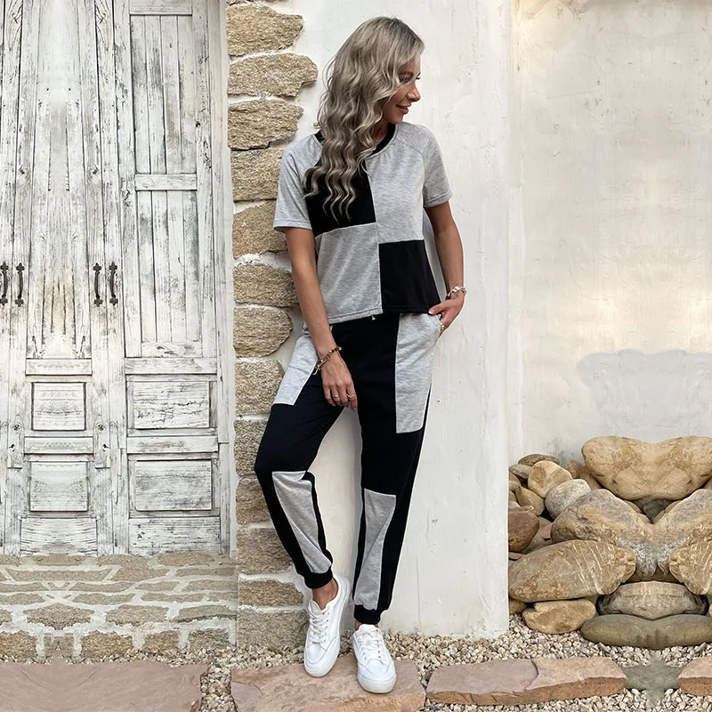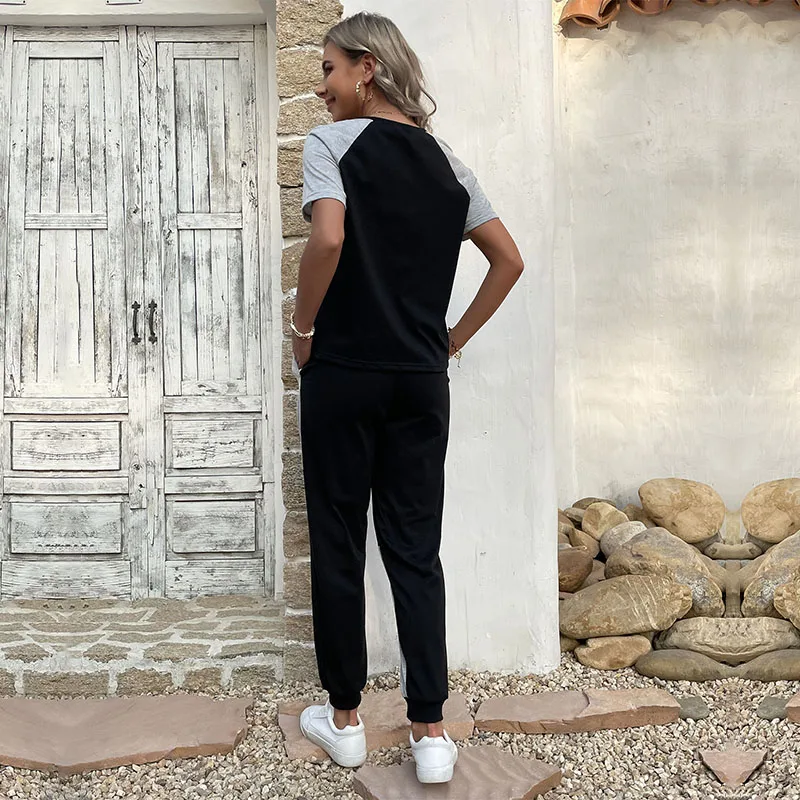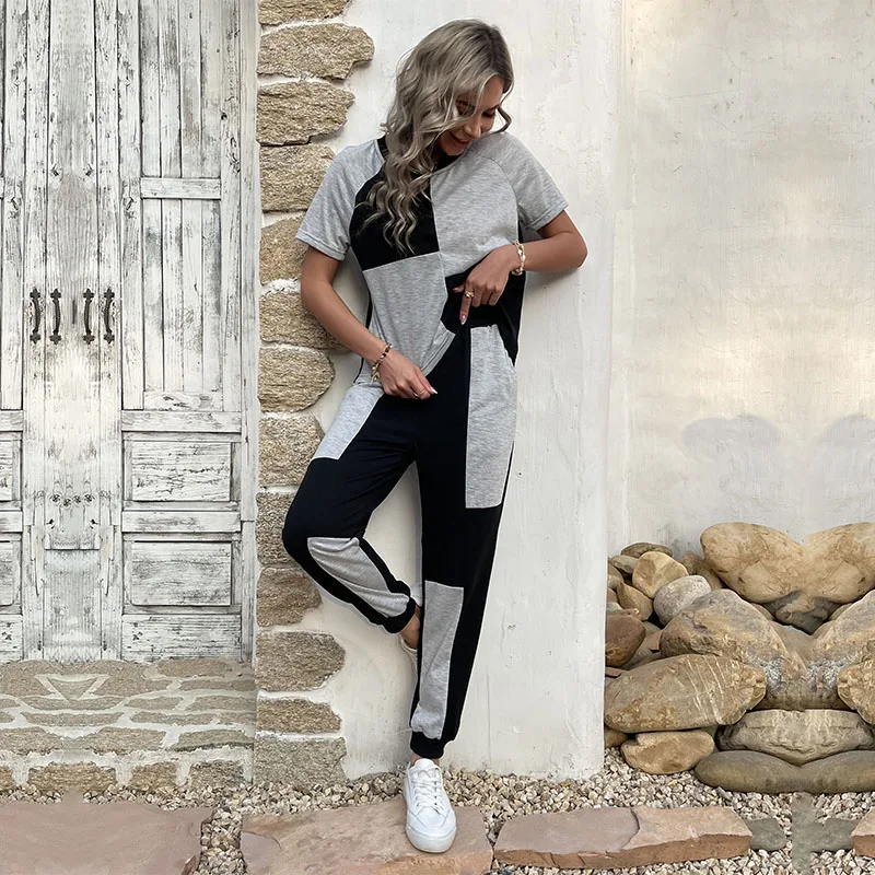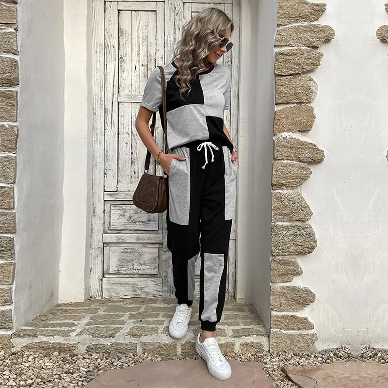 Wholesale Summer Outfits High Quality Tee Shirt Jogging Sets Cotton Patchwork Two Piece Pants Set Two Piece Set