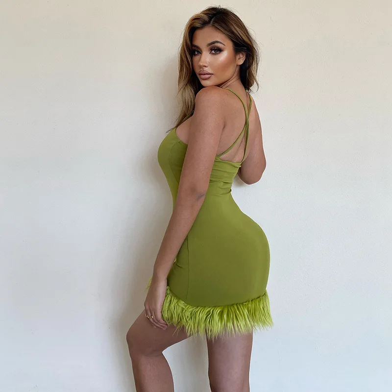 Wholesale Summer Polyester Solid Mini Dress Women Sexy Halter Bodycon Party Dresses fur hem