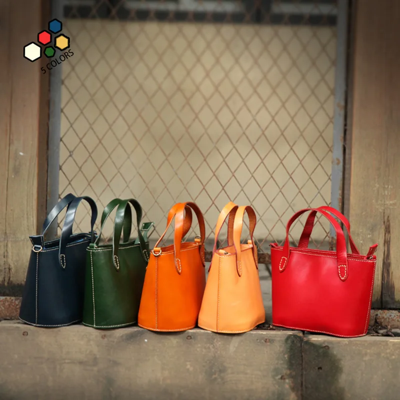 Wholesale Vintage Women's Bucket Bag Customized Genuine Leather Ladies Handbags Fashion Trend Nice Design Bucket Bags For Women