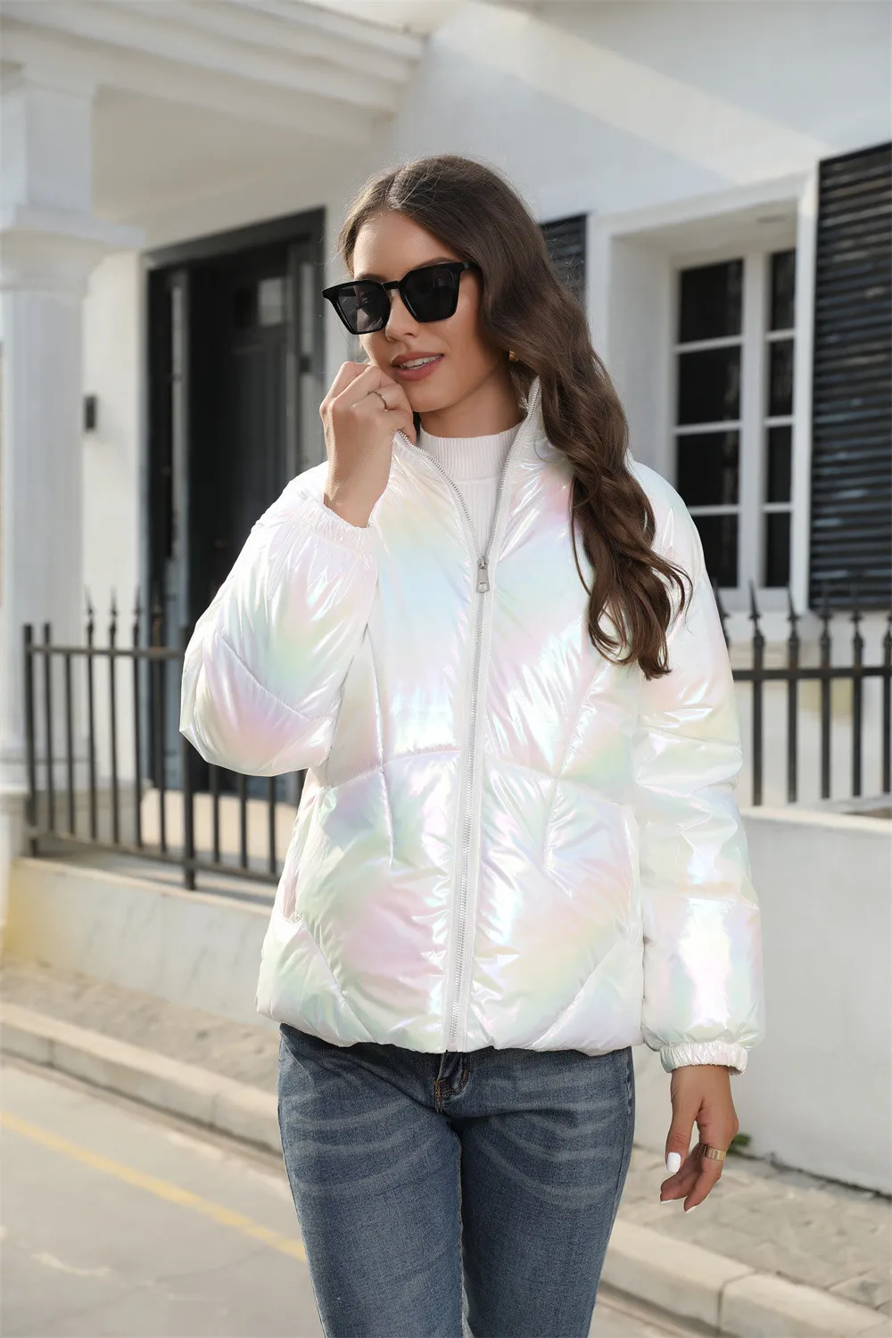 2023 winter zipper casual warm coat fashion cropped shiny puffer down jacket women