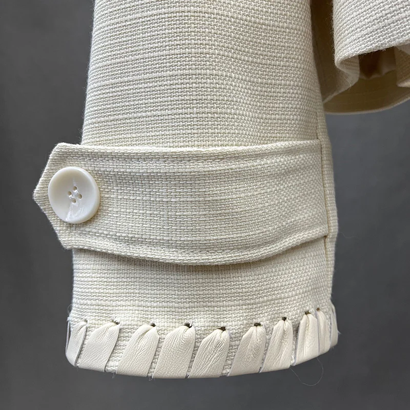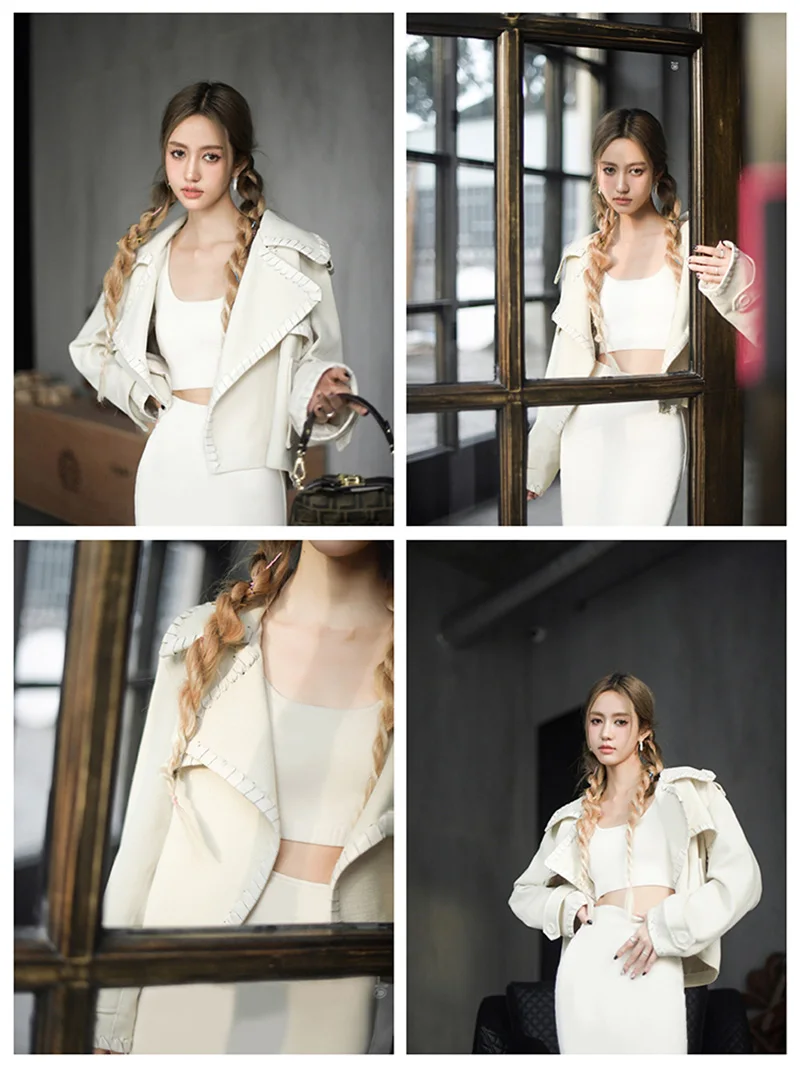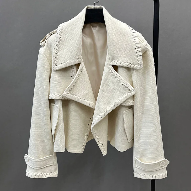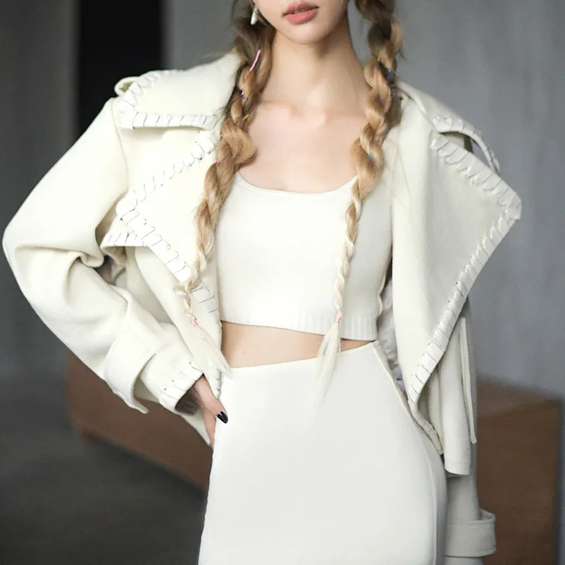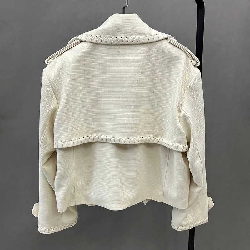 Wholesale Women Pretty Solid Color Cropped Jacket with Genuine Sheep Leather Trim