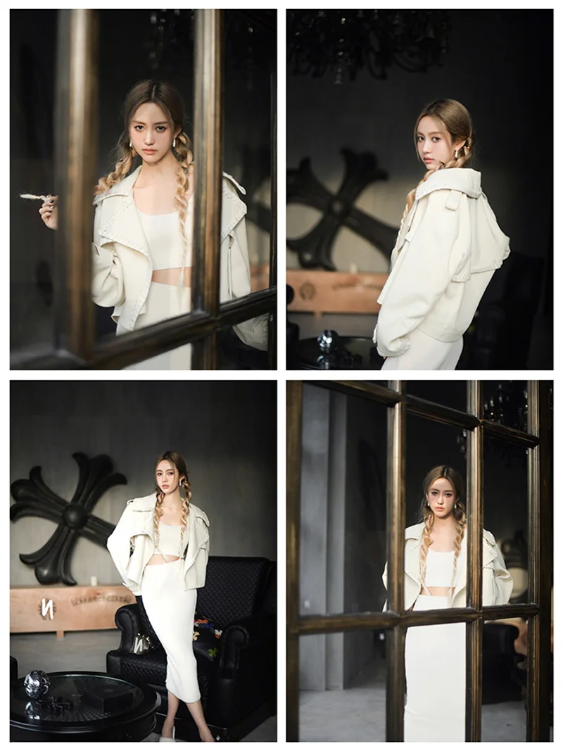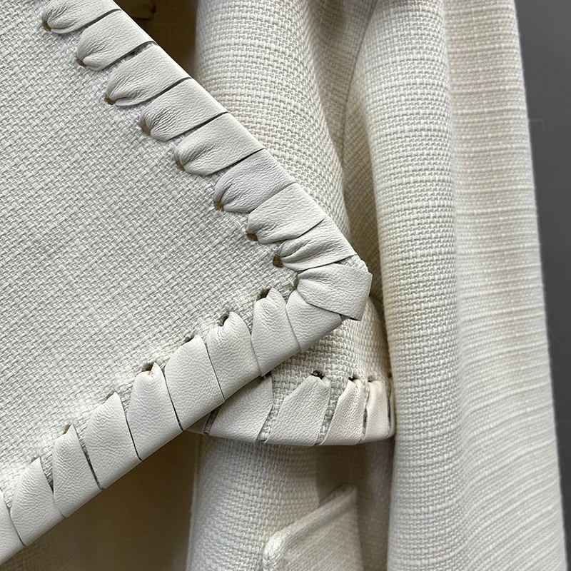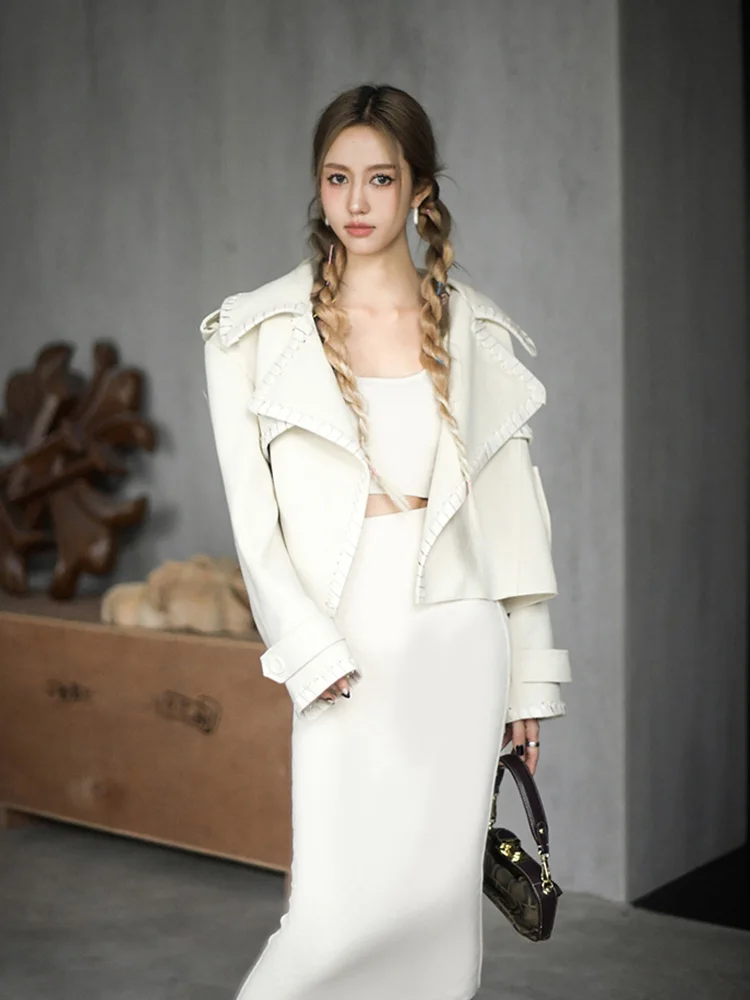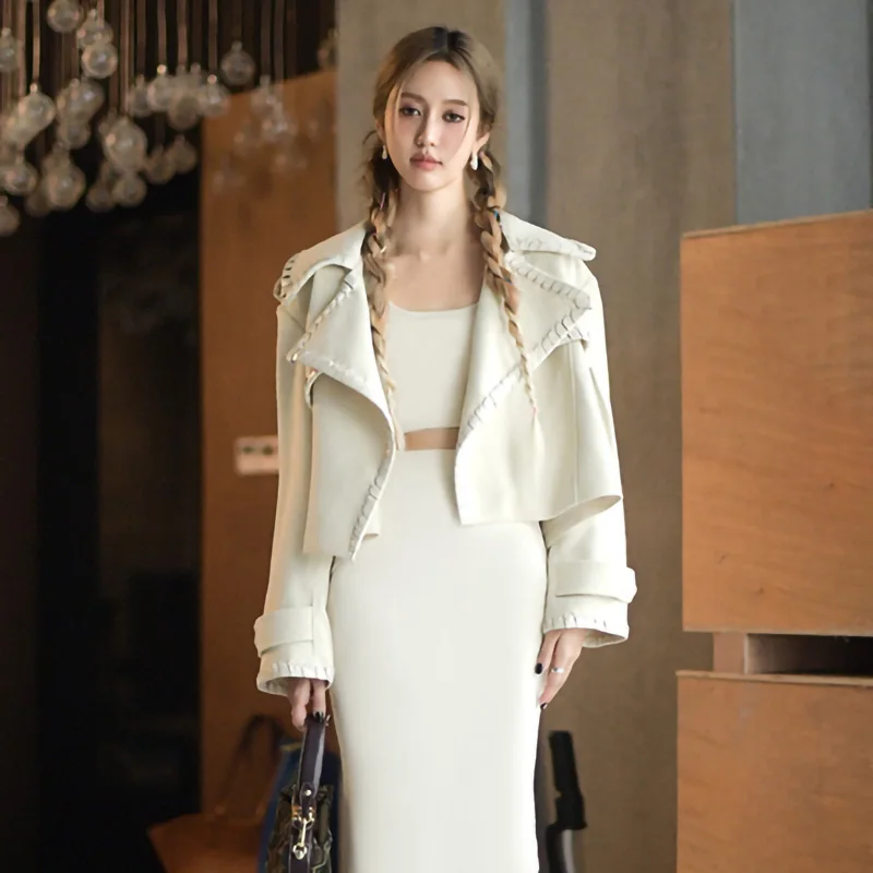Wholesale Women Pretty Solid Color Cropped Jacket with Genuine Sheep Leather Trim