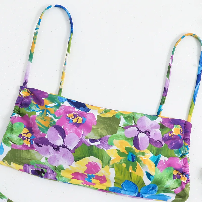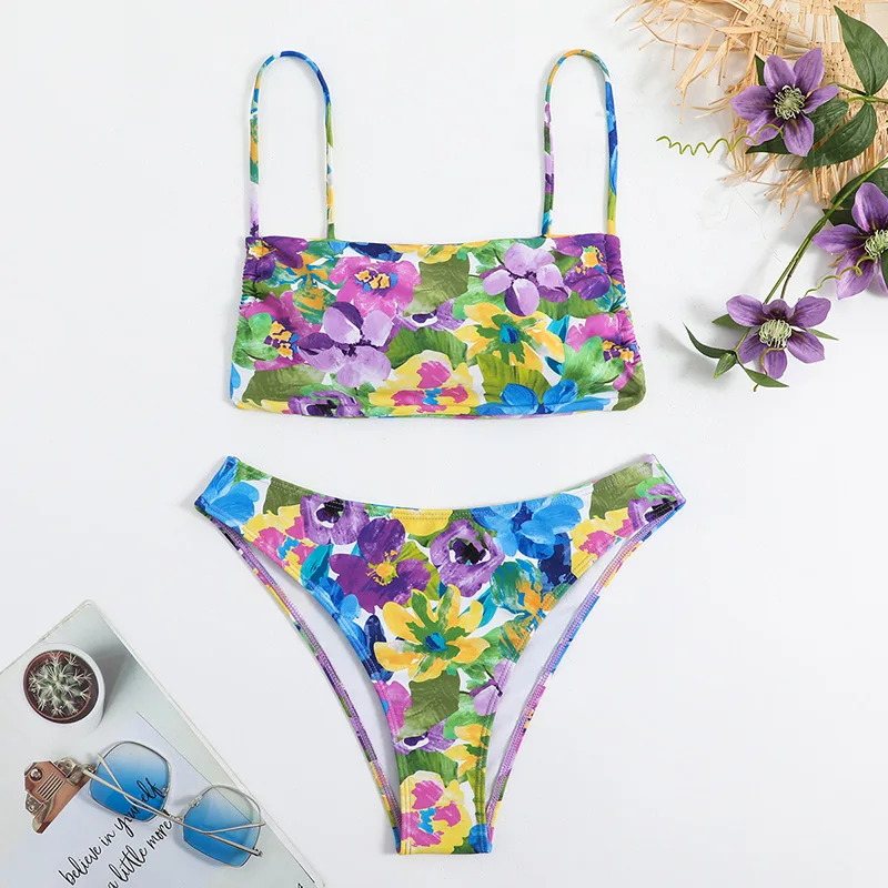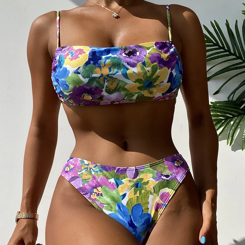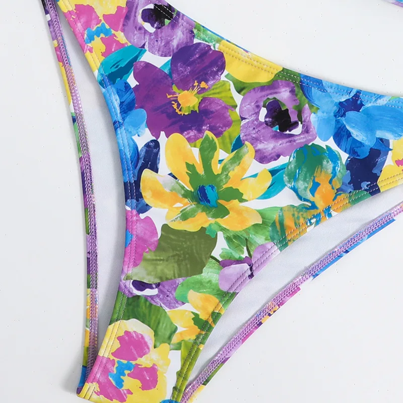 Wholesale Women Sexy Floral Print Swimsuit High Cut String Cute Swimwear 2023 Two Piece Beachwear Bikini Set