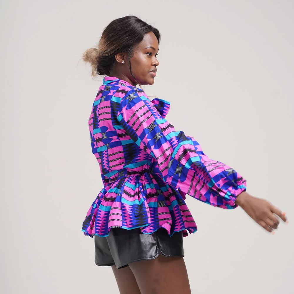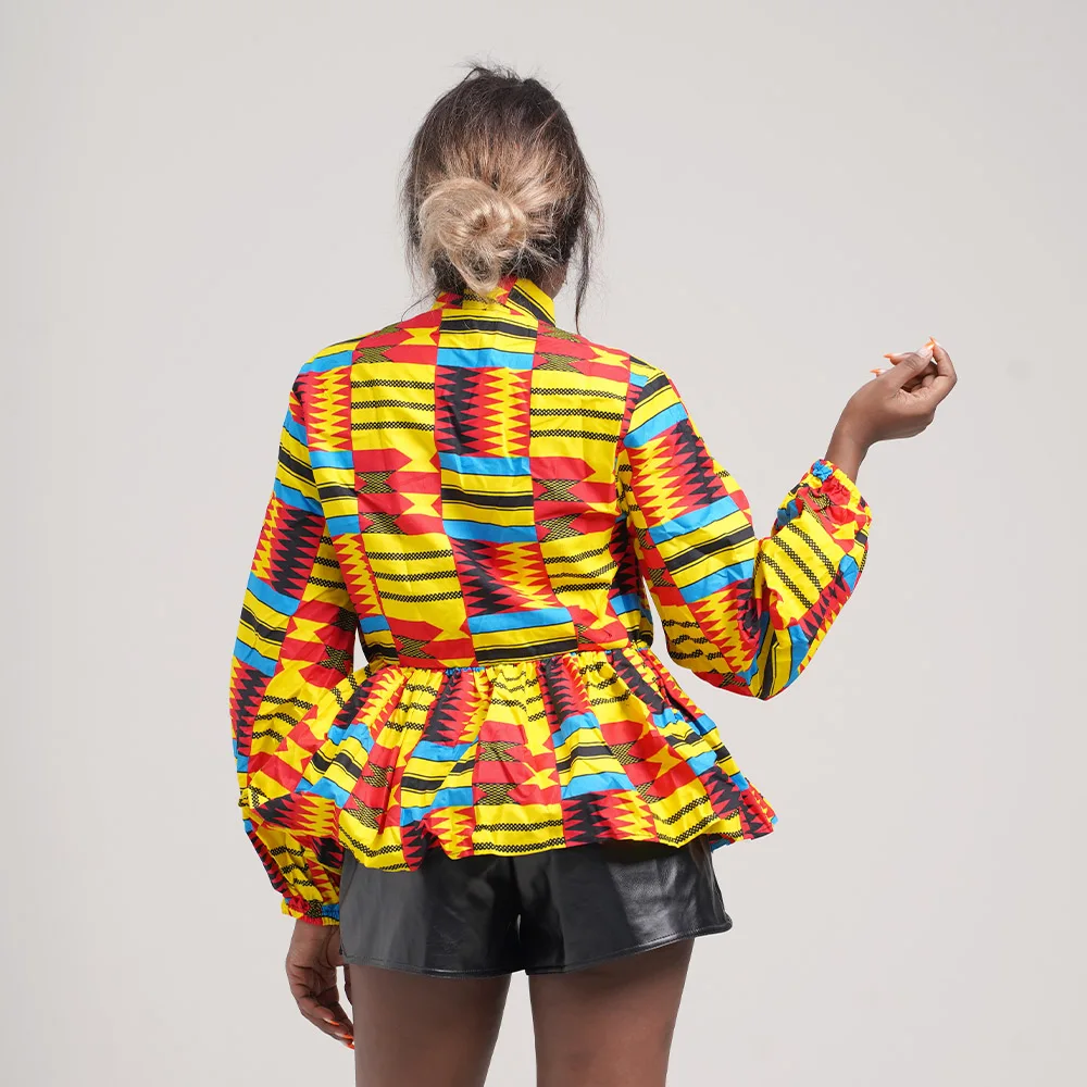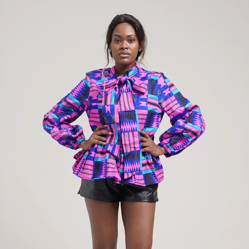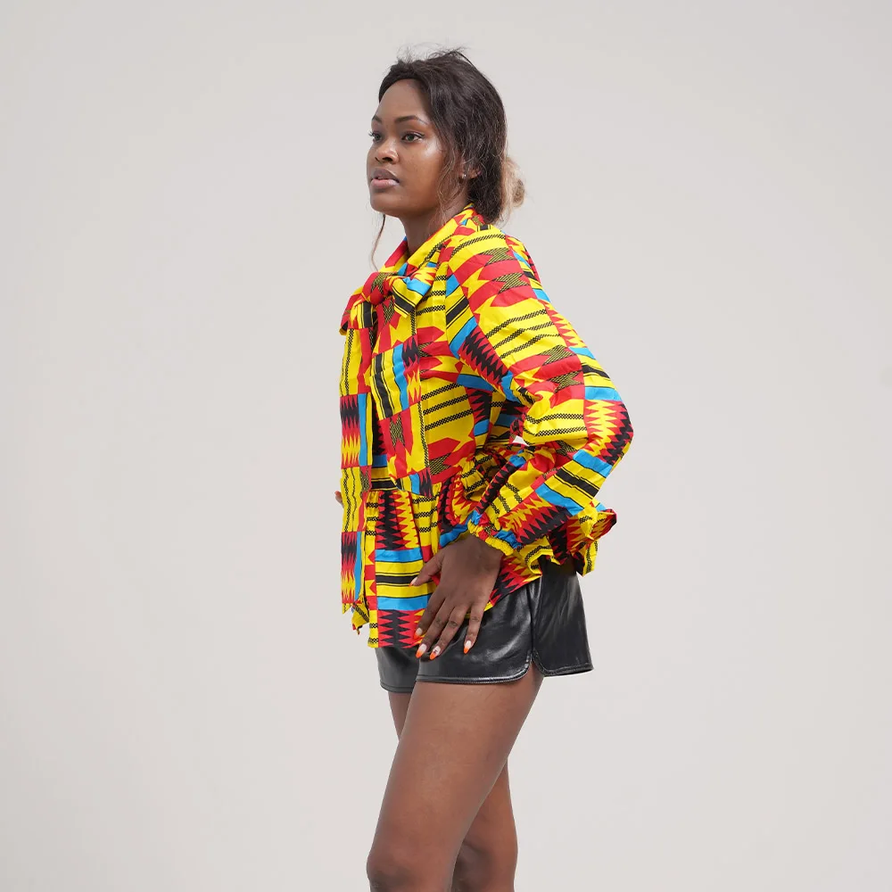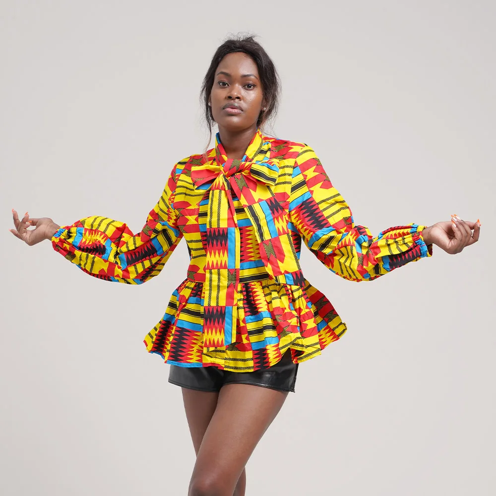 Wholesale Women Shirt New Style Design Brand women's Jacke Vintage Lantern Sleeve Featured Bow Wax Cloth Top Women's Coat