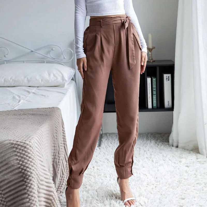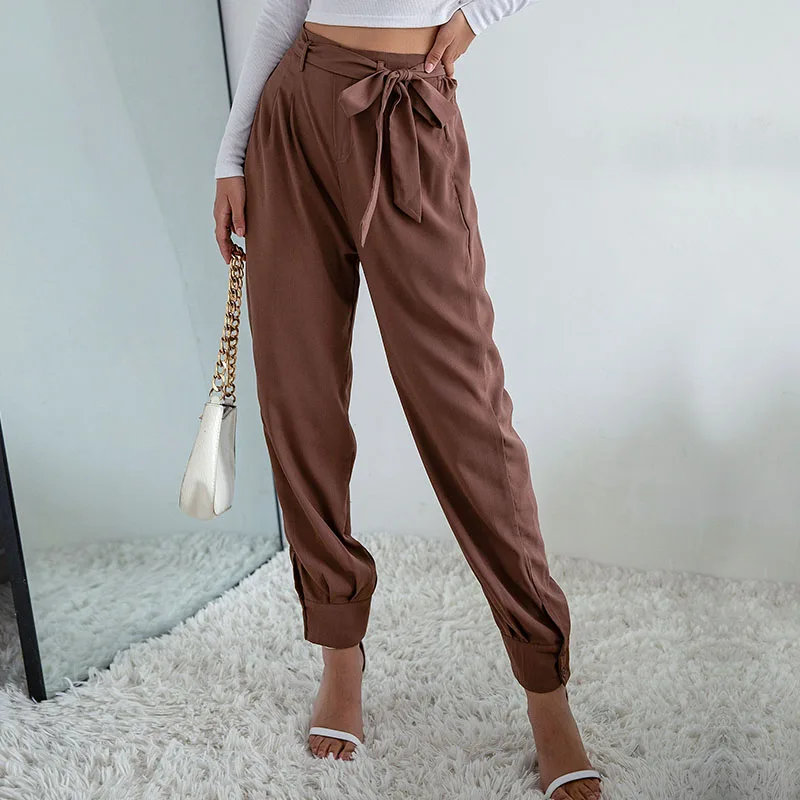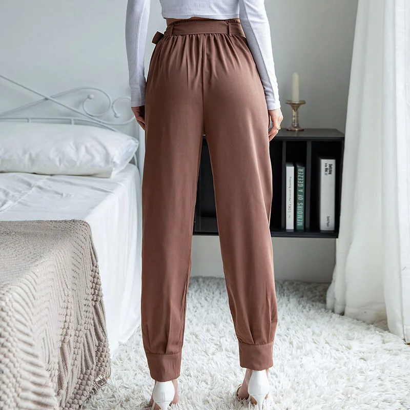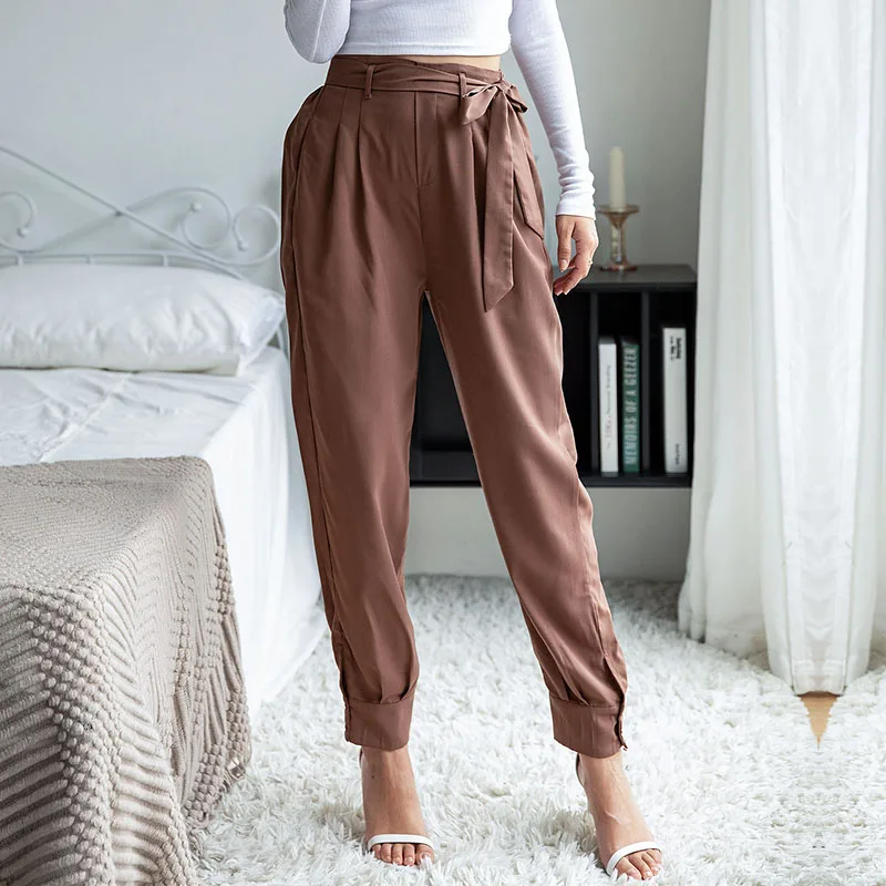 Wholesale Women's Wear Casual Solid Color Elastic Waist Lace-up Harem Pants