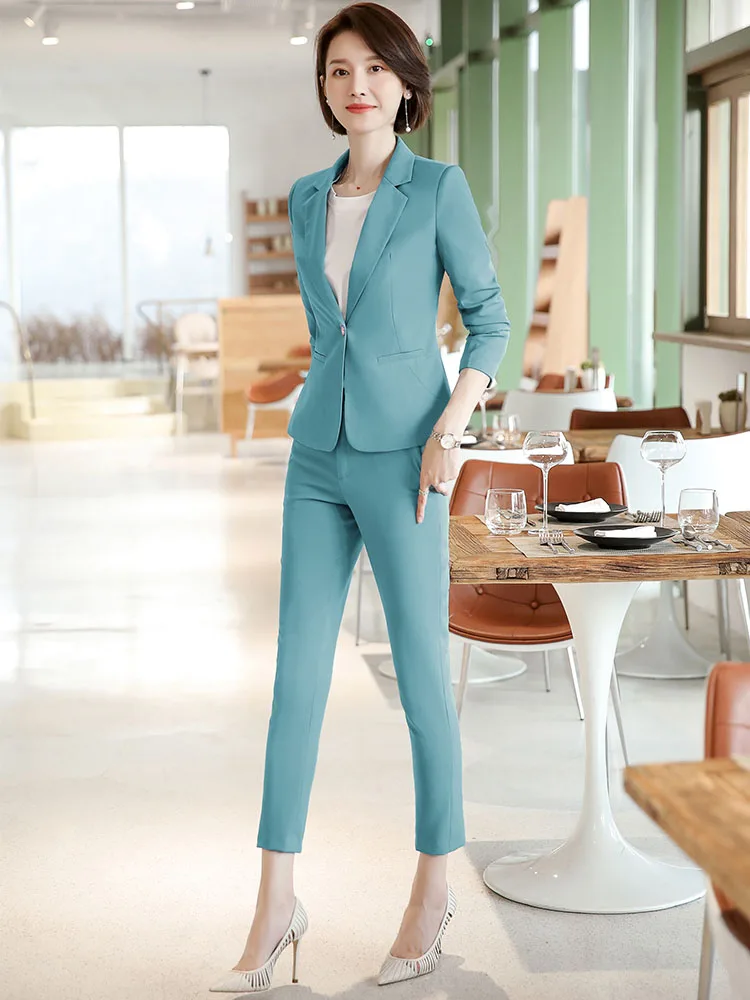 Wholesales 2 Pieces set Fashion Casual Pant Suit Office Lady Ankle-length Uniform for Women Business Work Wear with trousers