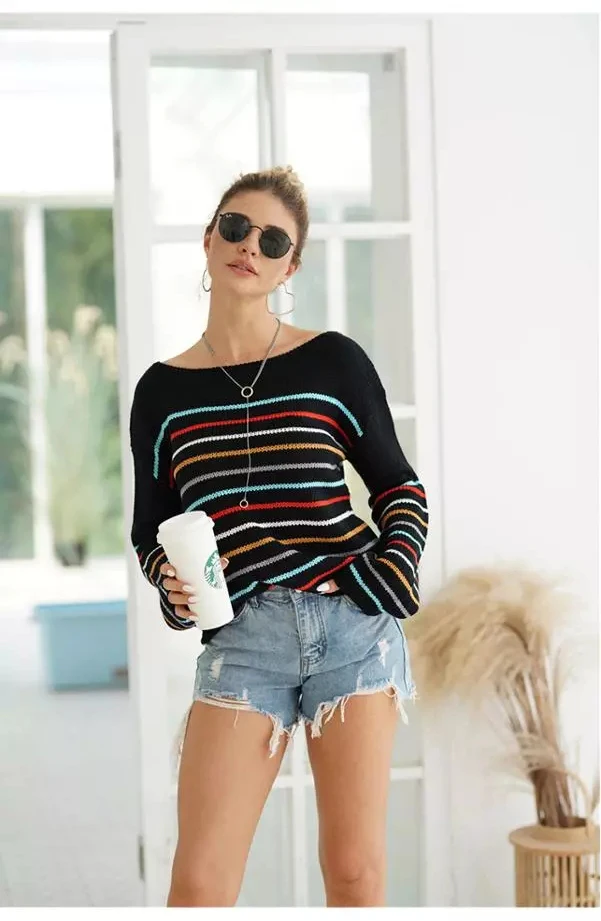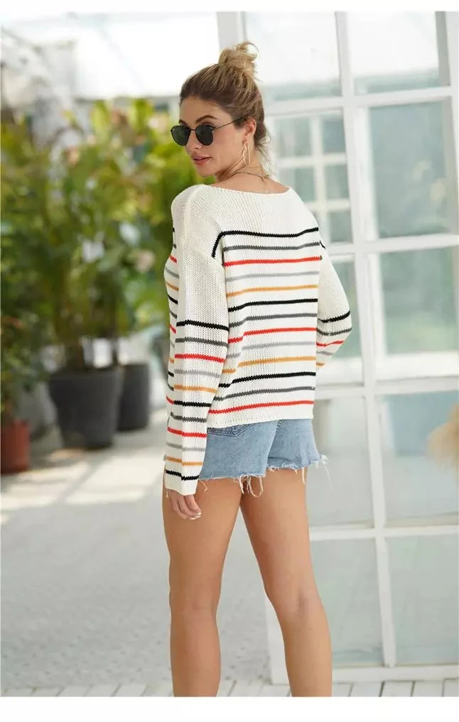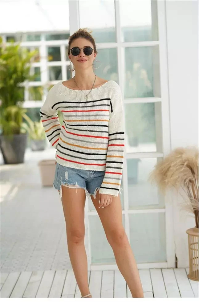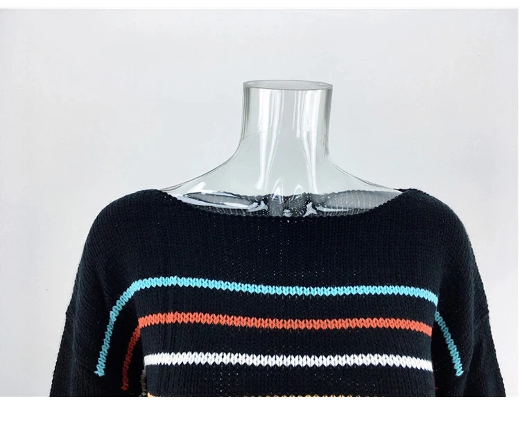 Fashion High Quality Womens Plus Size Crew Neck Fall Striped Cozy Sweater Women Knit