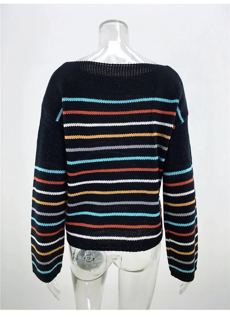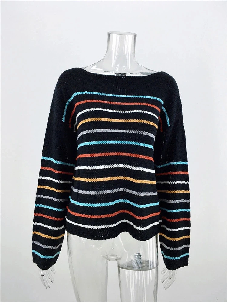 Wingtumarket fall knitted sweaters pullover striped black white drop shoulder oversized sweater women