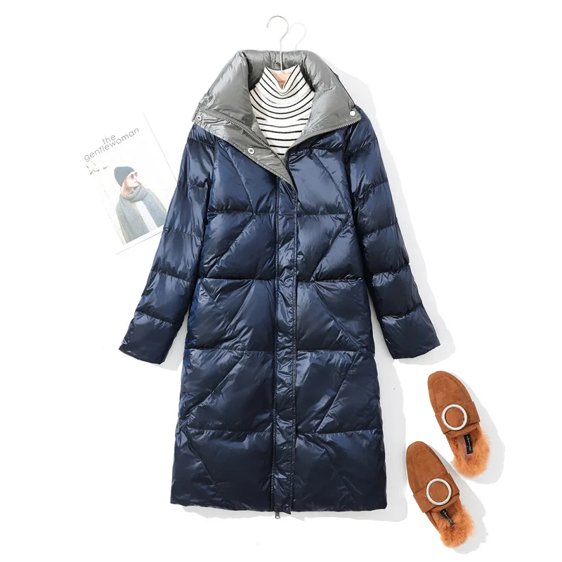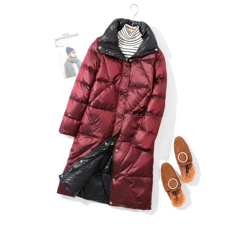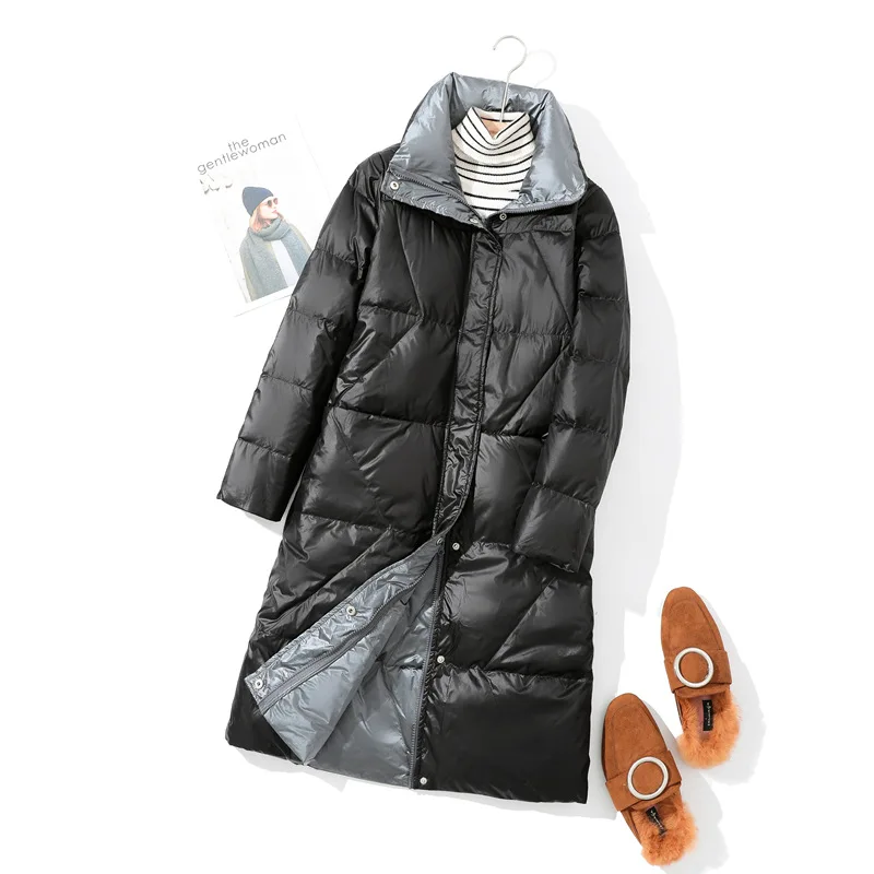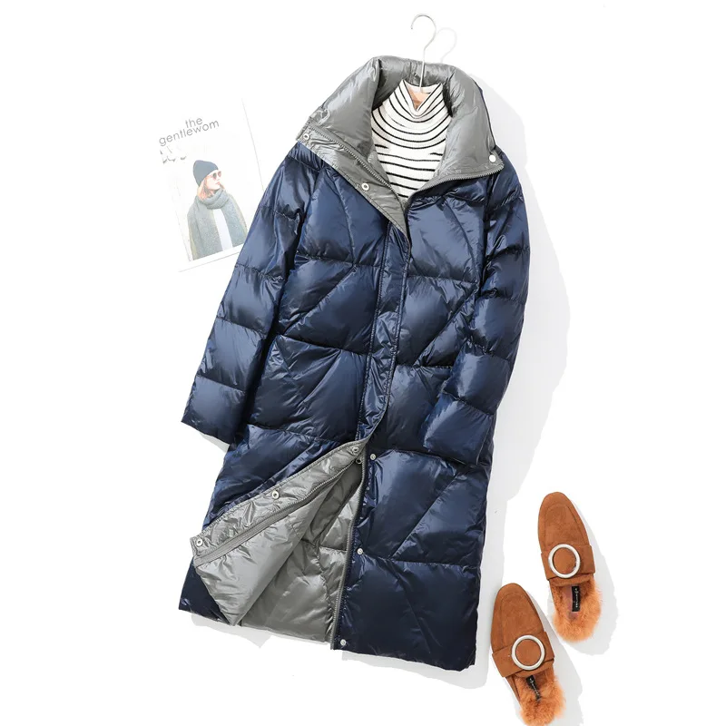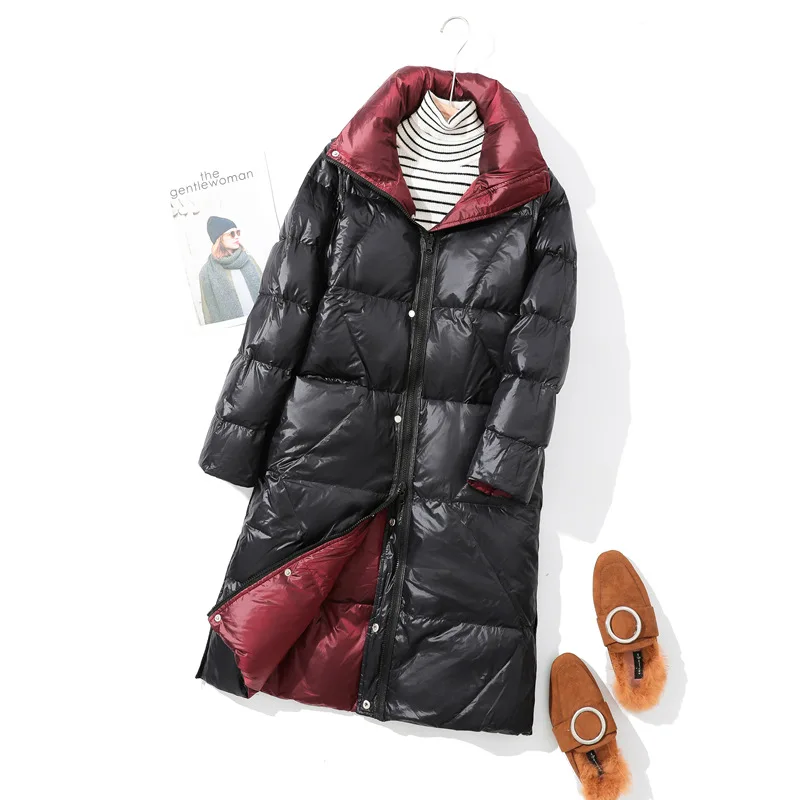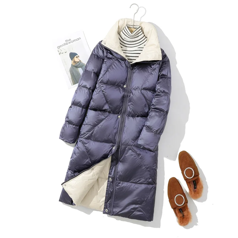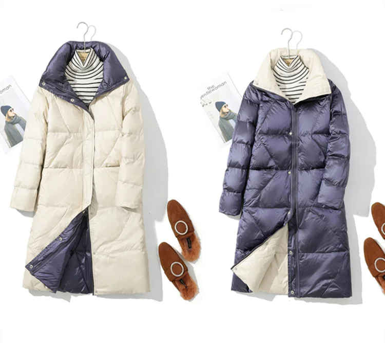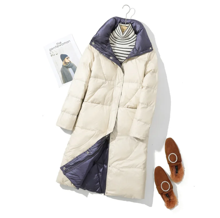 Winter 2022 New Double Wear Light Down Jacket Women's Middle School Long Korean Slim White Duck |