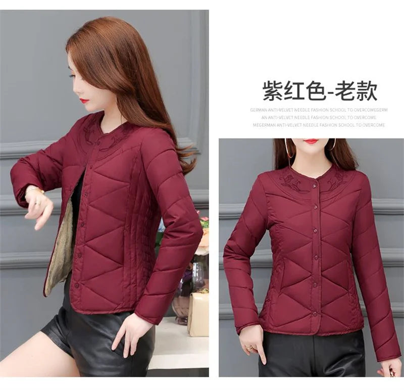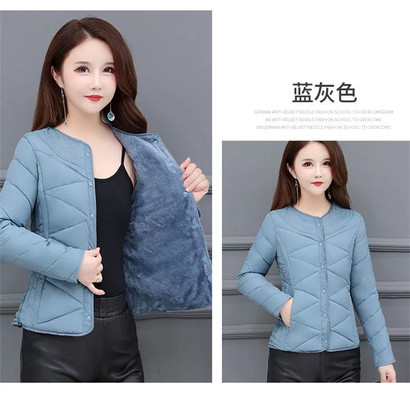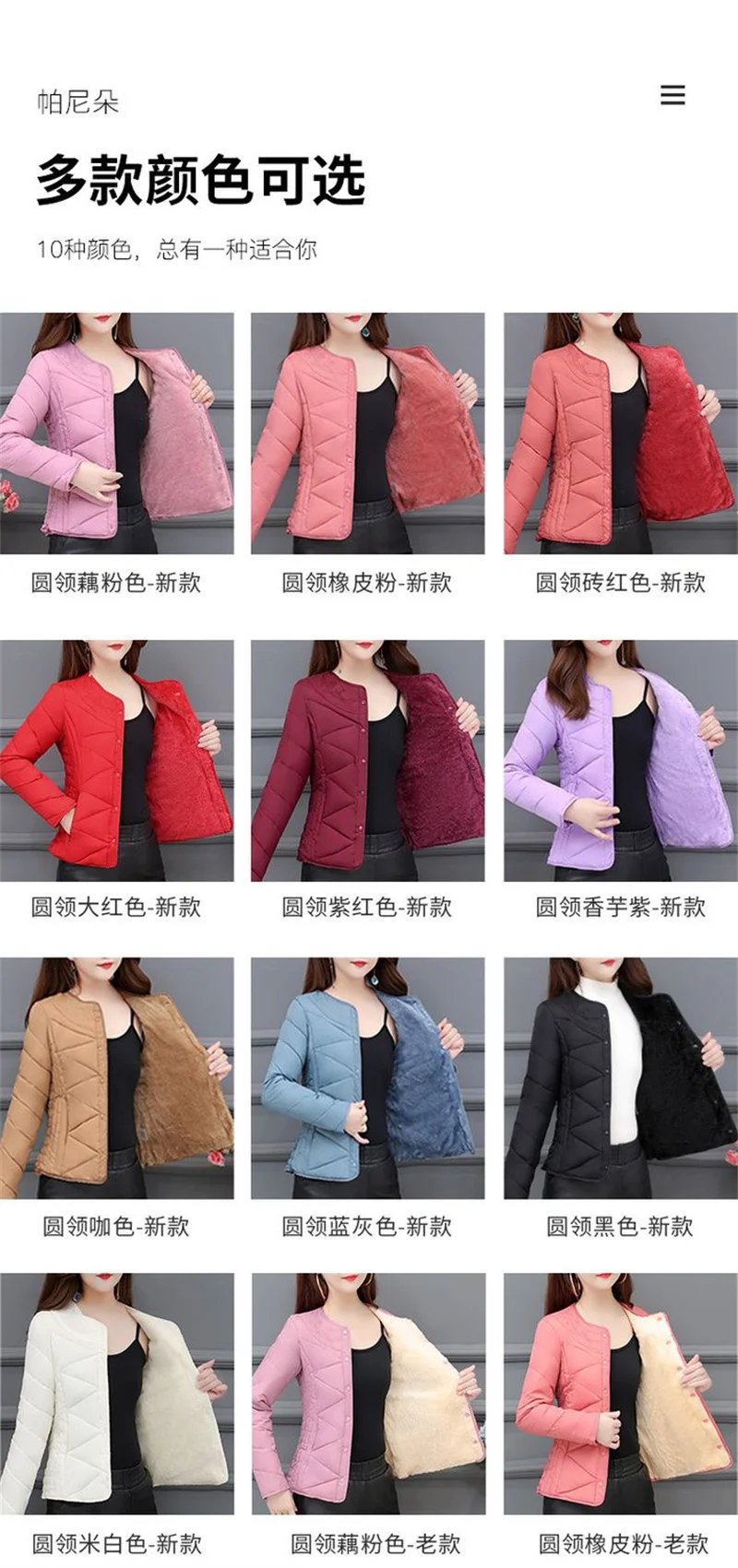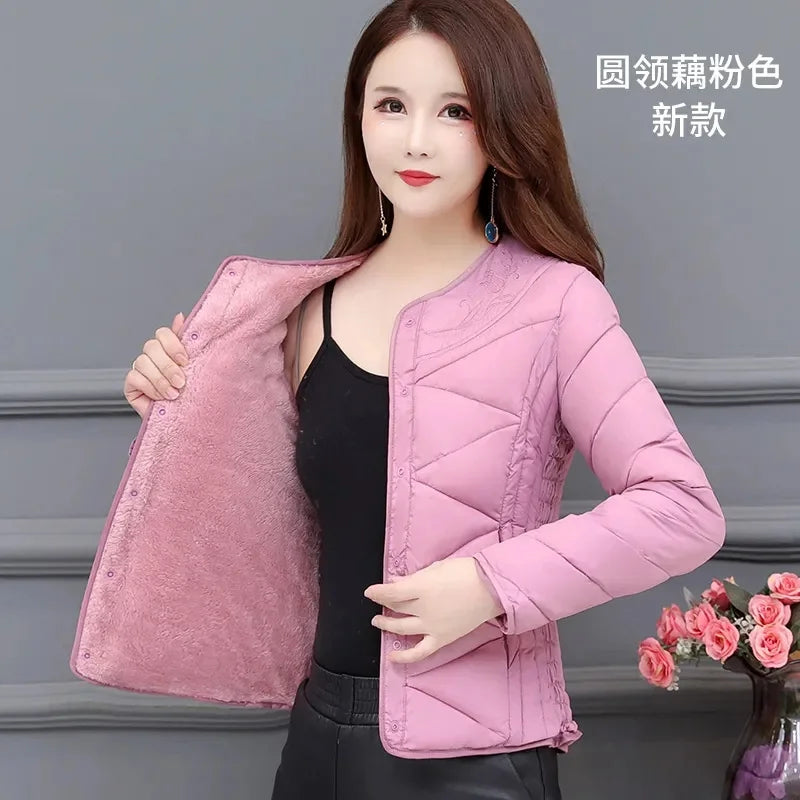 Winter Down Padded Jacket Women's Inner Short Mother's Wear Velvet Thickening Middle-Aged Elderly Mom Wear Pocket Jacket Pink