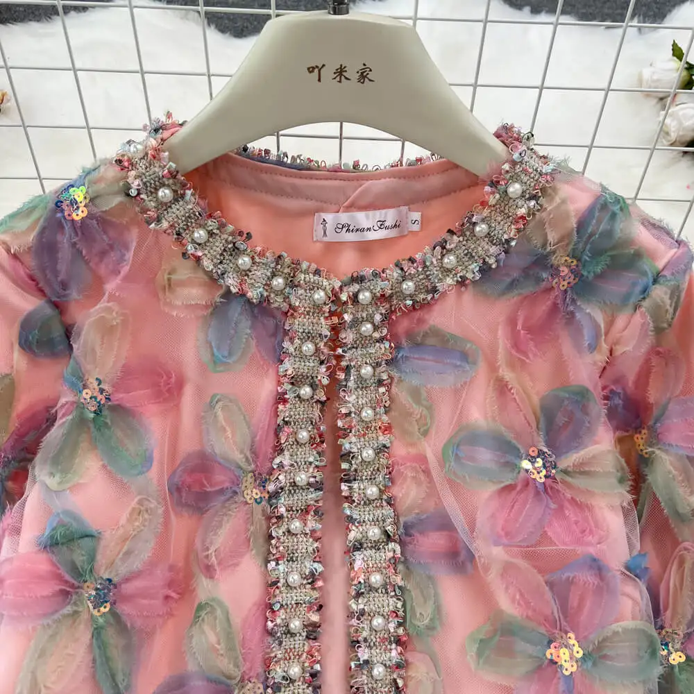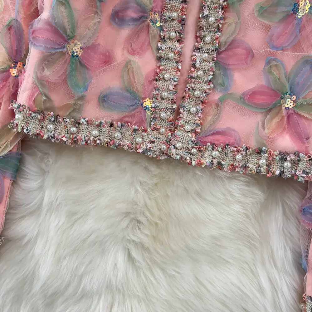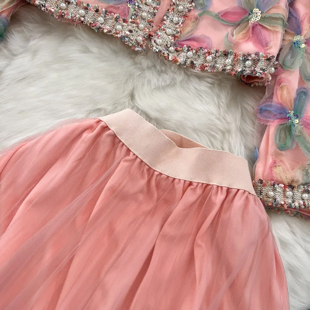 Winter Elegant Style Embroidery Stitching Houndstooth Crop Tweed Jacket 2 Piece Set Patchwork