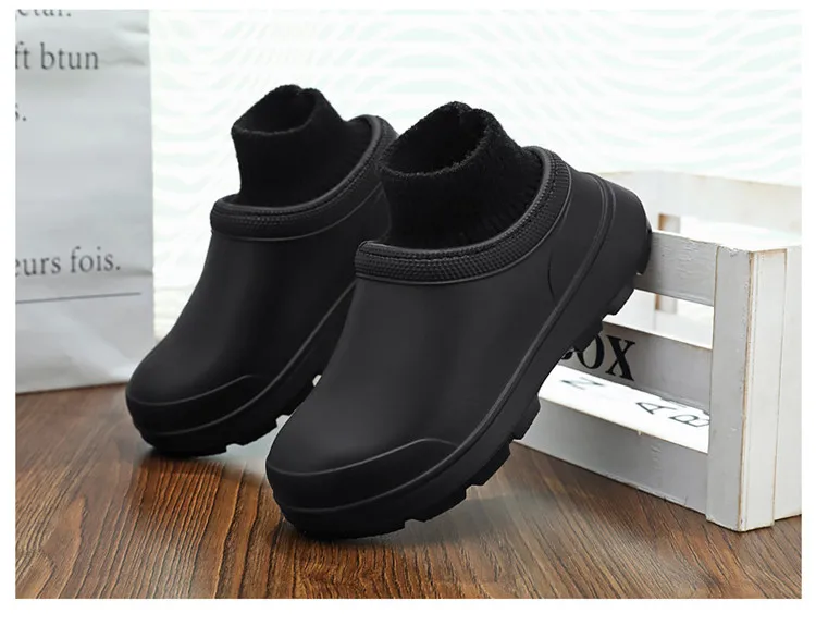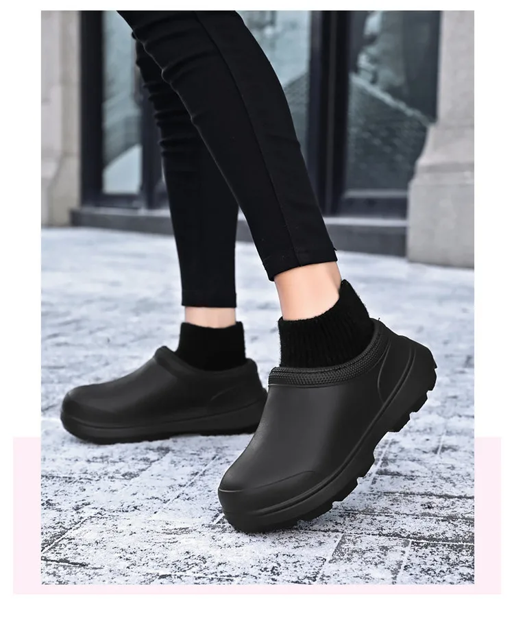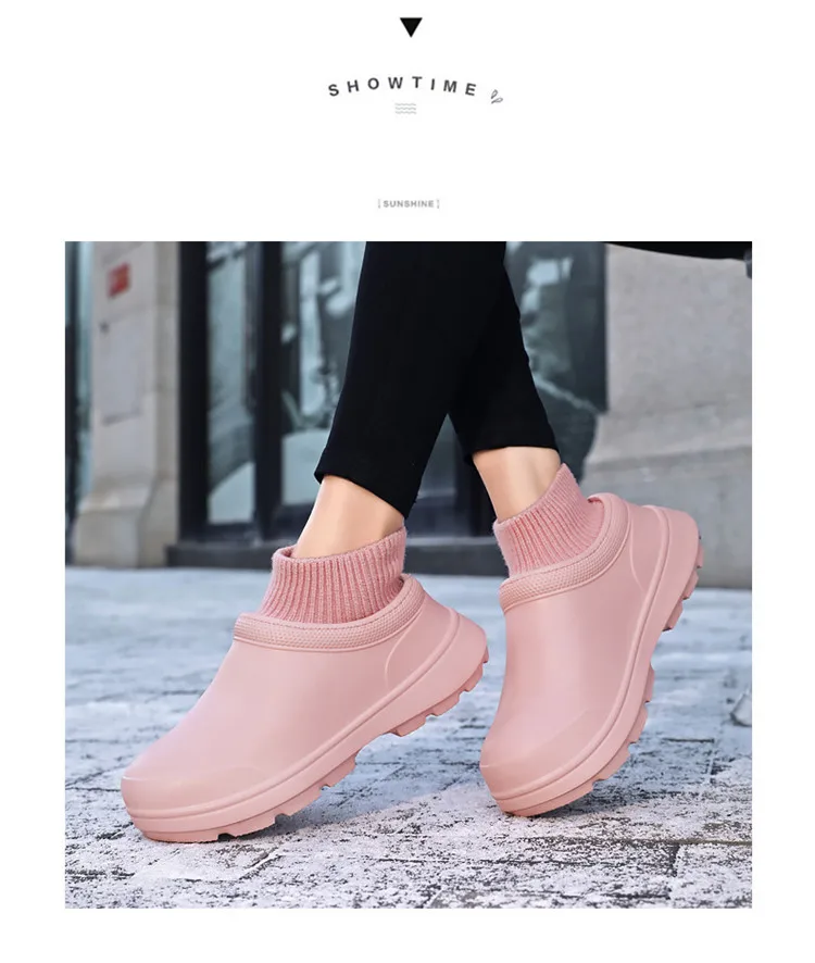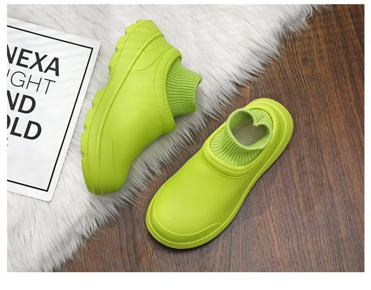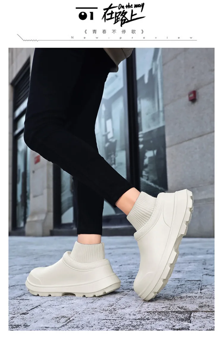 Winter EVA Platform Rain Boots Men Women Designer Rubber Sole Patchwork Knitted Elastic Sock Boots Waterproof Short Boots