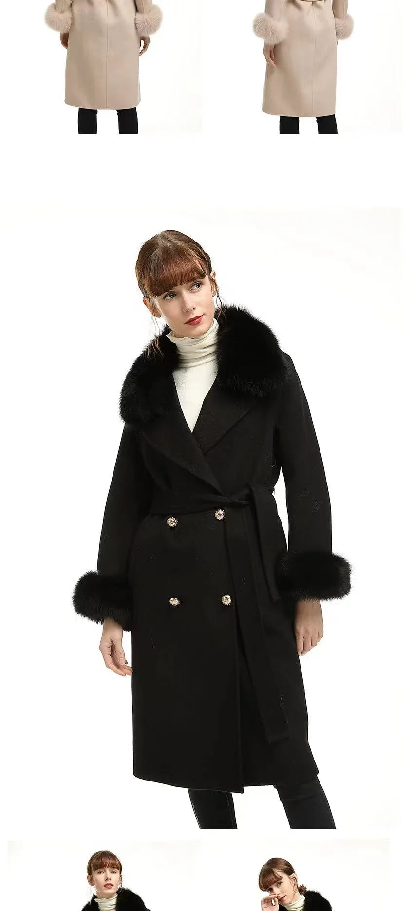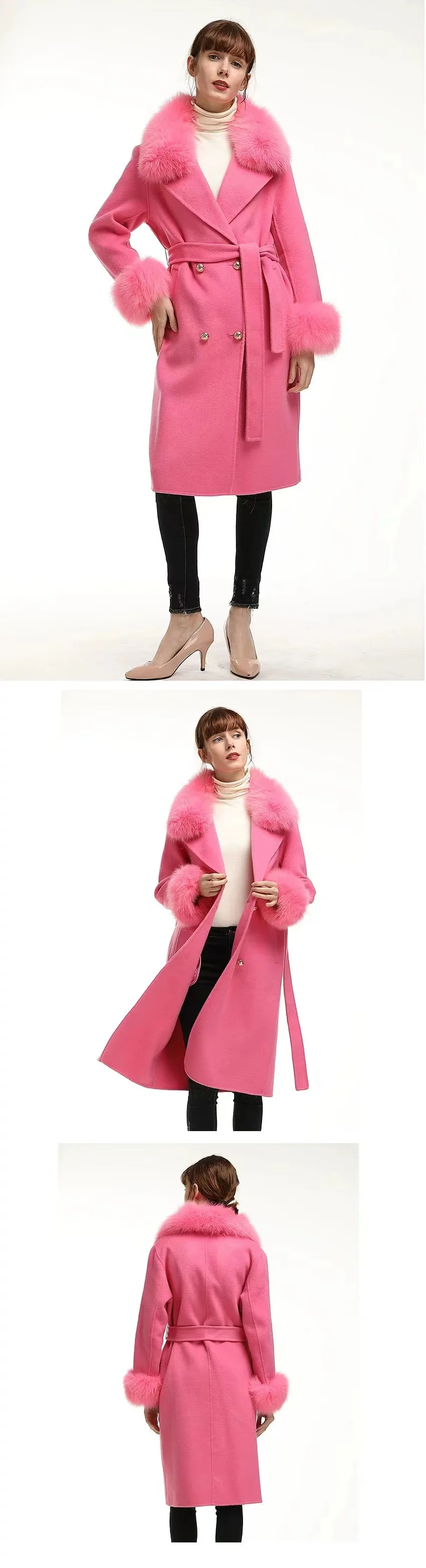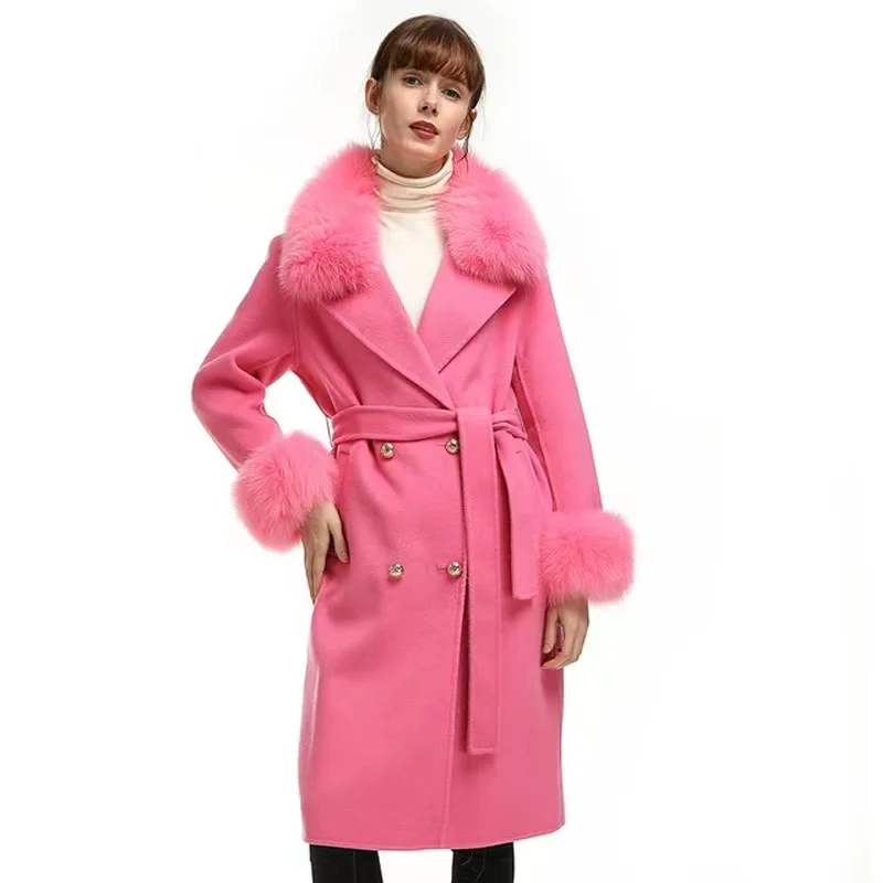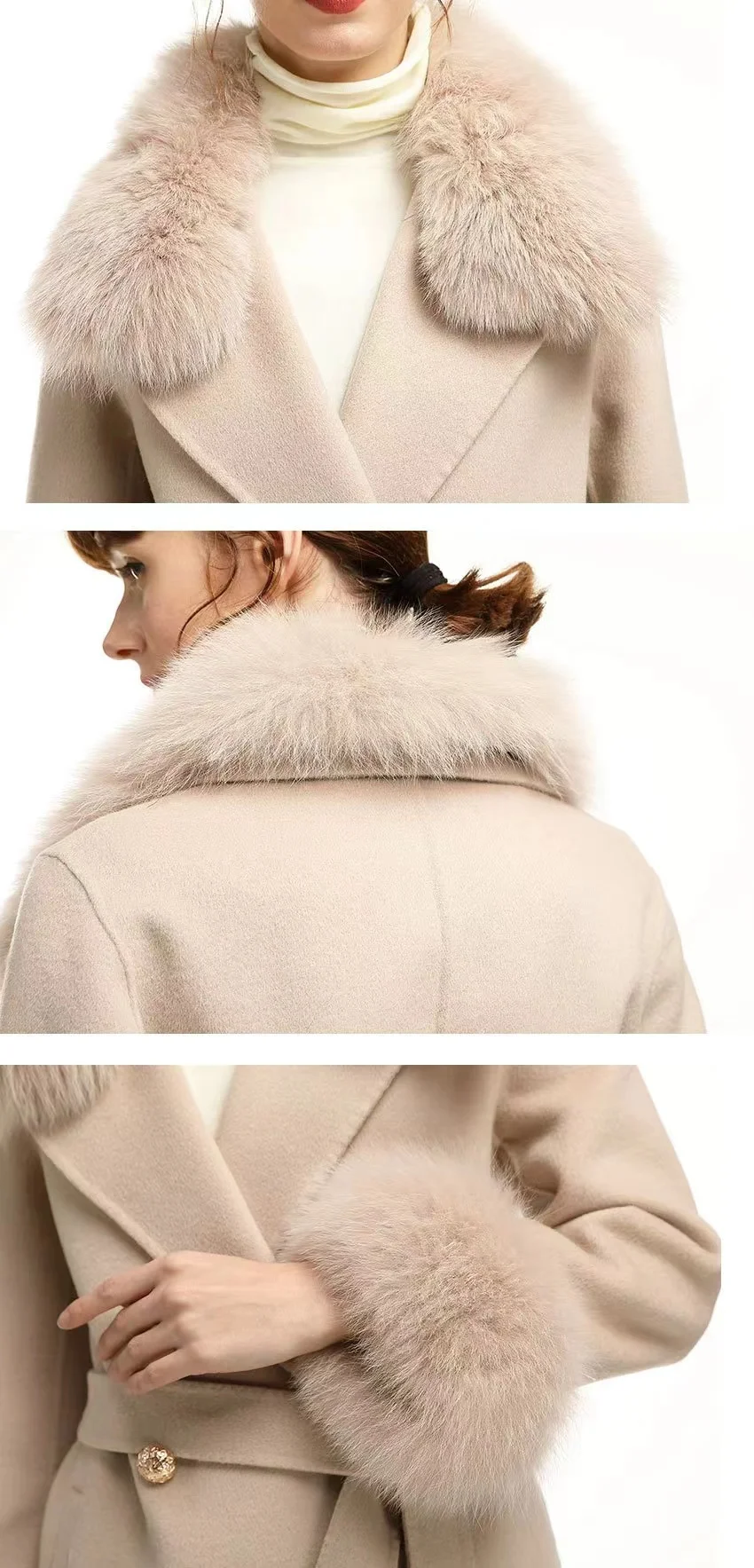 Winter Fashion Woman lamb Cashmere Outwear Real Fox Fur Collar Wool Fur Coat