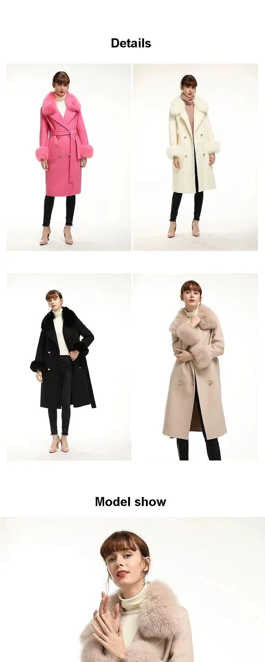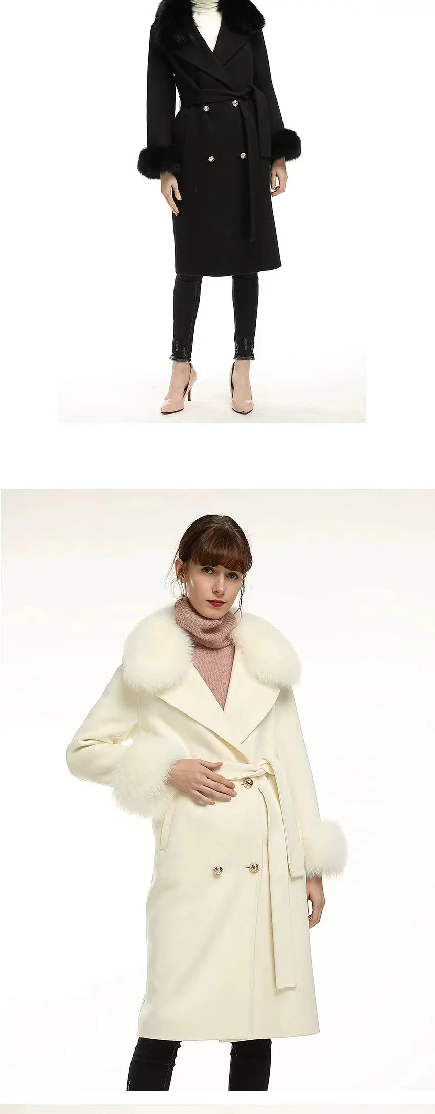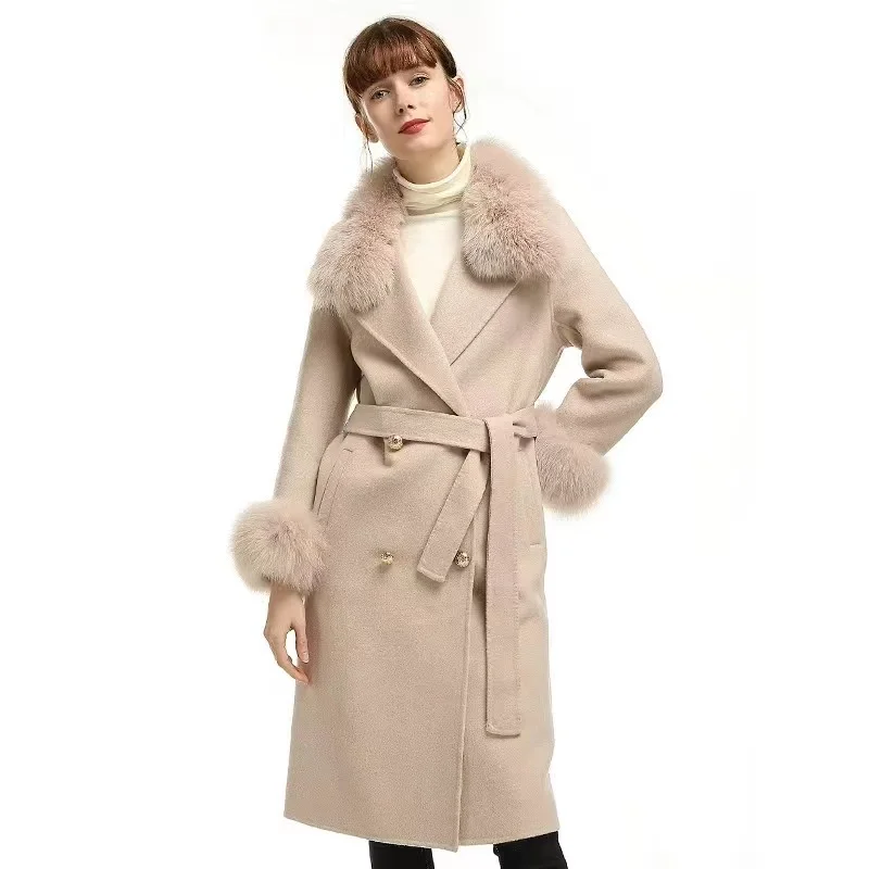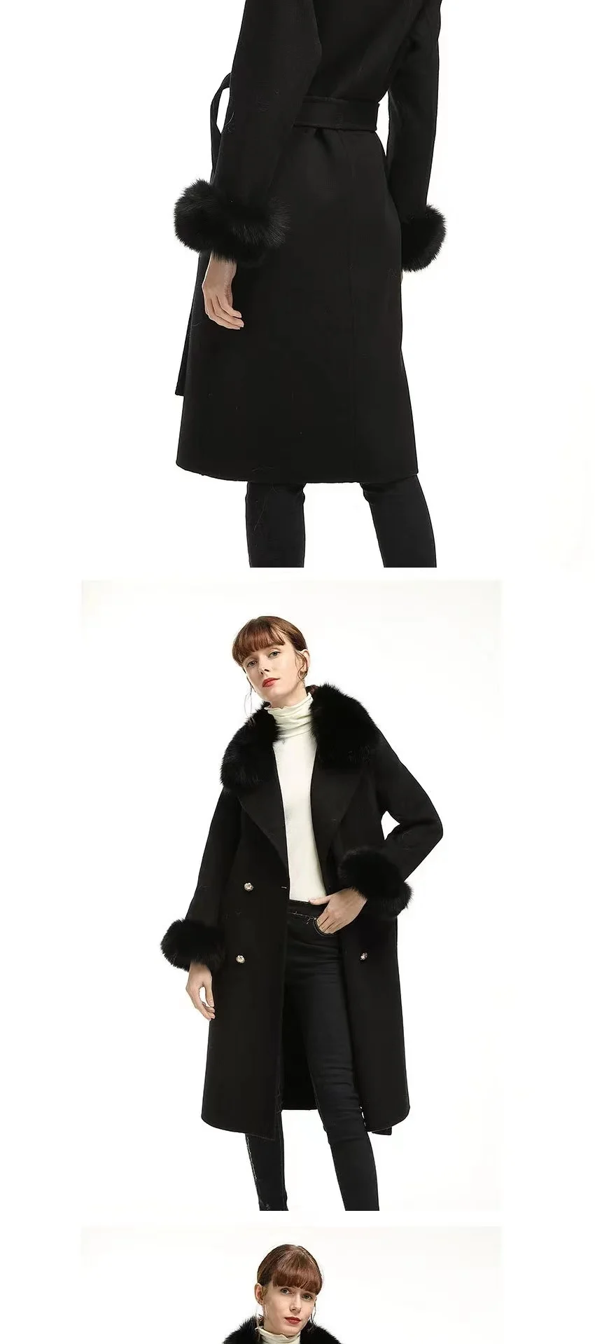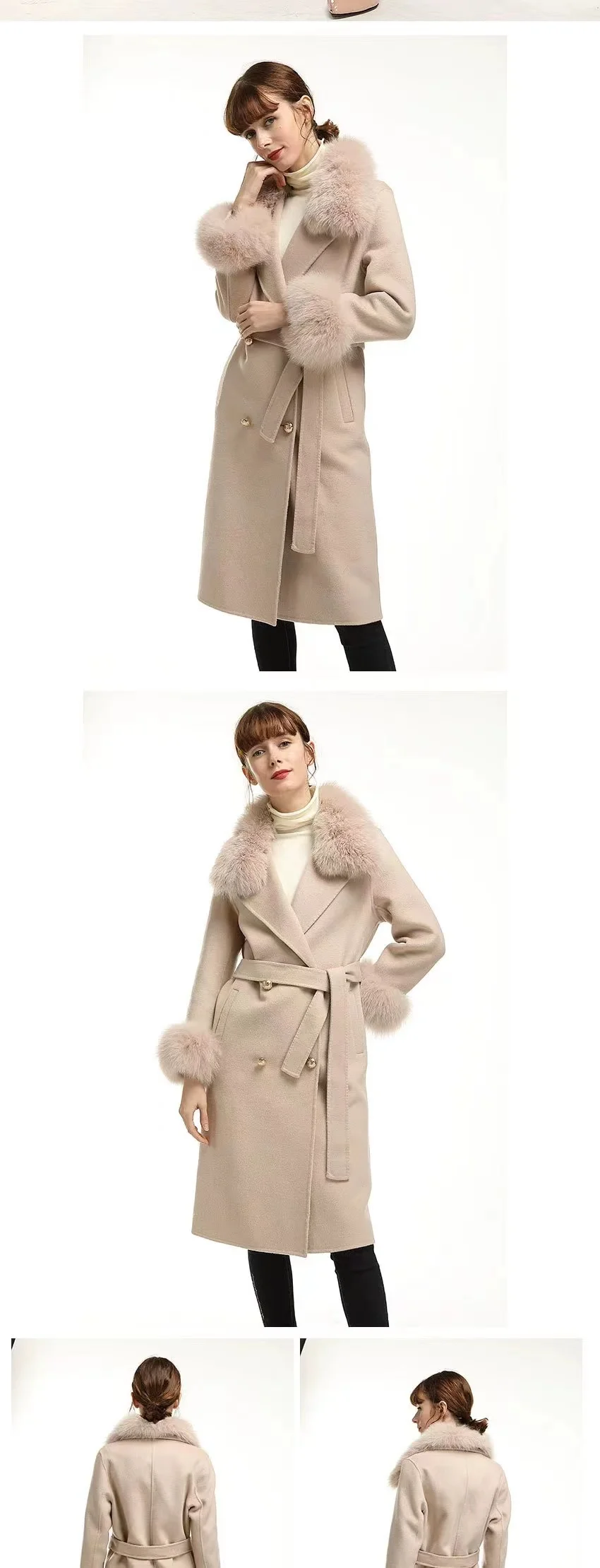 Winter Fashion Woman lamb Cashmere Outwear Real Fox Fur Collar Wool Fur Coat