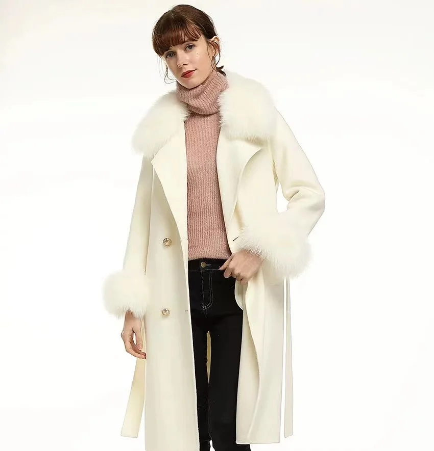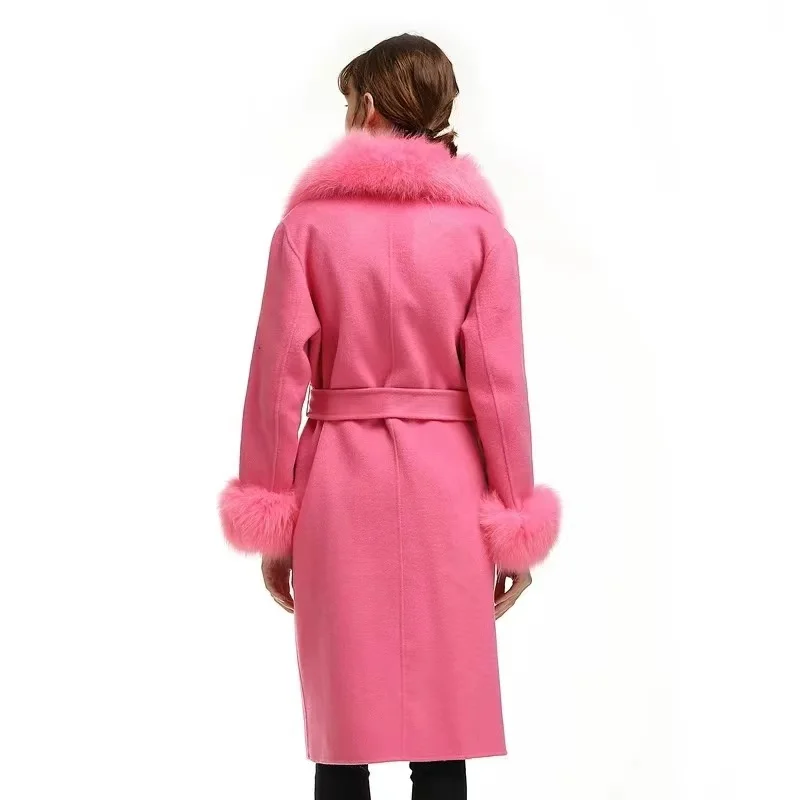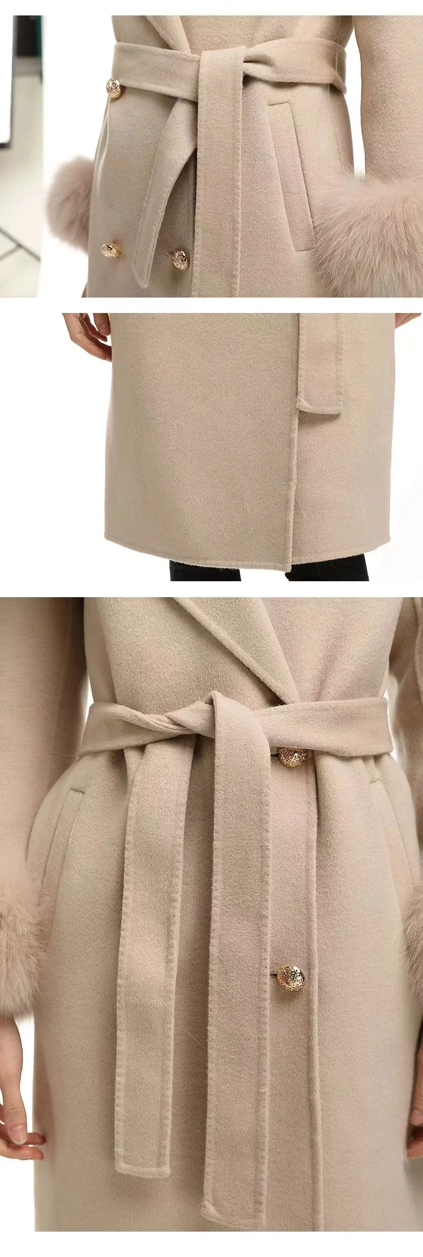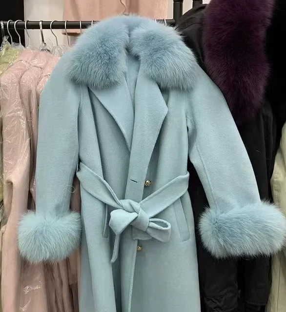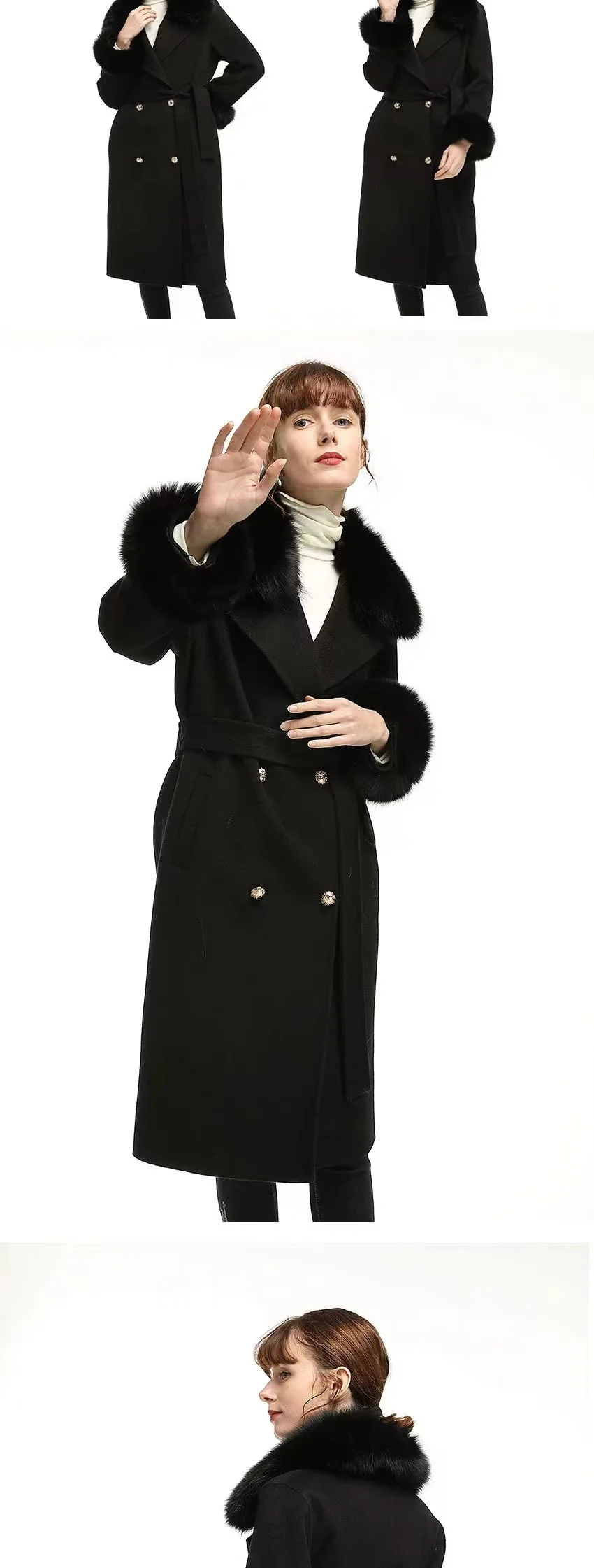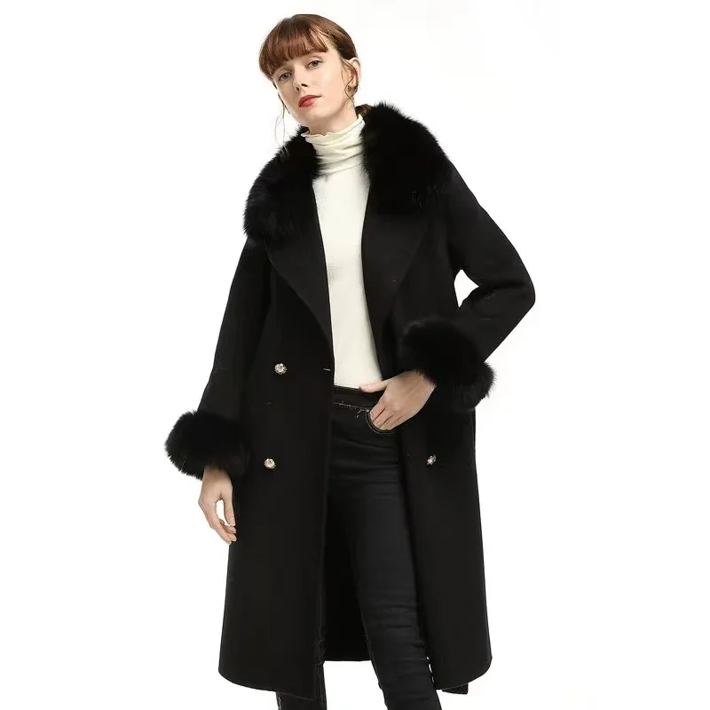 Winter Fashion Woman lamb Cashmere Outwear Real Fox Fur Collar Wool Fur Coat
