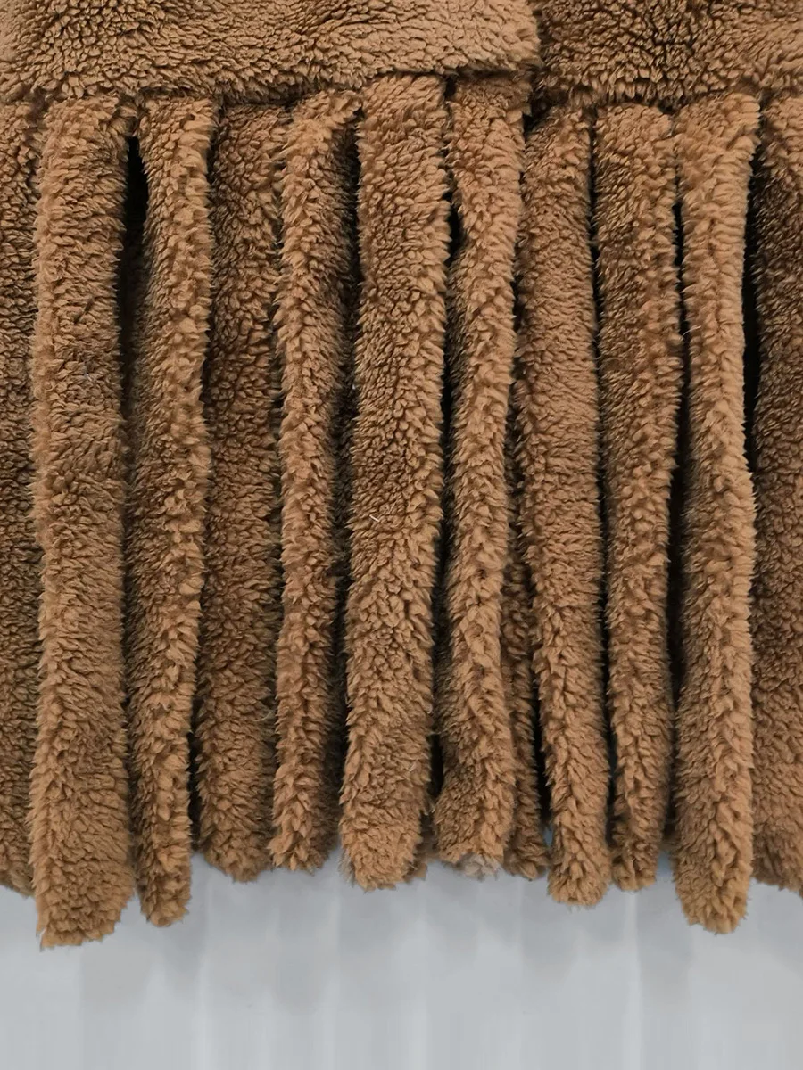 Winter luxury designer warm teddy faux fur long coat for ladies elegant jacket tassel fringe women coat