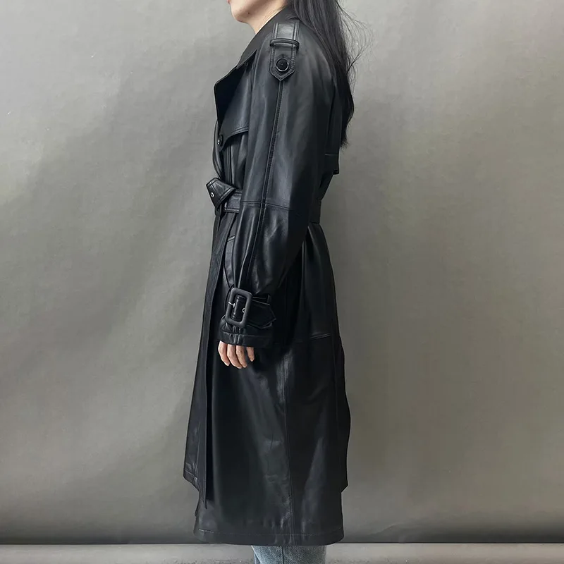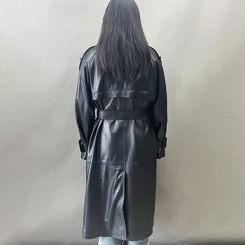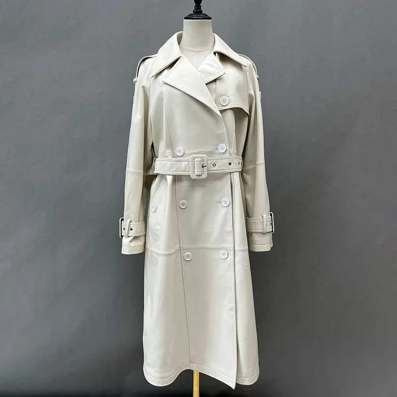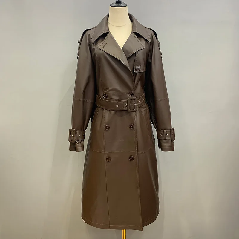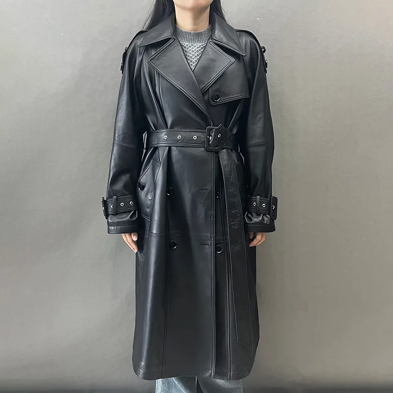 Winter Luxury Long Women Genuine Sheep Leather Jacket Women Trench Coat