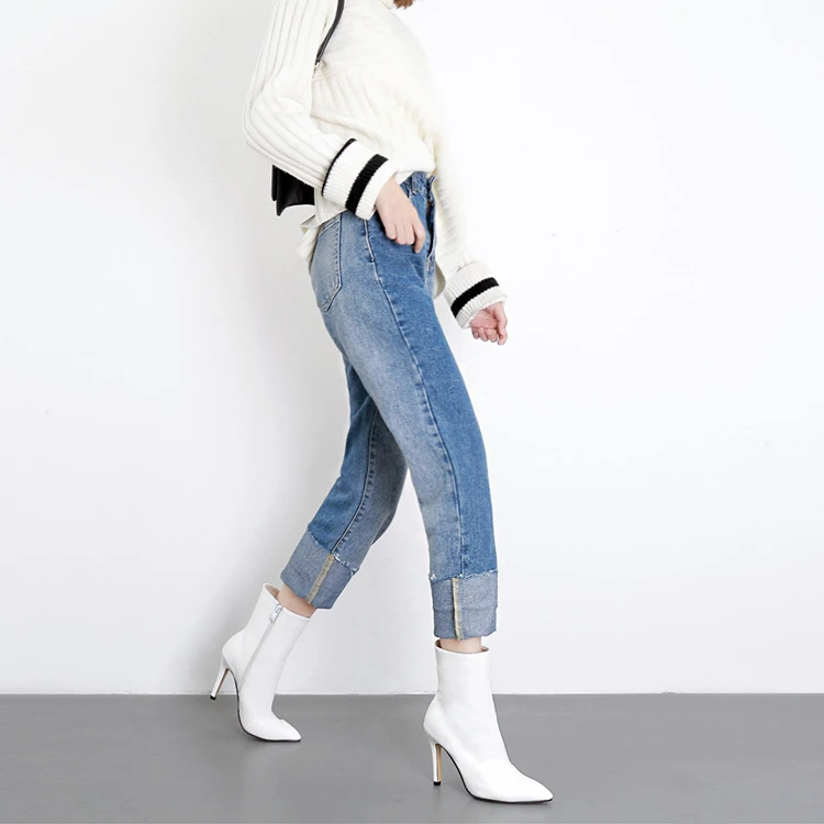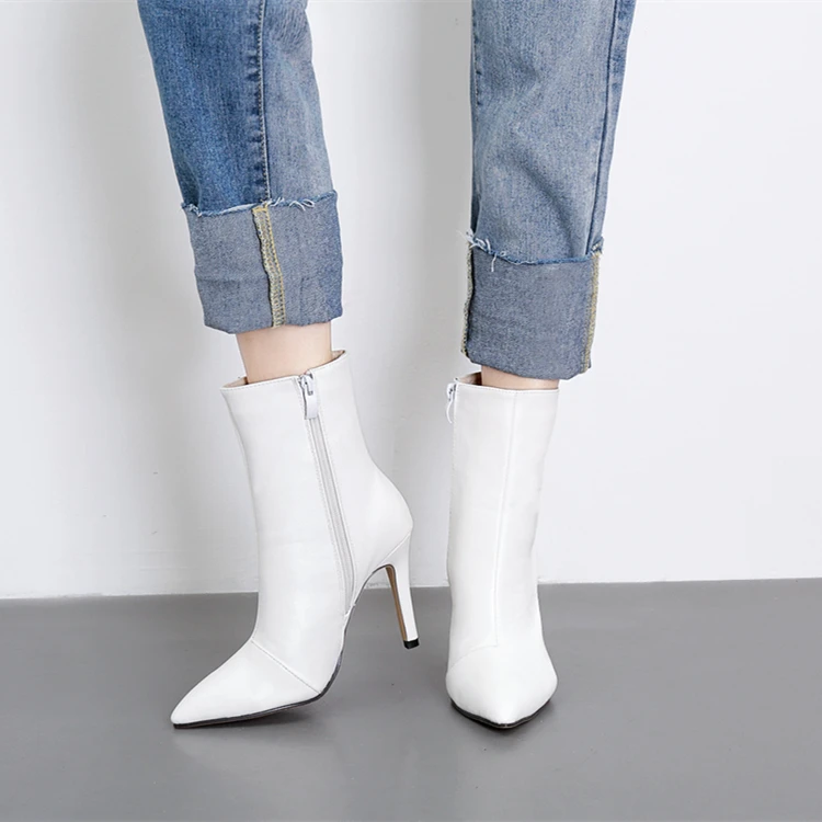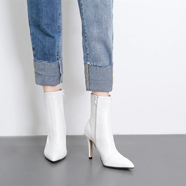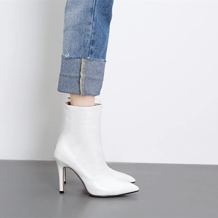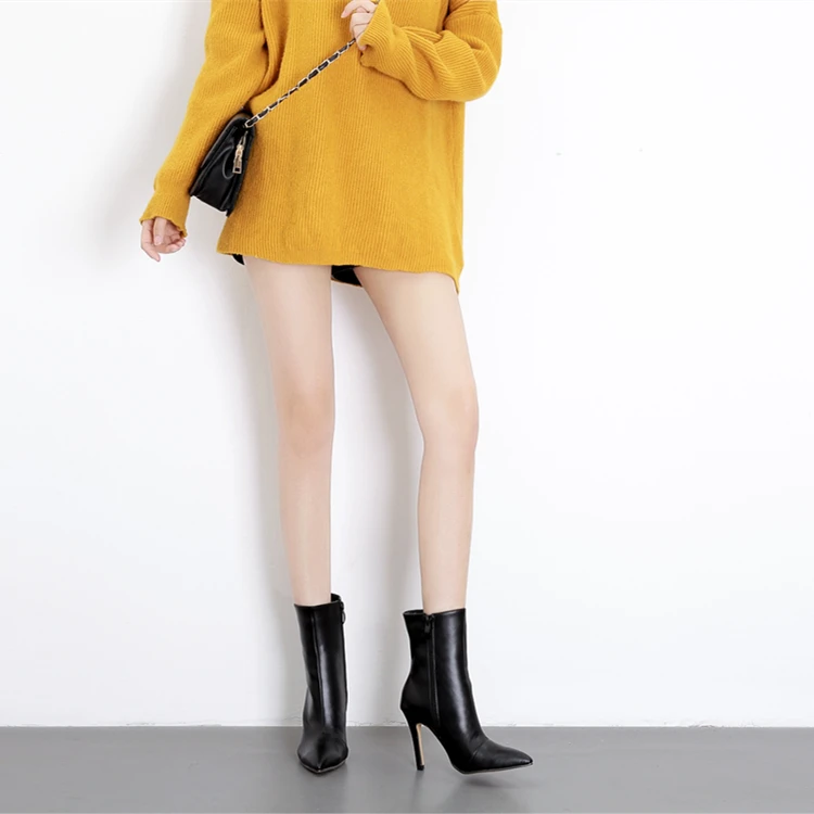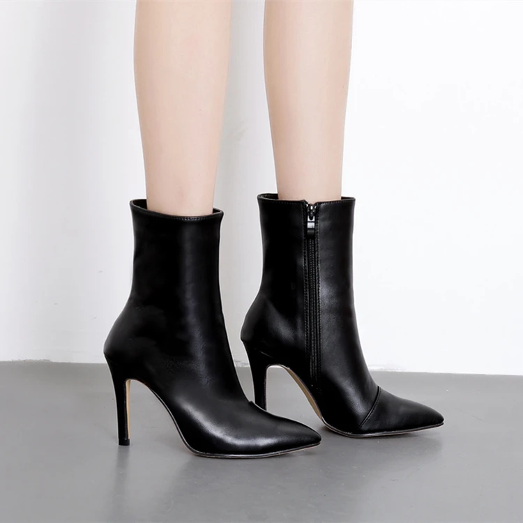 Winter New Black Slim high heeled fashion short boots with side zipper and pointed heel