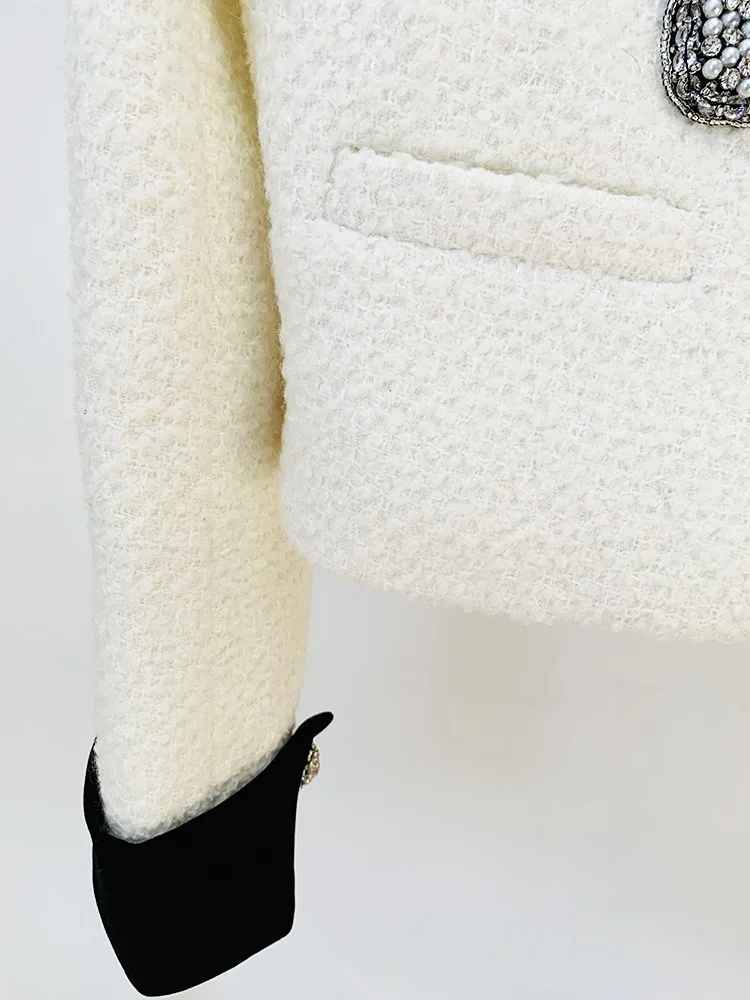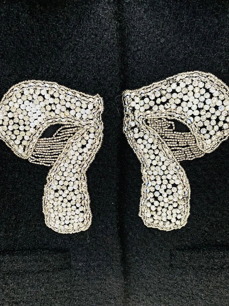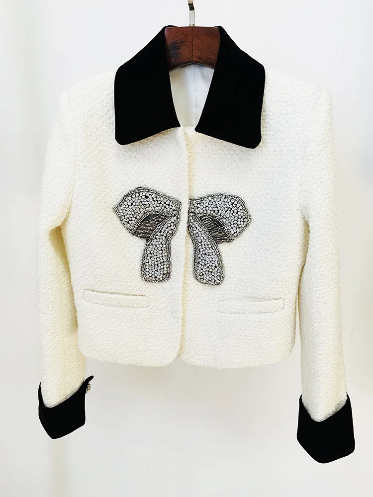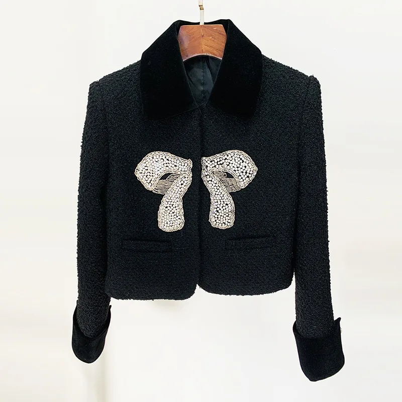 Winter Newest Lady Vintage Trendy Designed Outwear Fine Workmanship Beading Bow Short Jacket Women Coats
