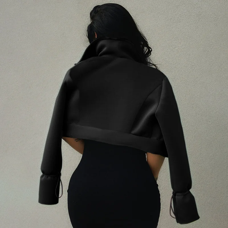 Winter Solid Color ladies Coats Button Long Sleeve Drawstring Casual crop jacket for Women Fashion short style fall cropped