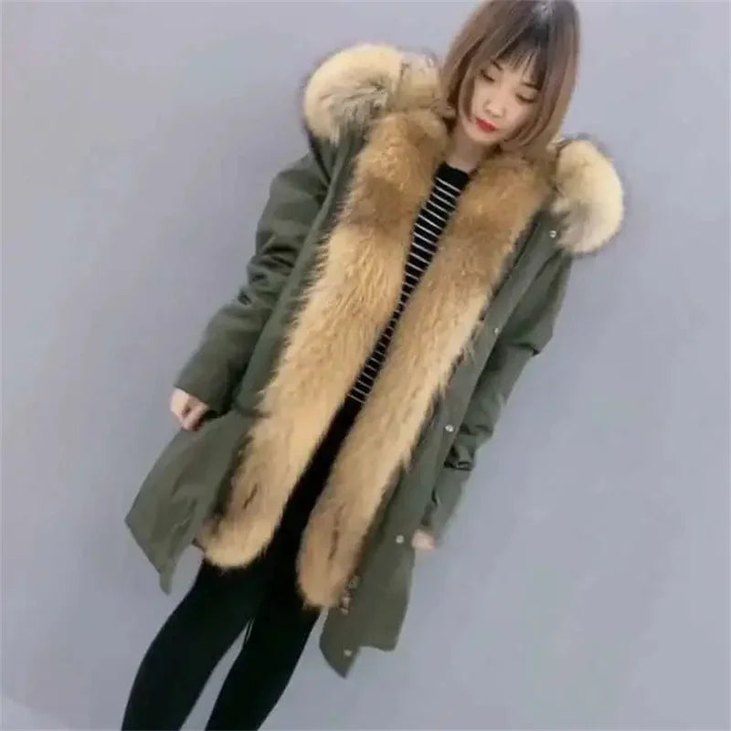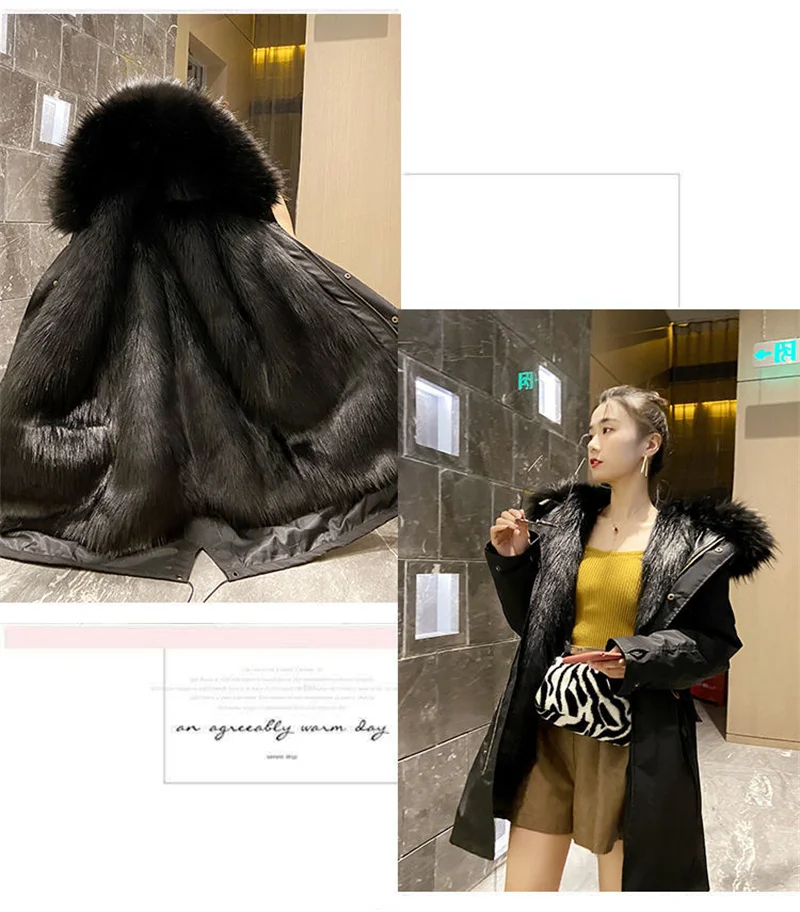 Winter Thick Warm Parkas Women Mink Detachable Inner Fur One Coat Long FauxFur Mink Cotton Jackets Female Hooded Chaquetas Mujer