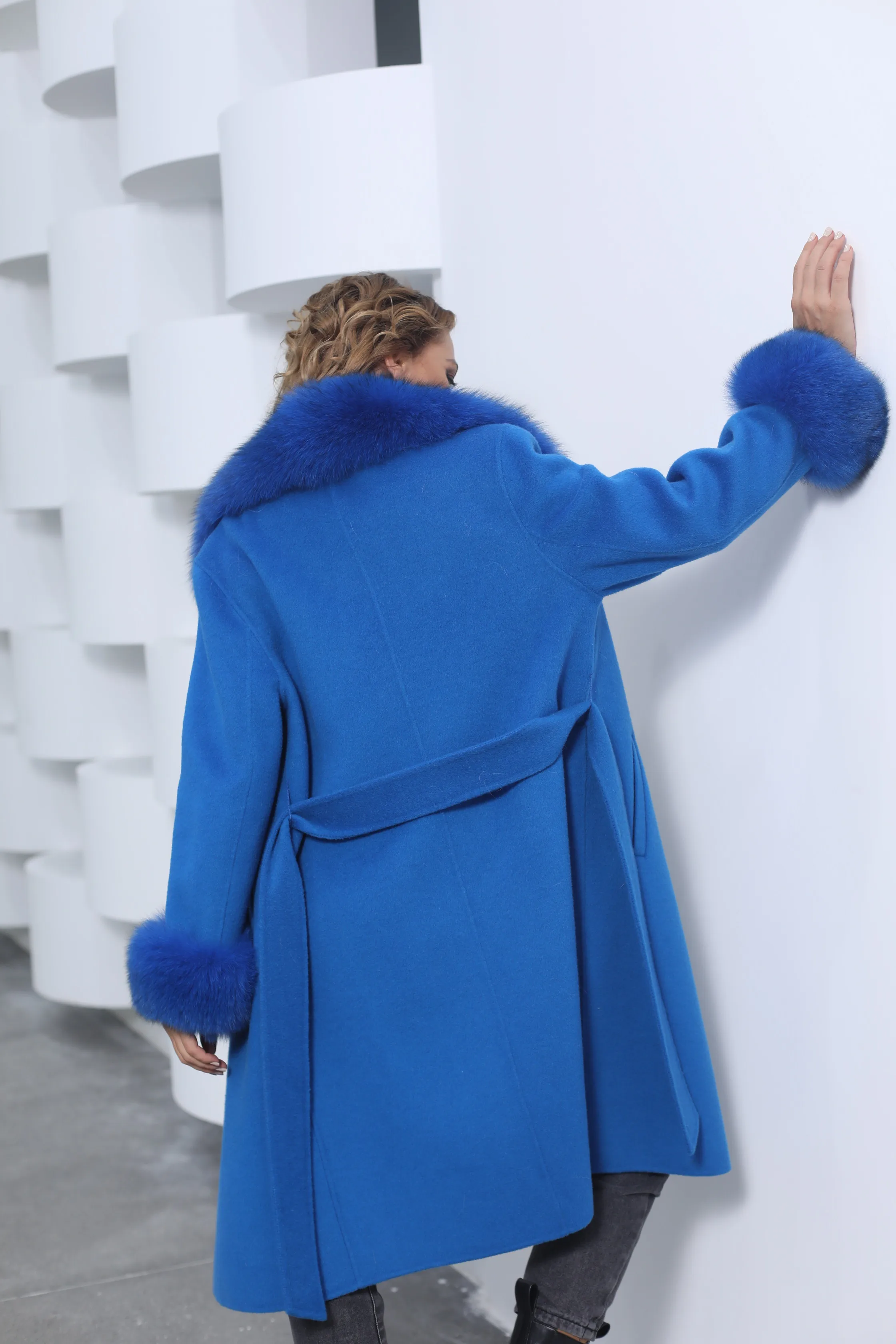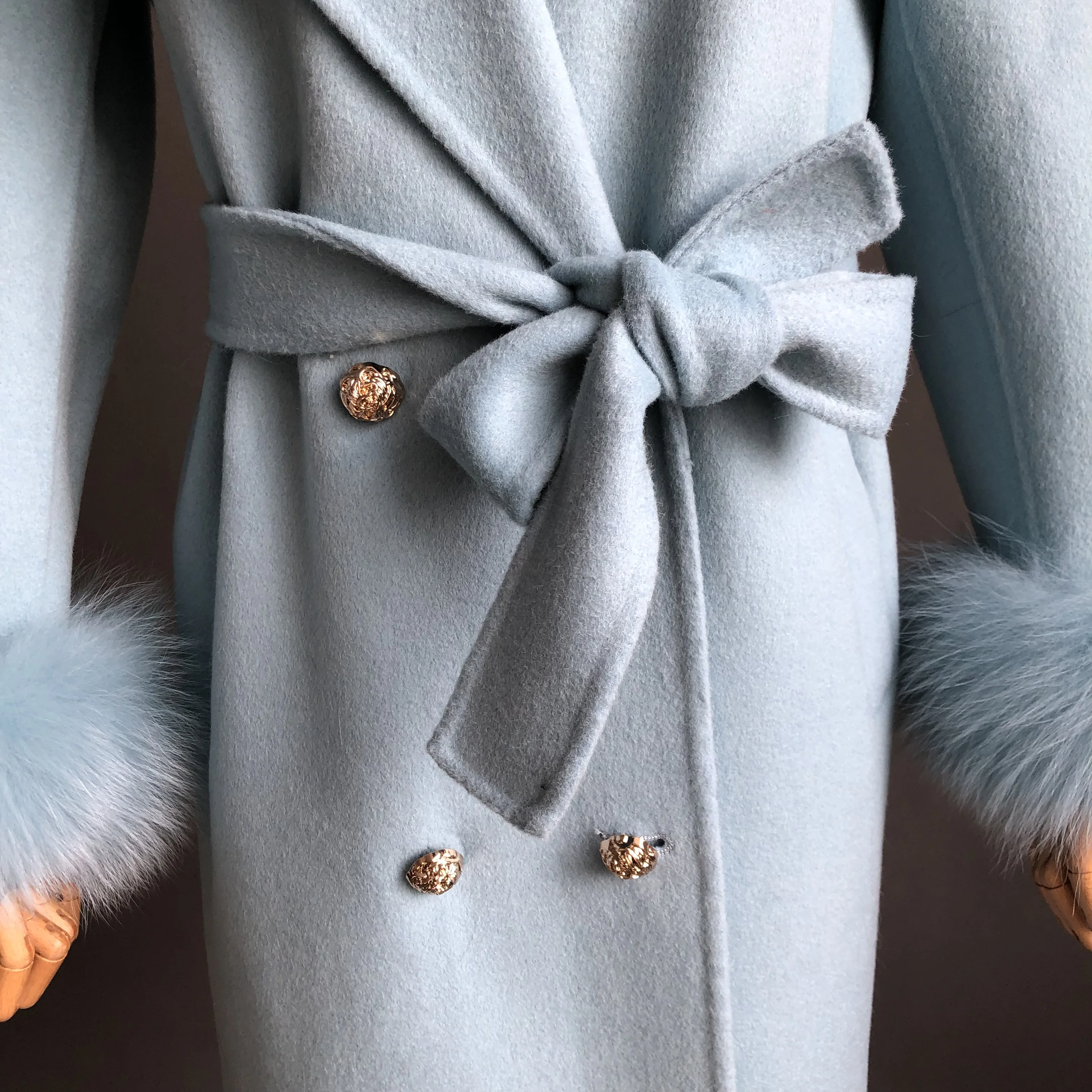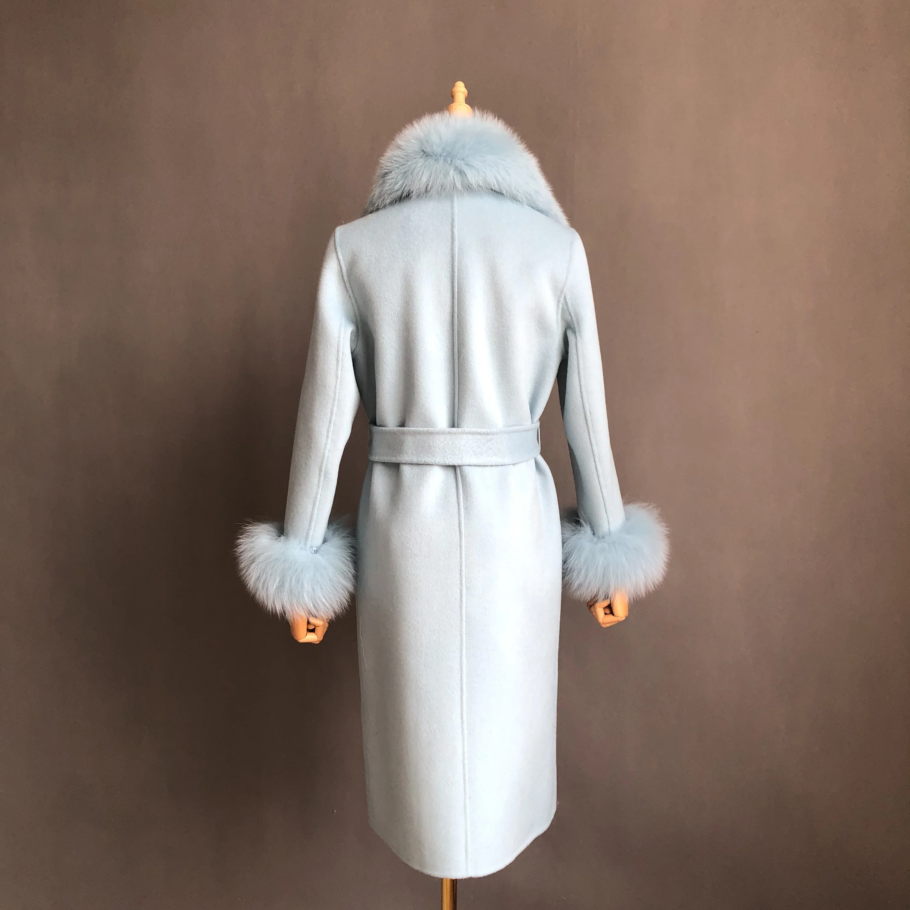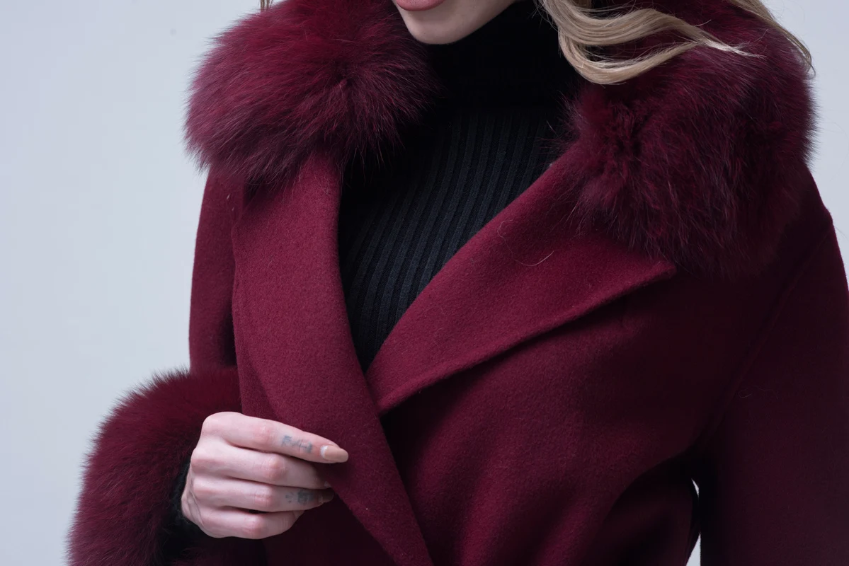 Ladies Cashmere Coat with Fox Fur Collar