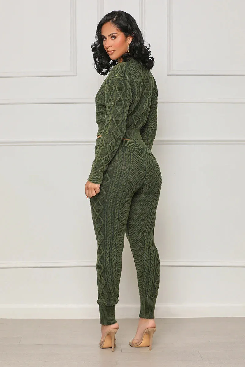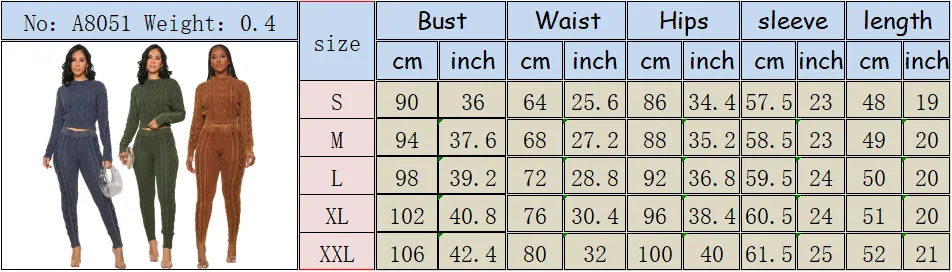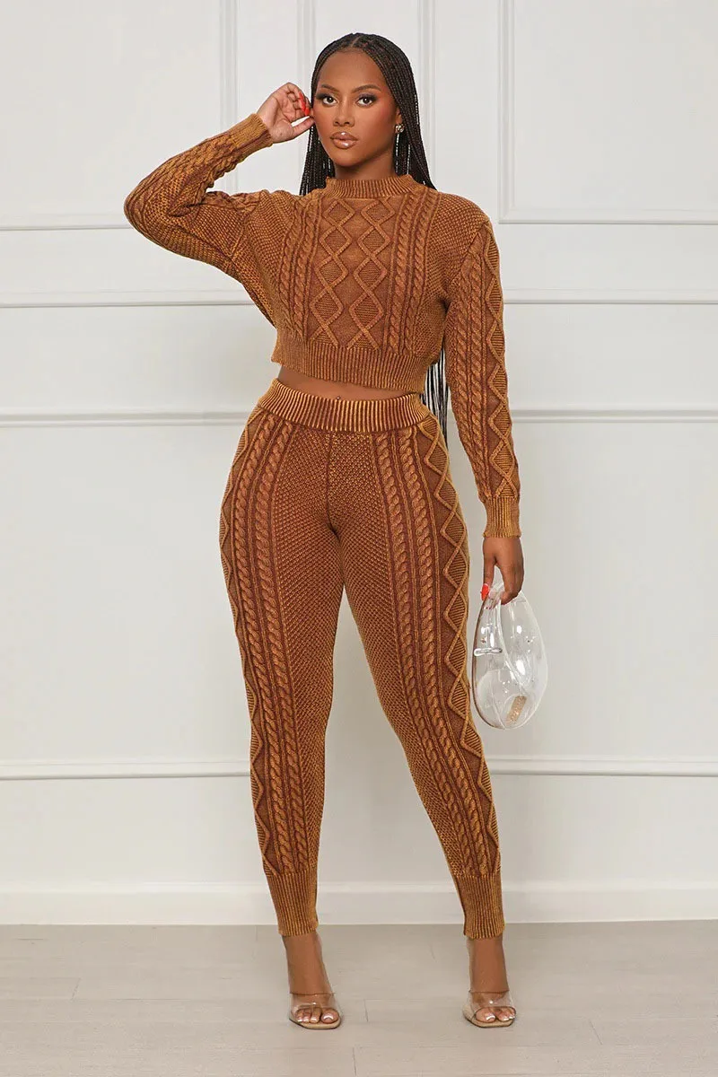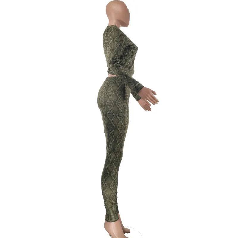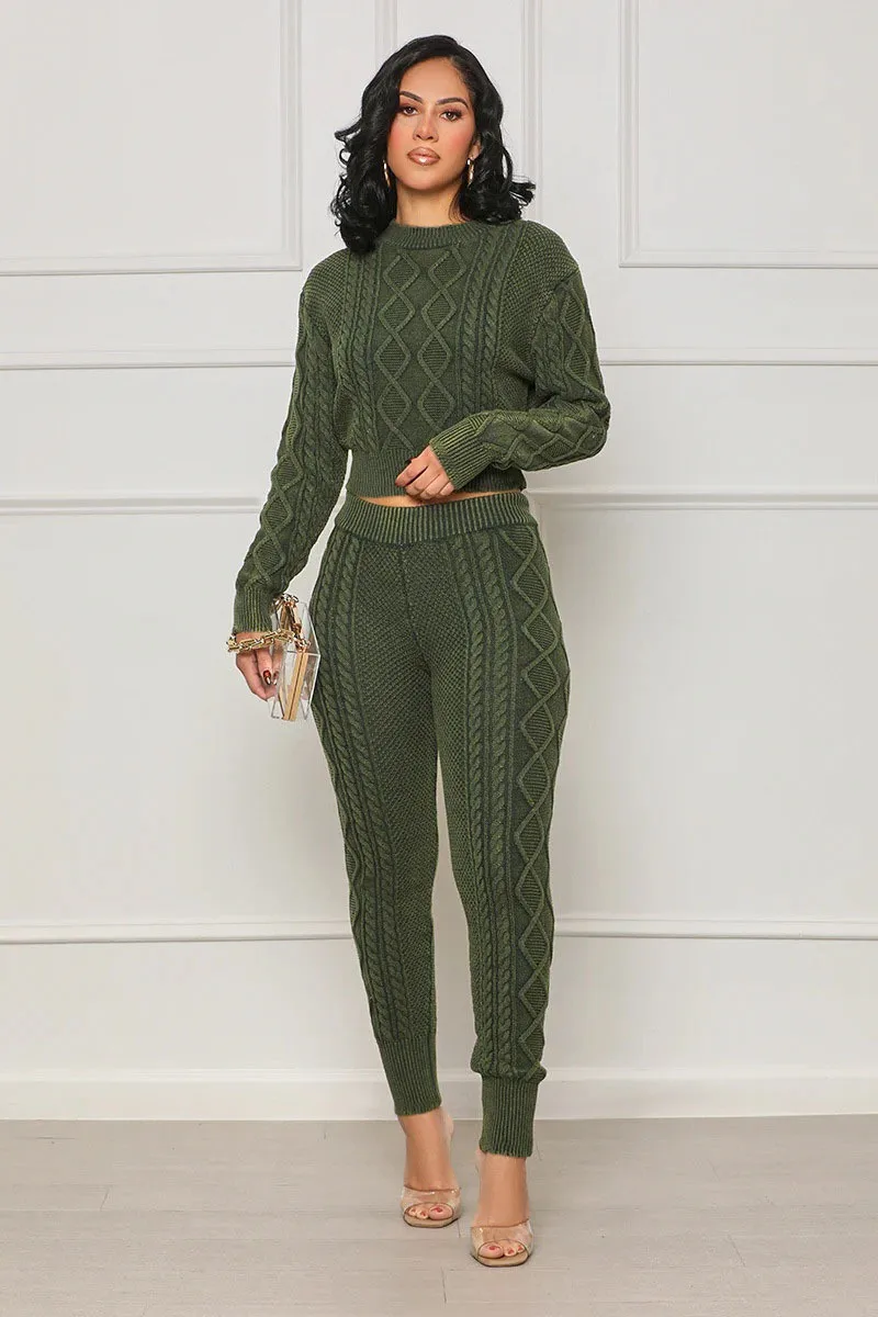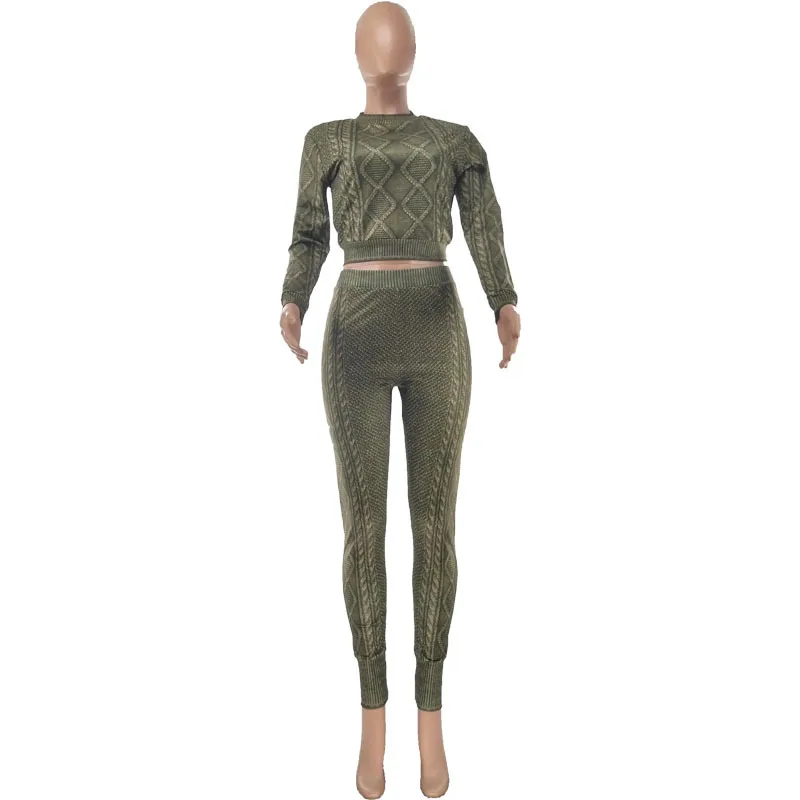 Winter Women Clothes Loungewear Round Neck Long Sleeve Fashion Skim Knitted Sweater Two Piece Pants Set