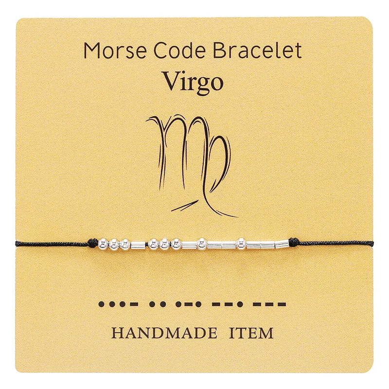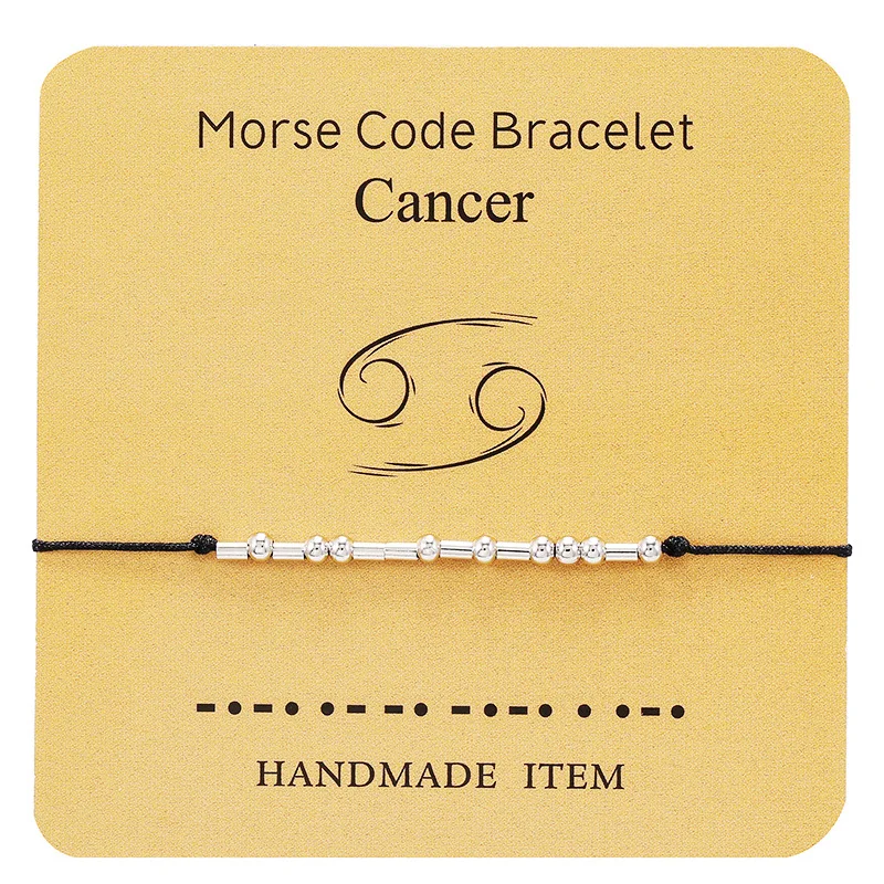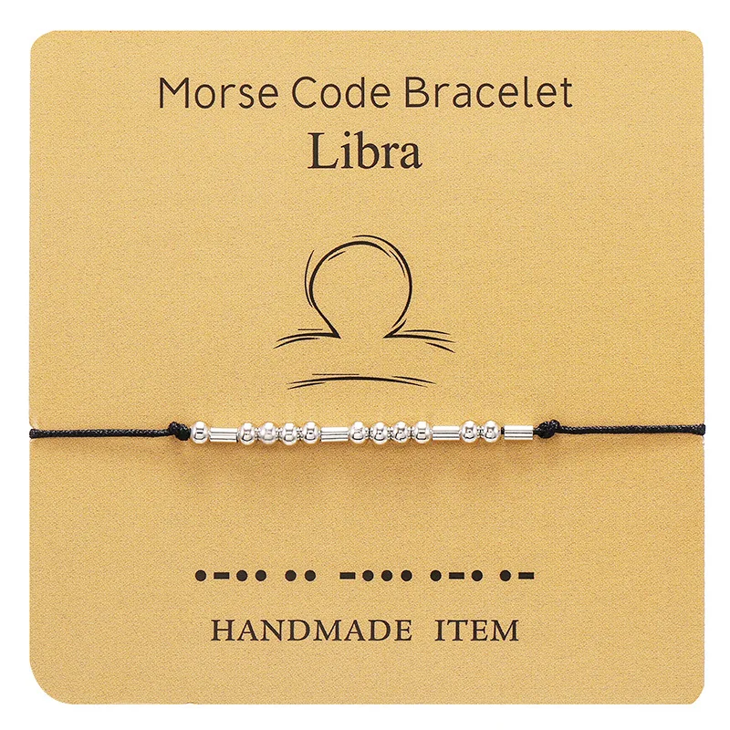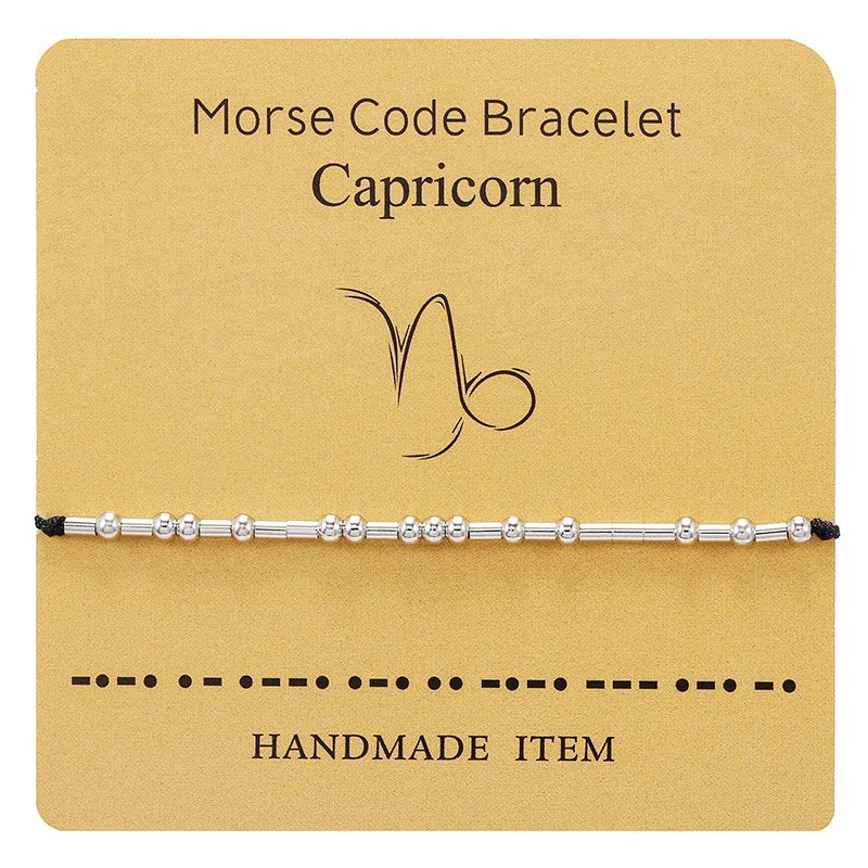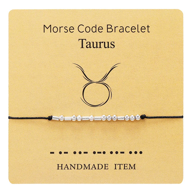 Wish Card Silver Jewelry Beads Taurus Bracelet 12 Zodiac Signs Morse Code Cipher Couple Customized Bracele