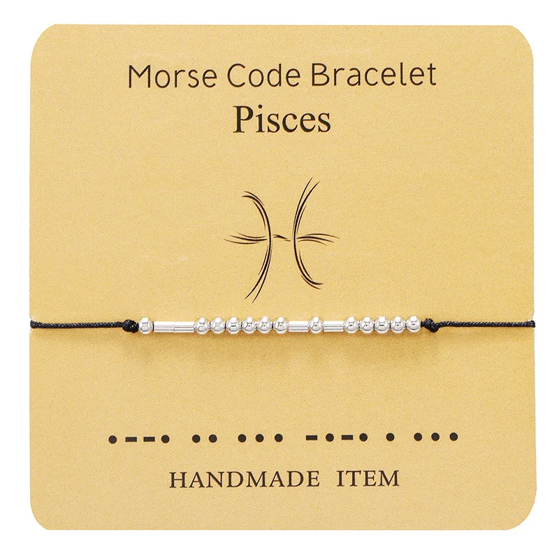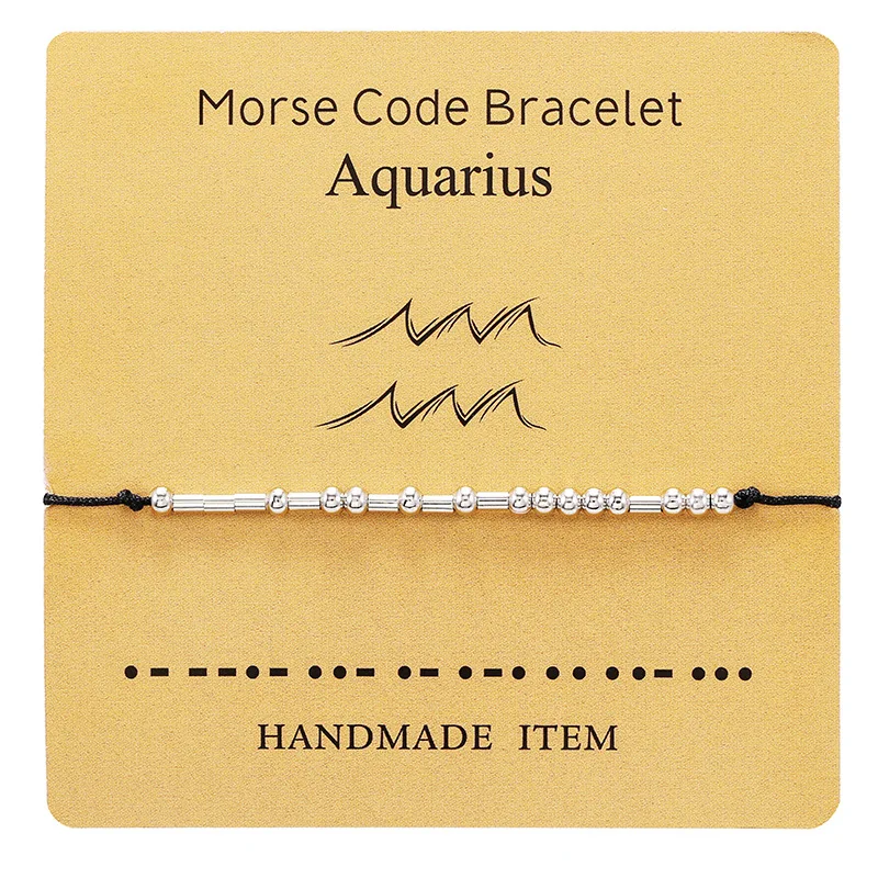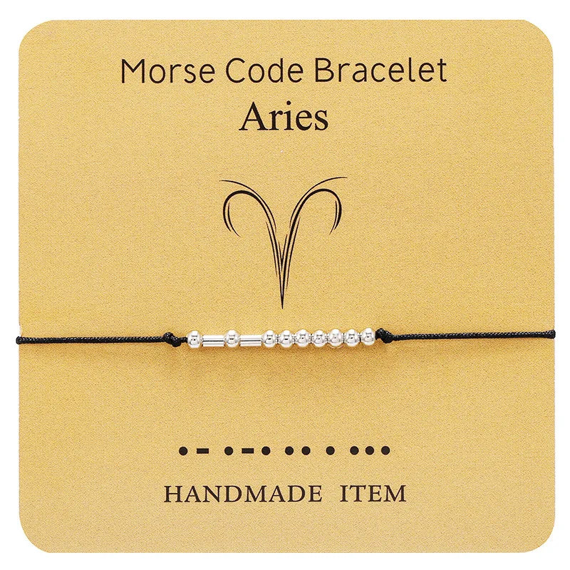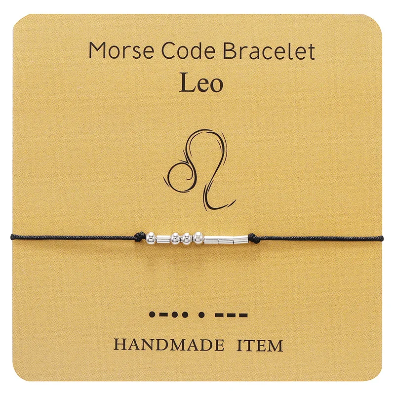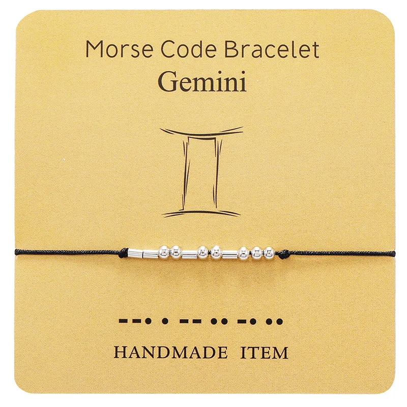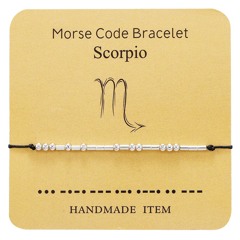 Wish Card Silver Jewelry Beads Taurus Bracelet 12 Zodiac Signs Morse Code Cipher Couple Customized Bracele