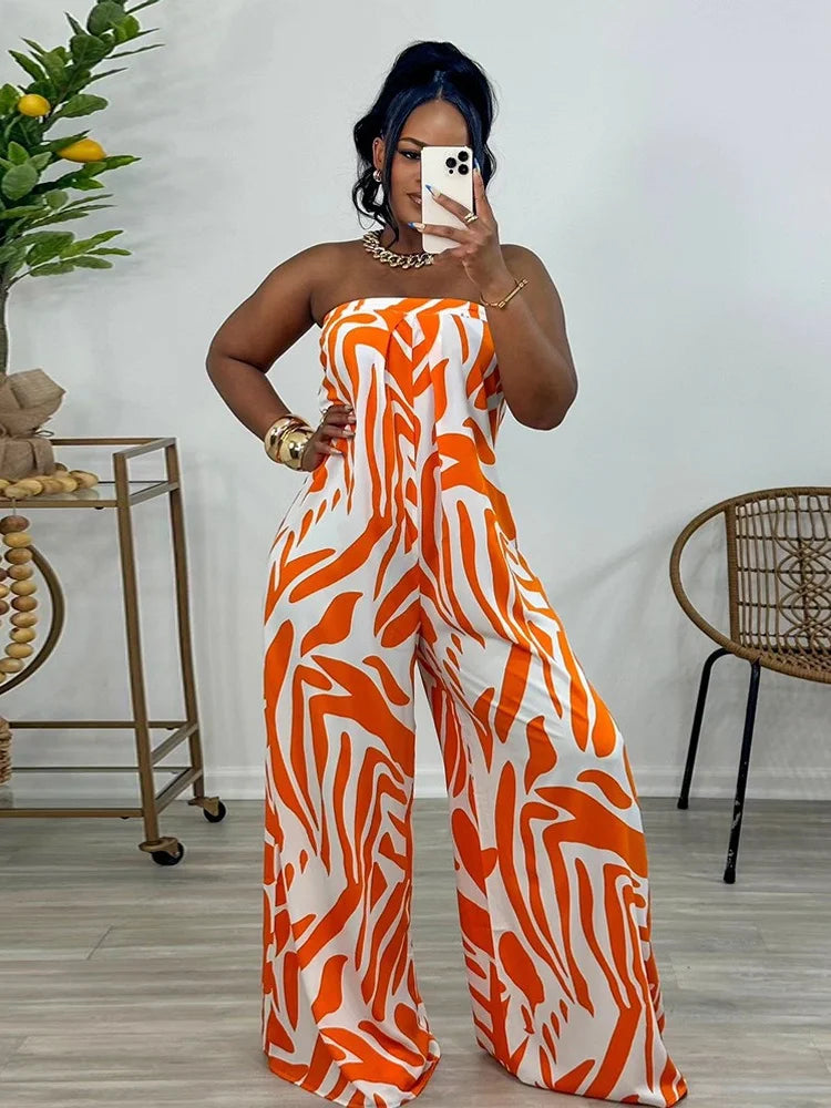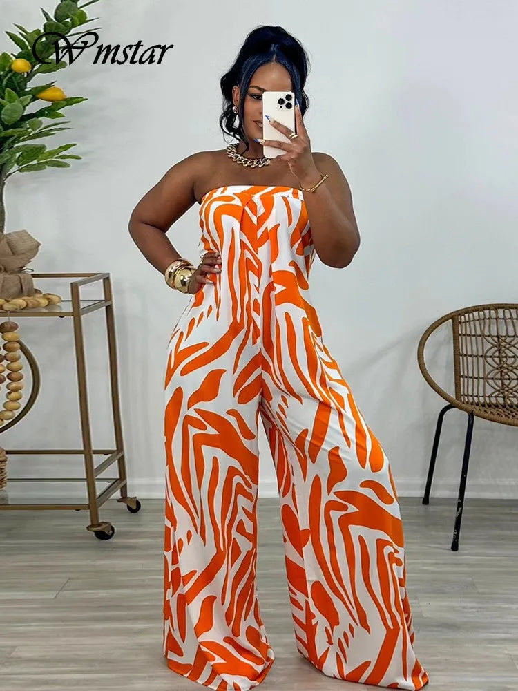 Wmstar Jumpsuit Women Summer Off Shoulder Open Back Print Color Sexy Loose Bandage Rompers Summer Wholesale Dropshipping 2024