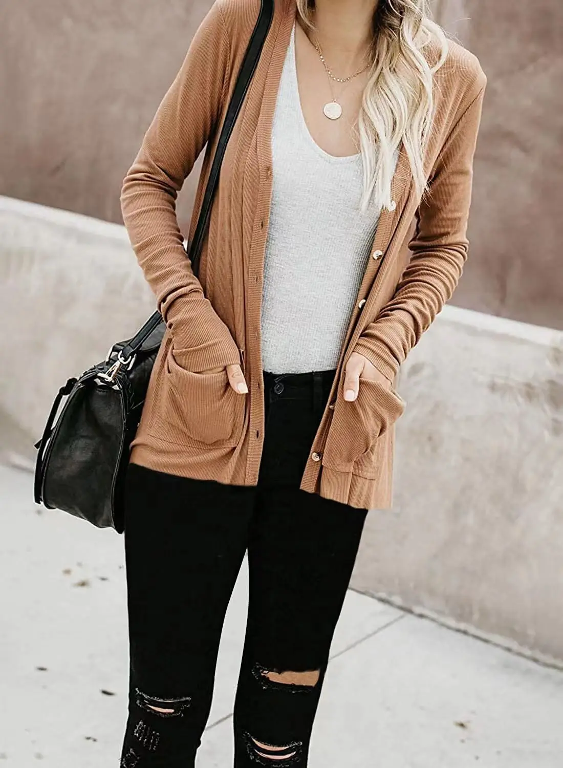 Woman Cardigan Sweater Coat Rib Button Winter Knit Korean Clothes Elegant Women Fashion Cardigan Down Cotton Sweater Women