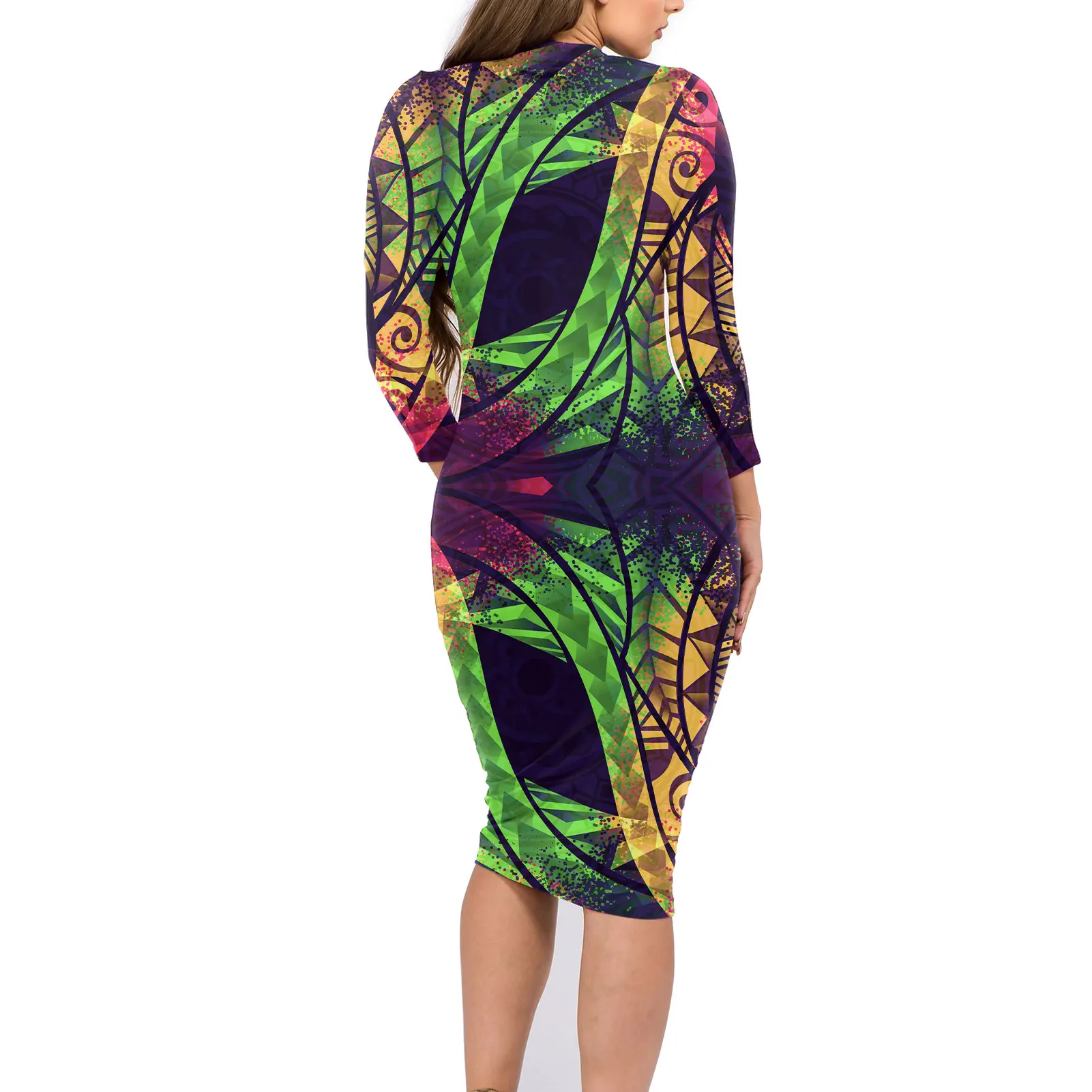 Wholesale Tribal Somoa Style Print Plus Size Evening Dresses Women Fashion Club Women Clothing Dress Polynesian Dress For Women