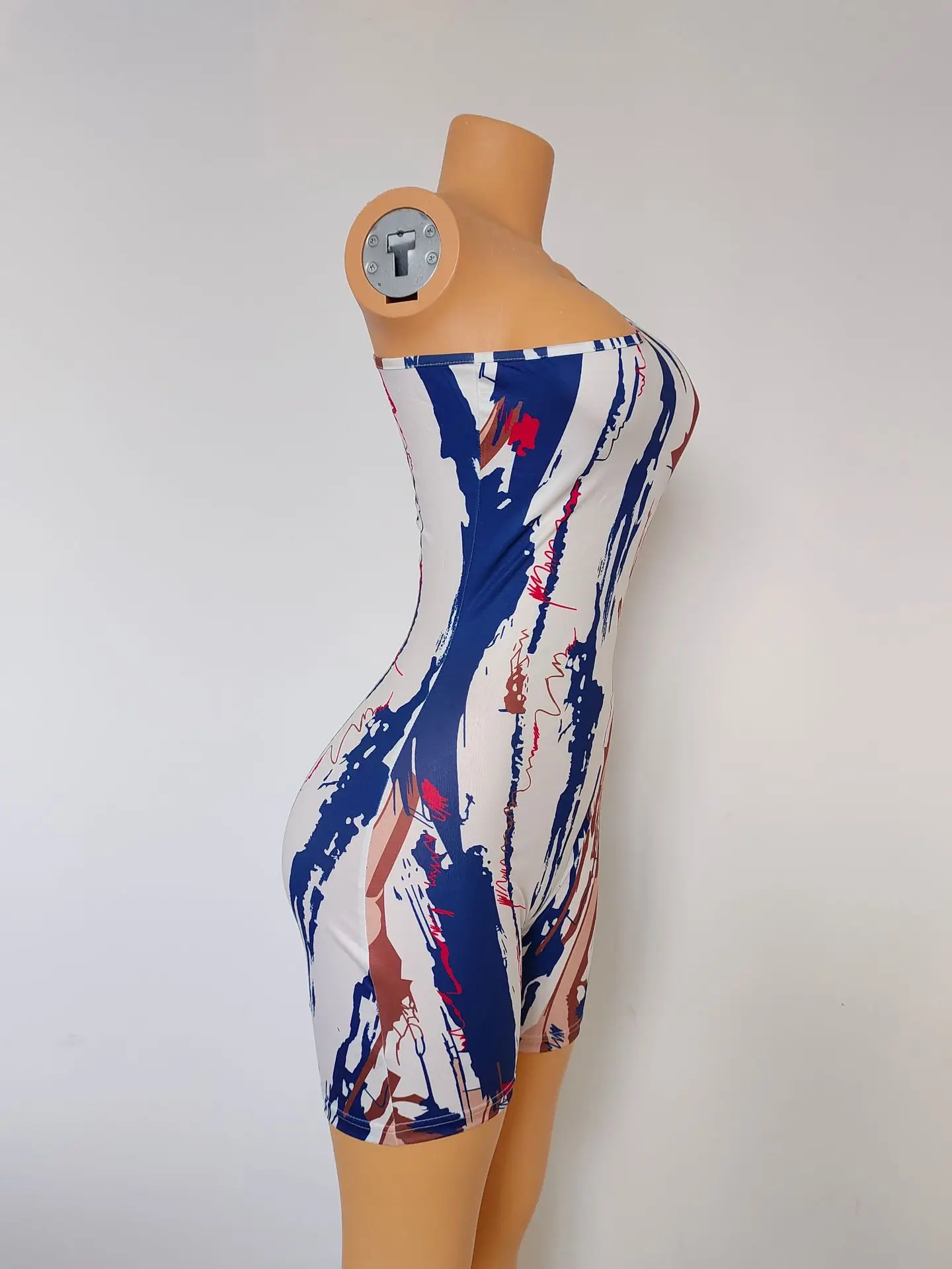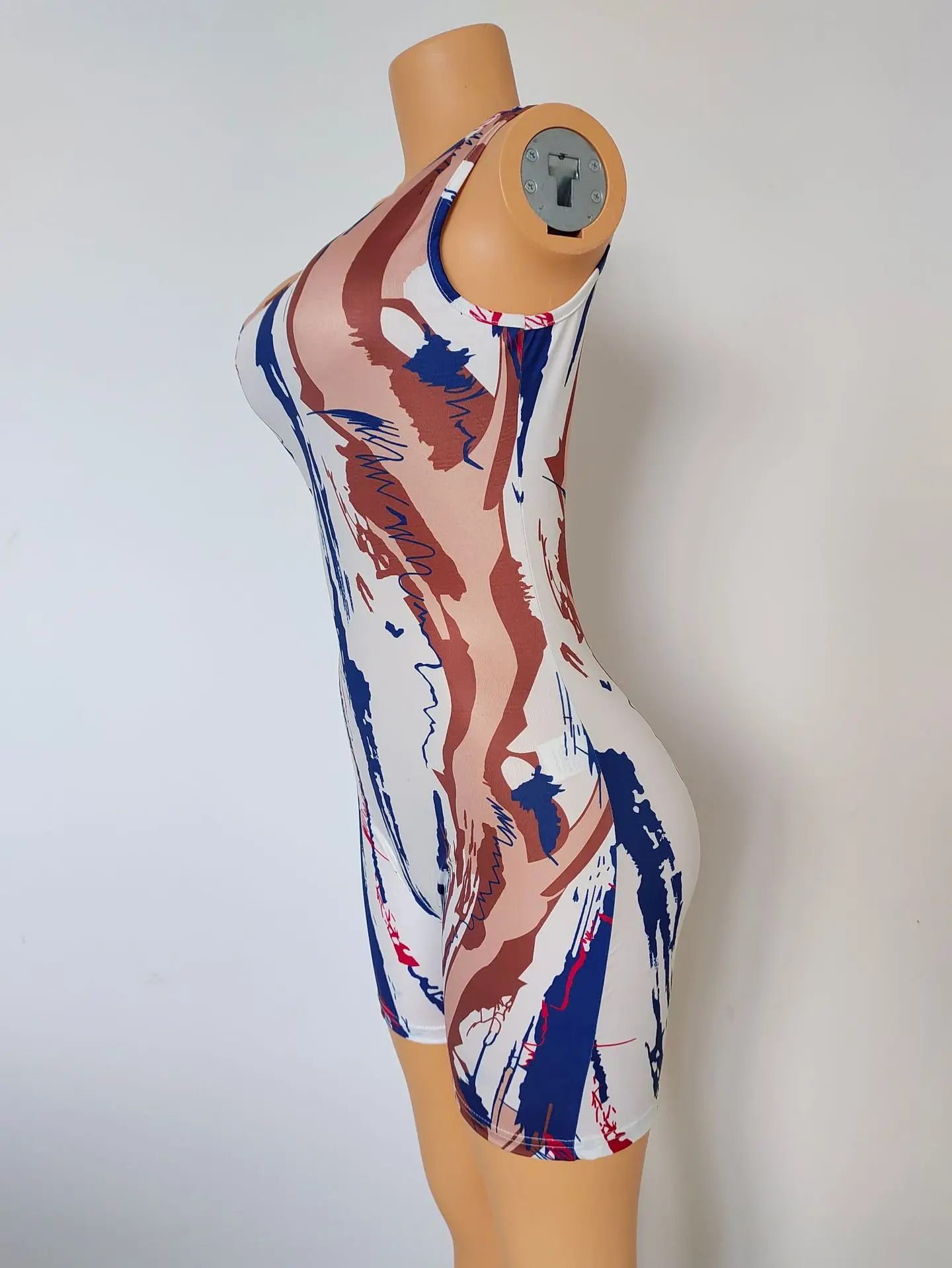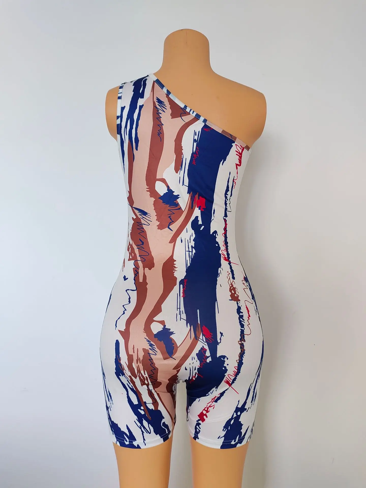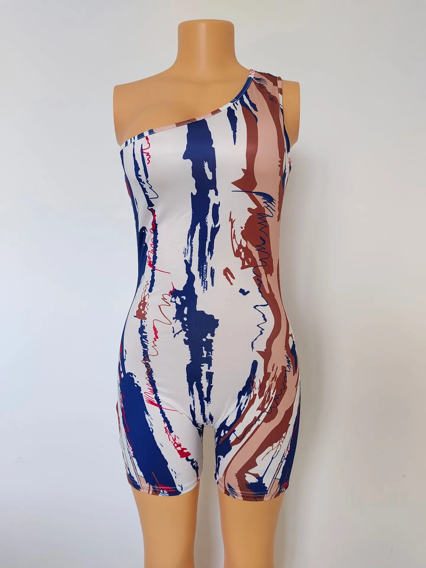 woman clothes One Shoulder Sleeveless Jumpsuits Printing Bodysuits For Women One Piece Short Jumpsuits